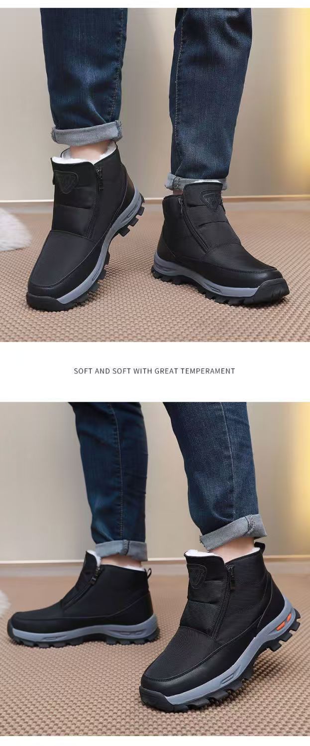 옛 베이징 천 신발, 노인을 위한 겨울 면화, 남성용 벨벳 따뜻한 신발, 미끄럼 방지, 방수, 캐주얼 아빠 신발, 스노우 부츠 일체형