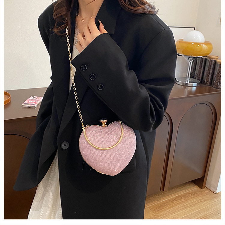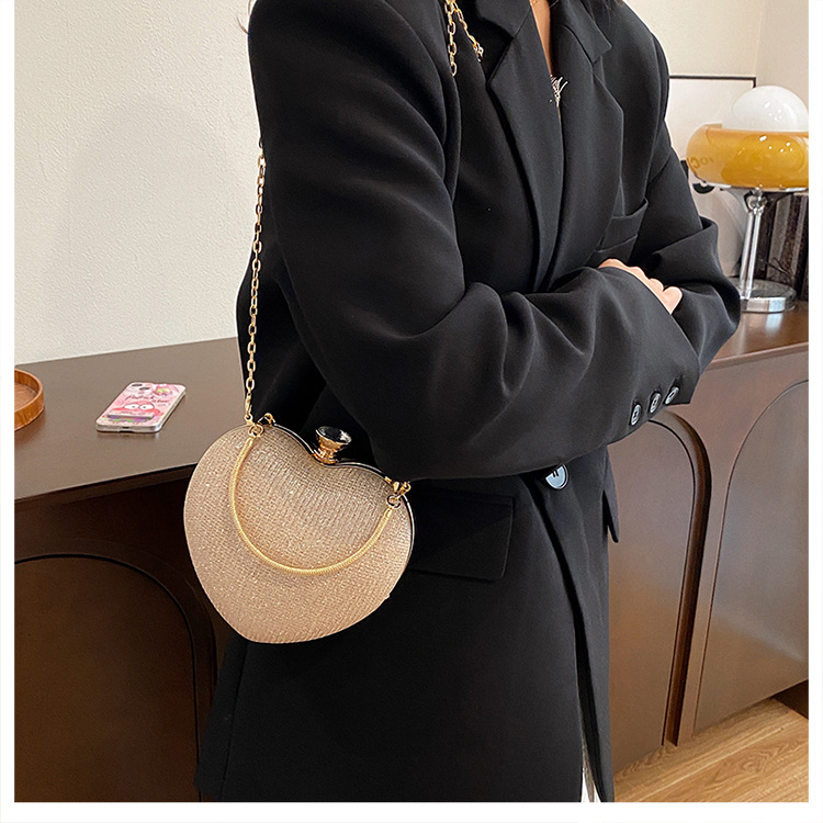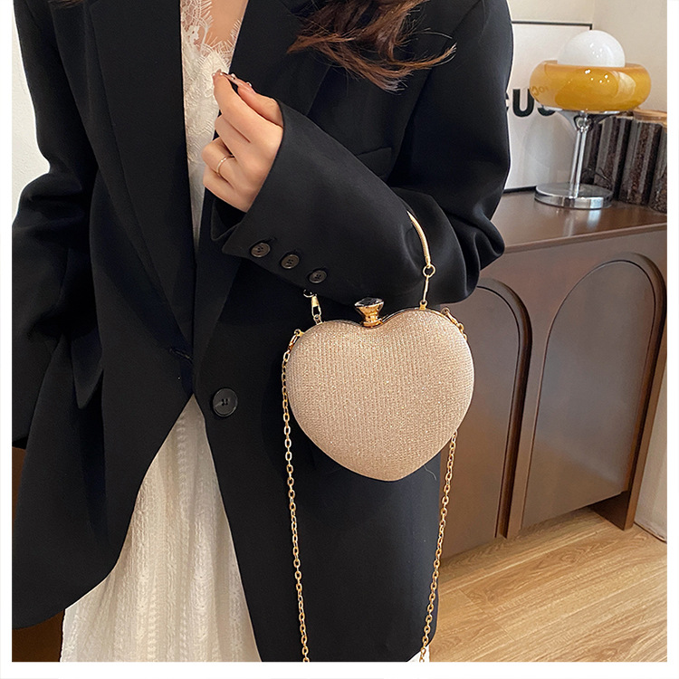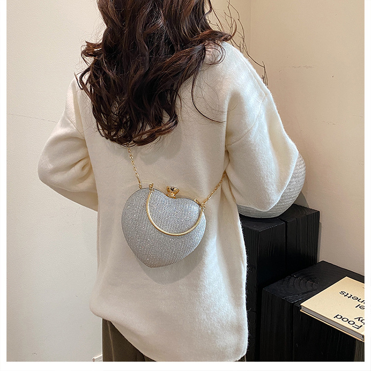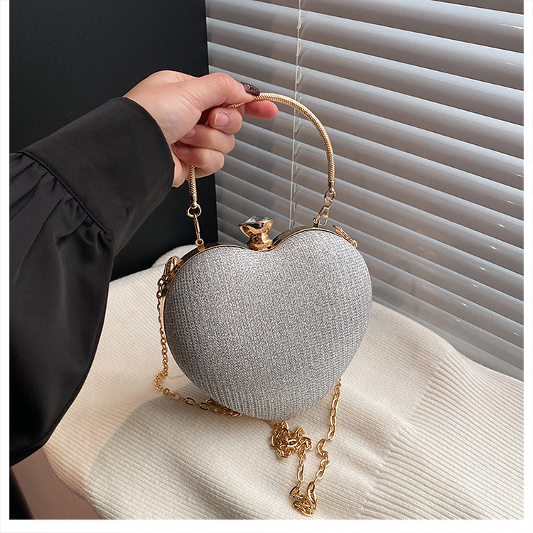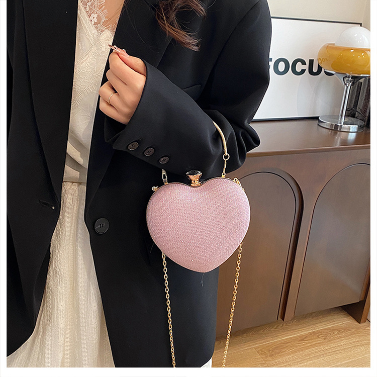 새로운 한국 스타일 어깨 하트 모양의 가방 틈새 체인 휴대용 크로스 바디 백 하이 엔드 이브닝 백 여성 체인 백
