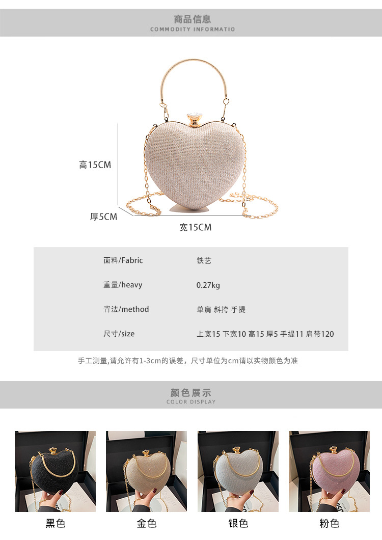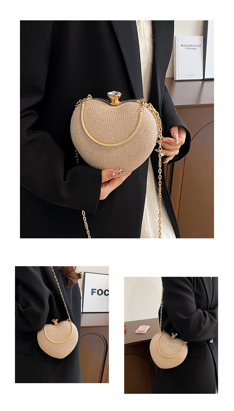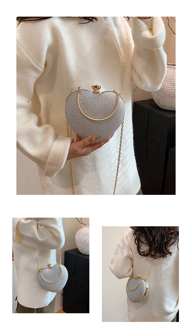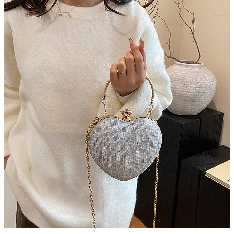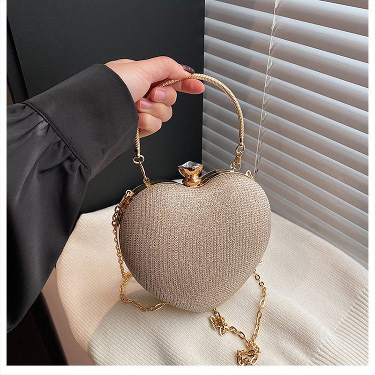 새로운 한국 스타일 어깨 하트 모양의 가방 틈새 체인 휴대용 크로스 바디 백 하이 엔드 이브닝 백 여성 체인 백