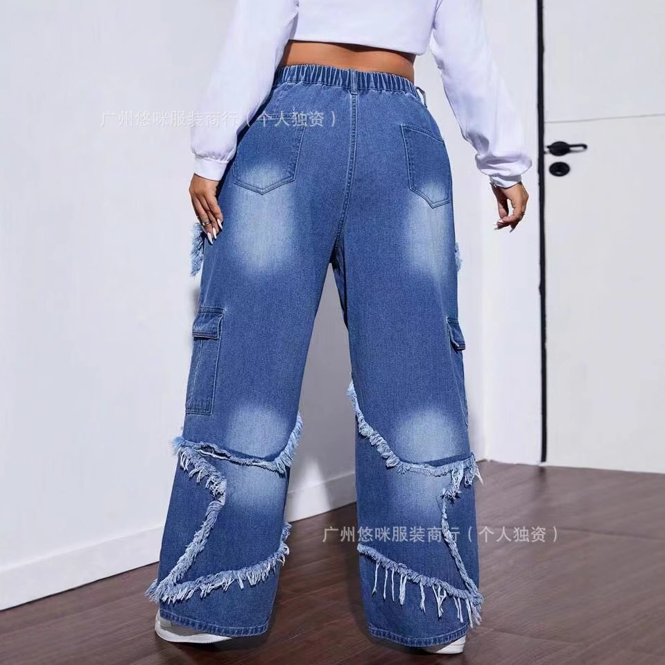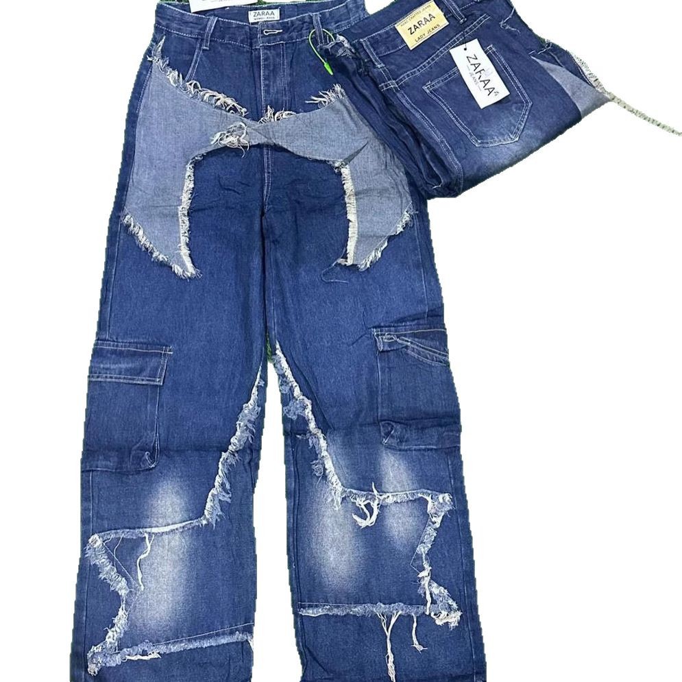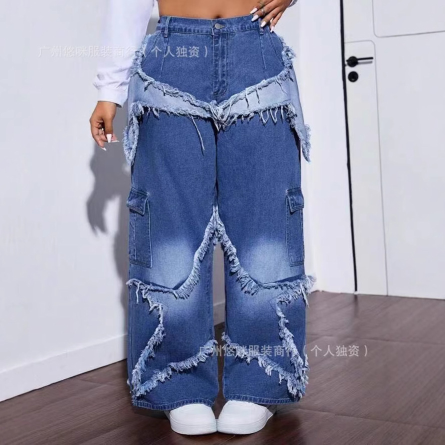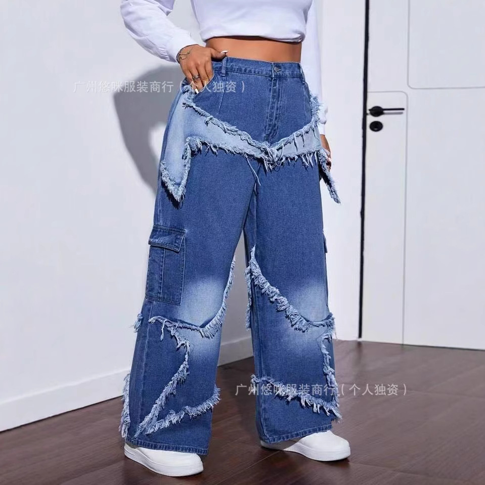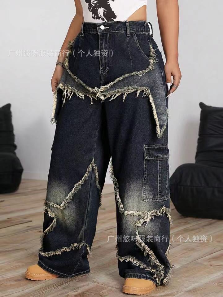 새로운 여성 데님 화물 팬츠화물 청바지 도매 넓은 다리 청바지 레이디 청바지