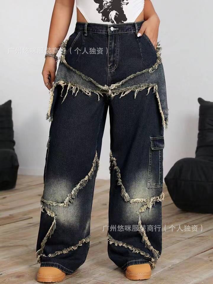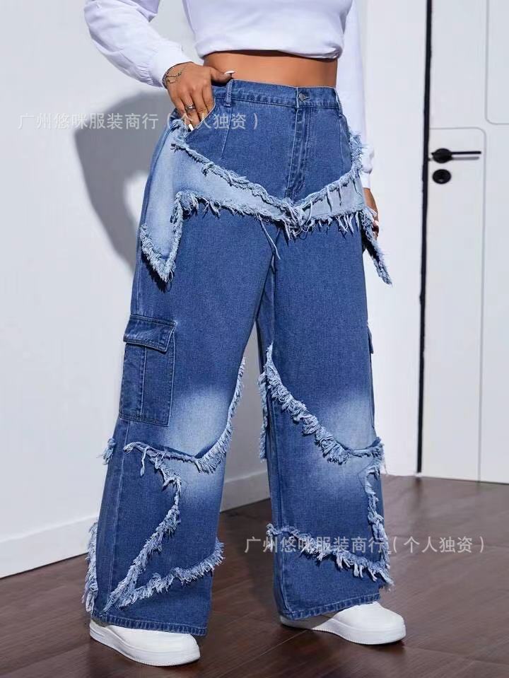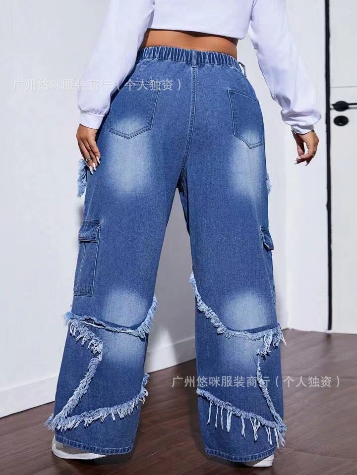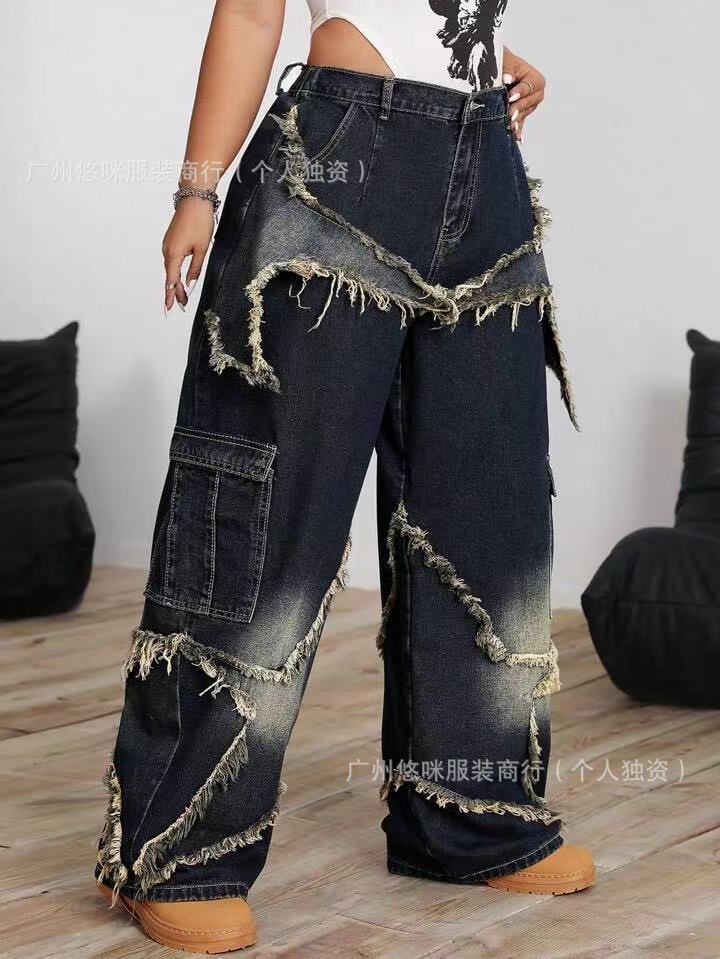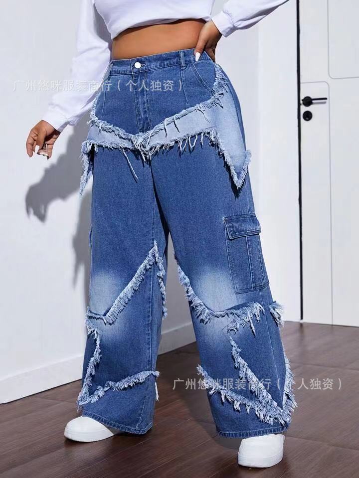 새로운 여성 데님 화물 팬츠화물 청바지 도매 넓은 다리 청바지 레이디 청바지