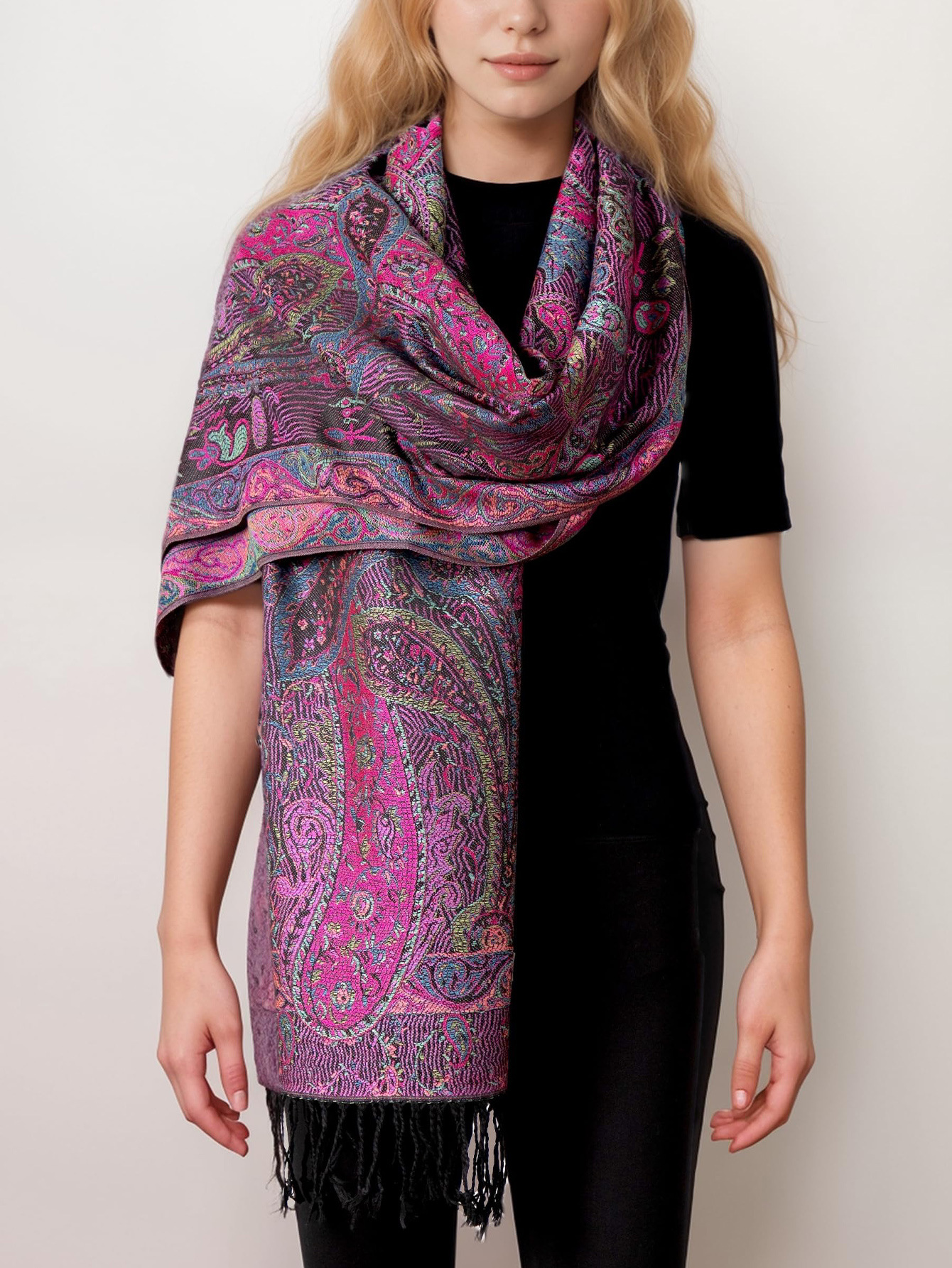 캐슈넛 도매 국경 간 아마존 자카드 스카프 여성용 파시미나 디자인 숄 여성용 스카프