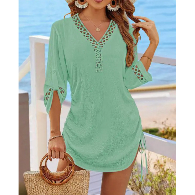 유럽과 미국의 국경 간 아마존 2025 여성 수영복 비키니 수영복 블라우스 드로우 스트링 비치 원피스 셔츠