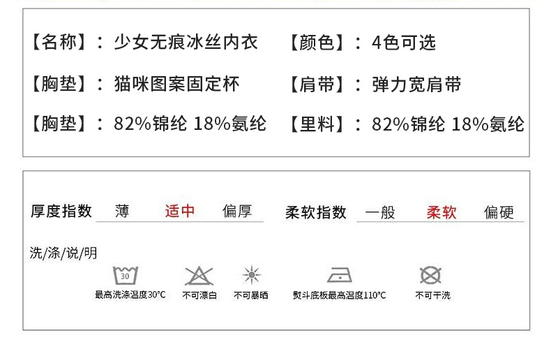 고양이 고정 컵 여아 발달 속옷 초등학교 중학생 브래지어 1, 2 단계 추적없는 조끼