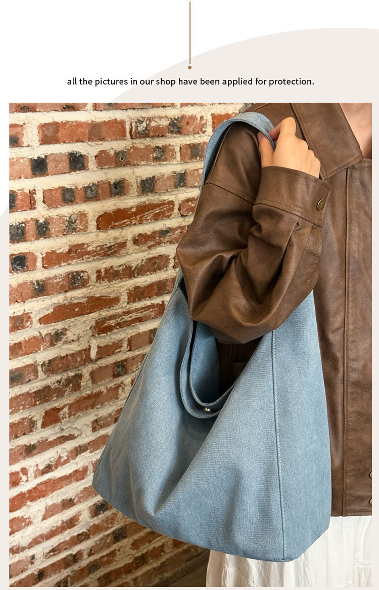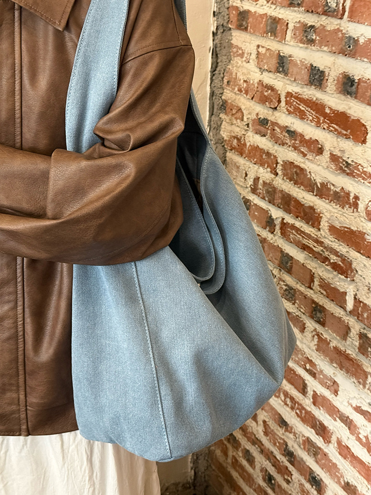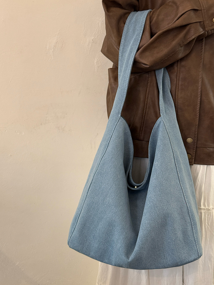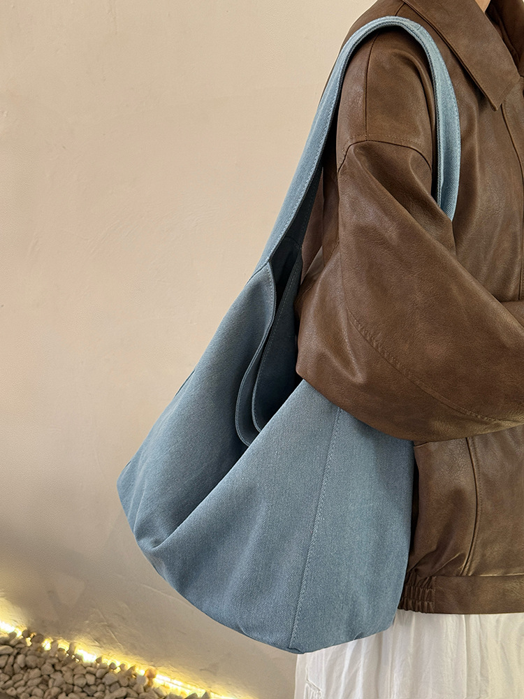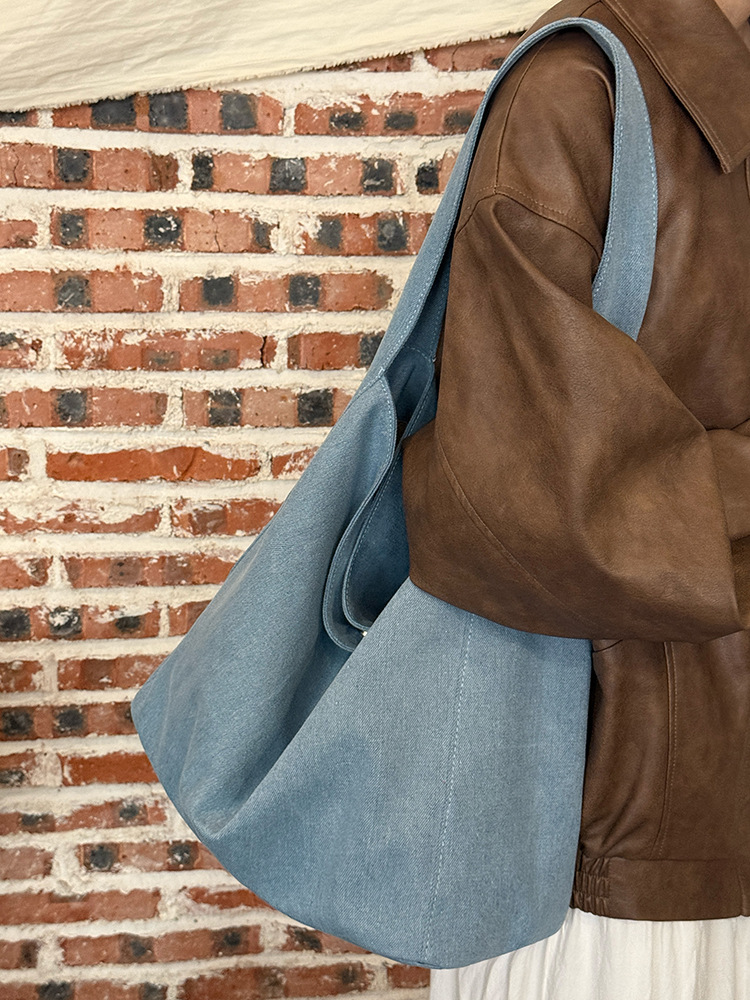 한국식 대용량 게으른 스타일 데님 캔버스 가방 새로운 틈새 통근 어깨 가방 올 매치 언더암 토트 백