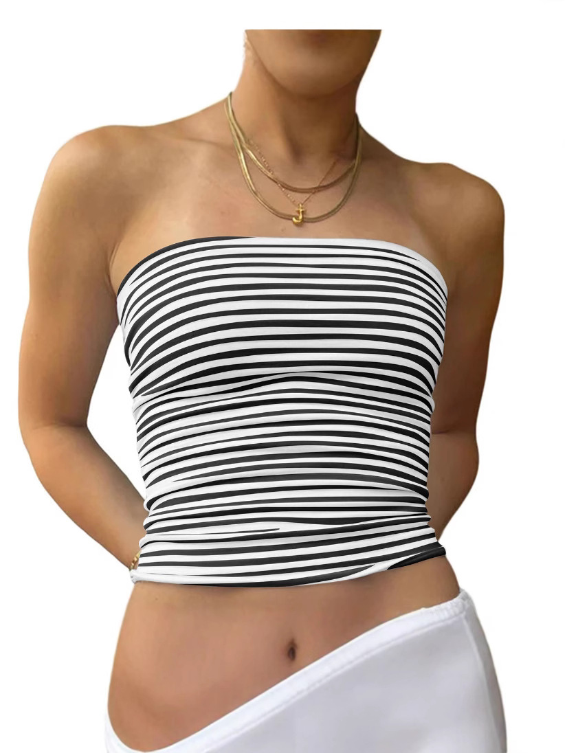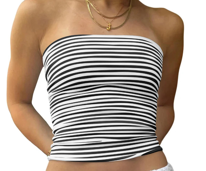 아마존 해외 무역 인기 상품 스트라이프 무지 튜브탑 여름 패션 캐주얼 핫걸 숏탑 여성용
