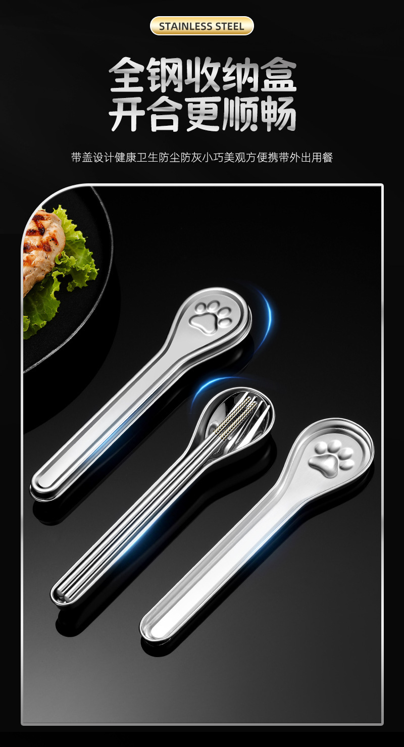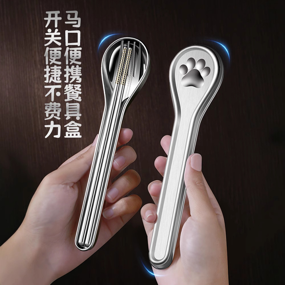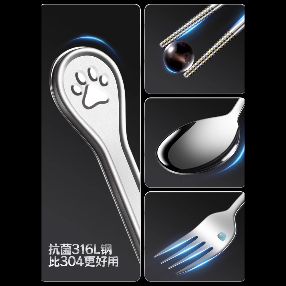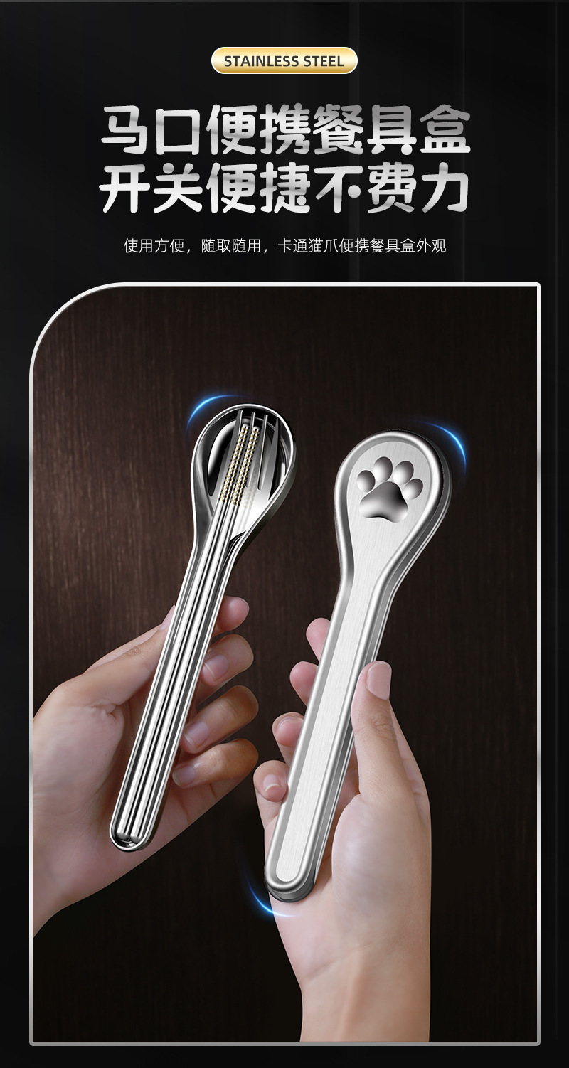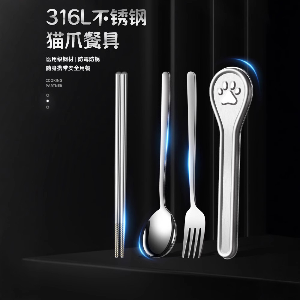 316 스테인레스 스틸 젓가락과 스푼 세트 휴대용 고양이 발톱 수저 상자 초등학생 및 어린이를위한 1 인용