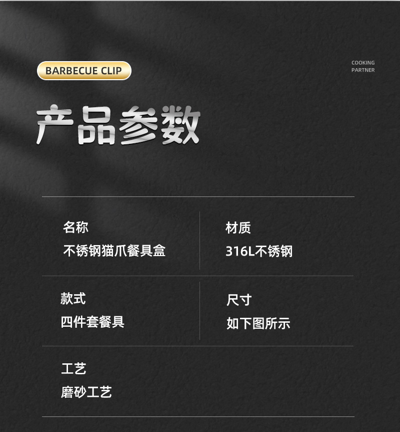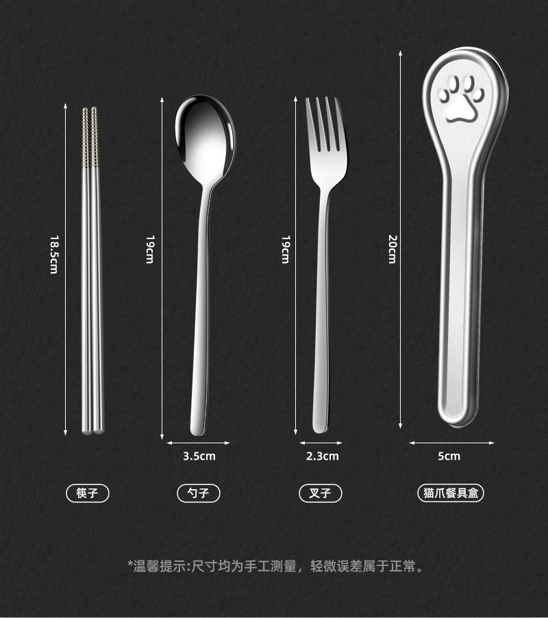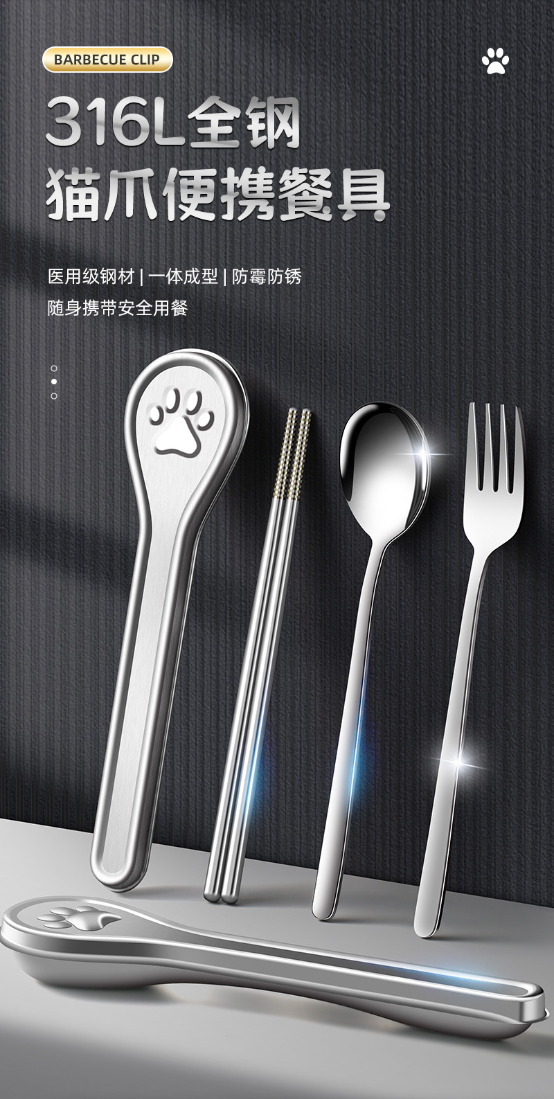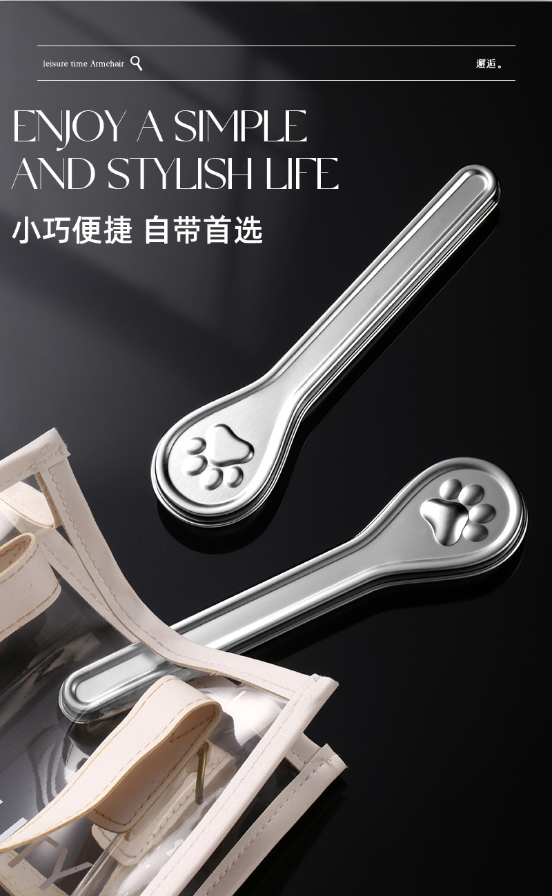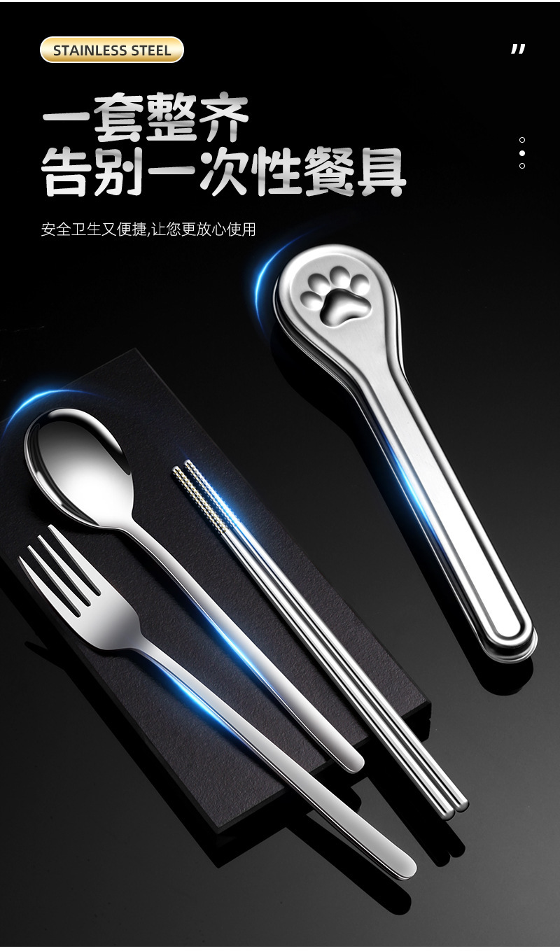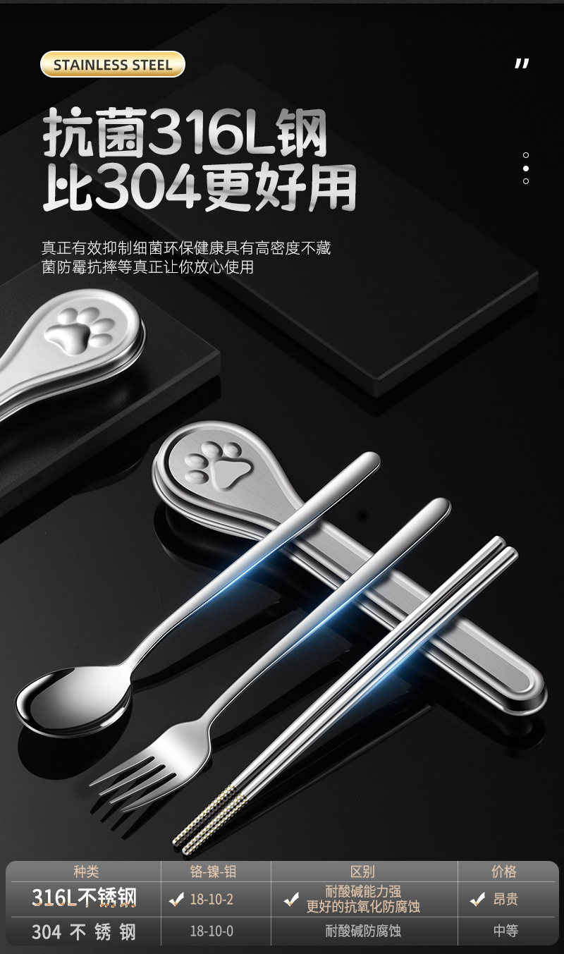 316 스테인레스 스틸 젓가락과 스푼 세트 휴대용 고양이 발톱 수저 상자 초등학생 및 어린이를위한 1 인용