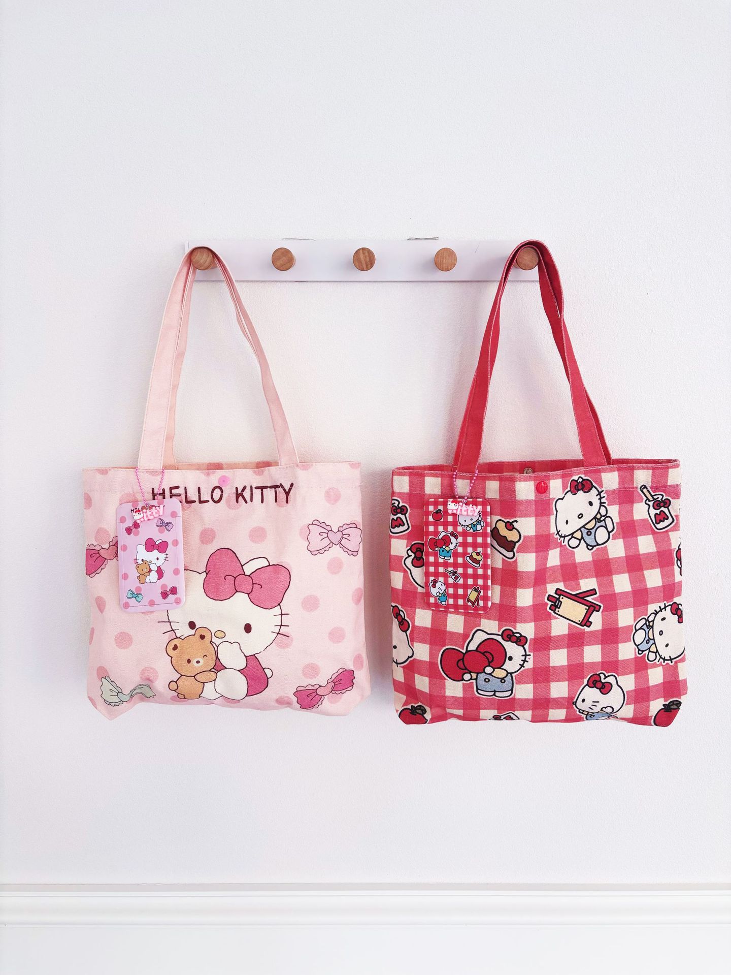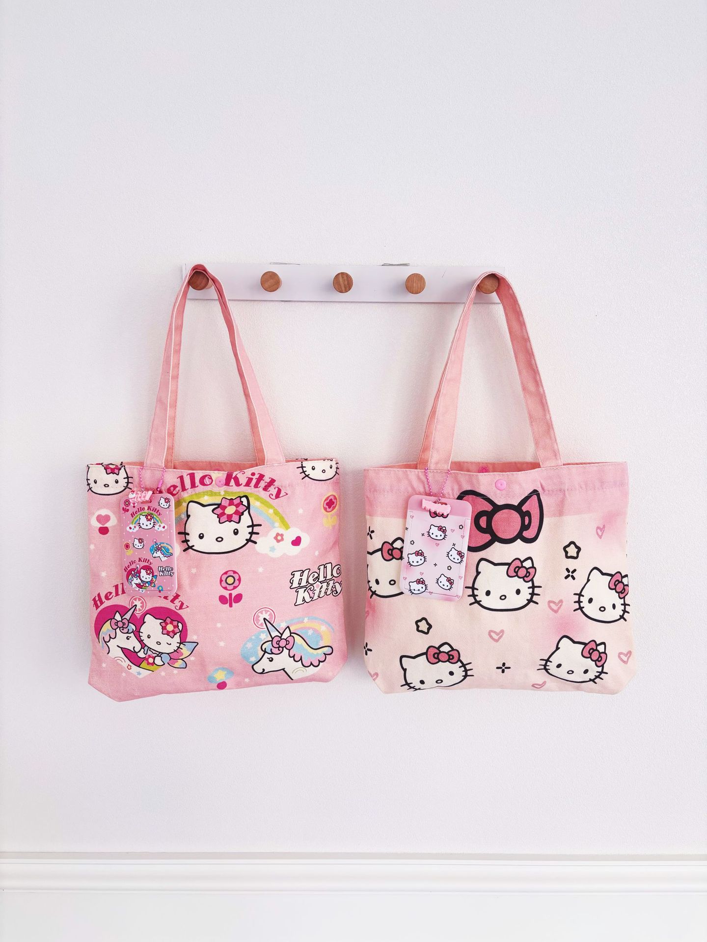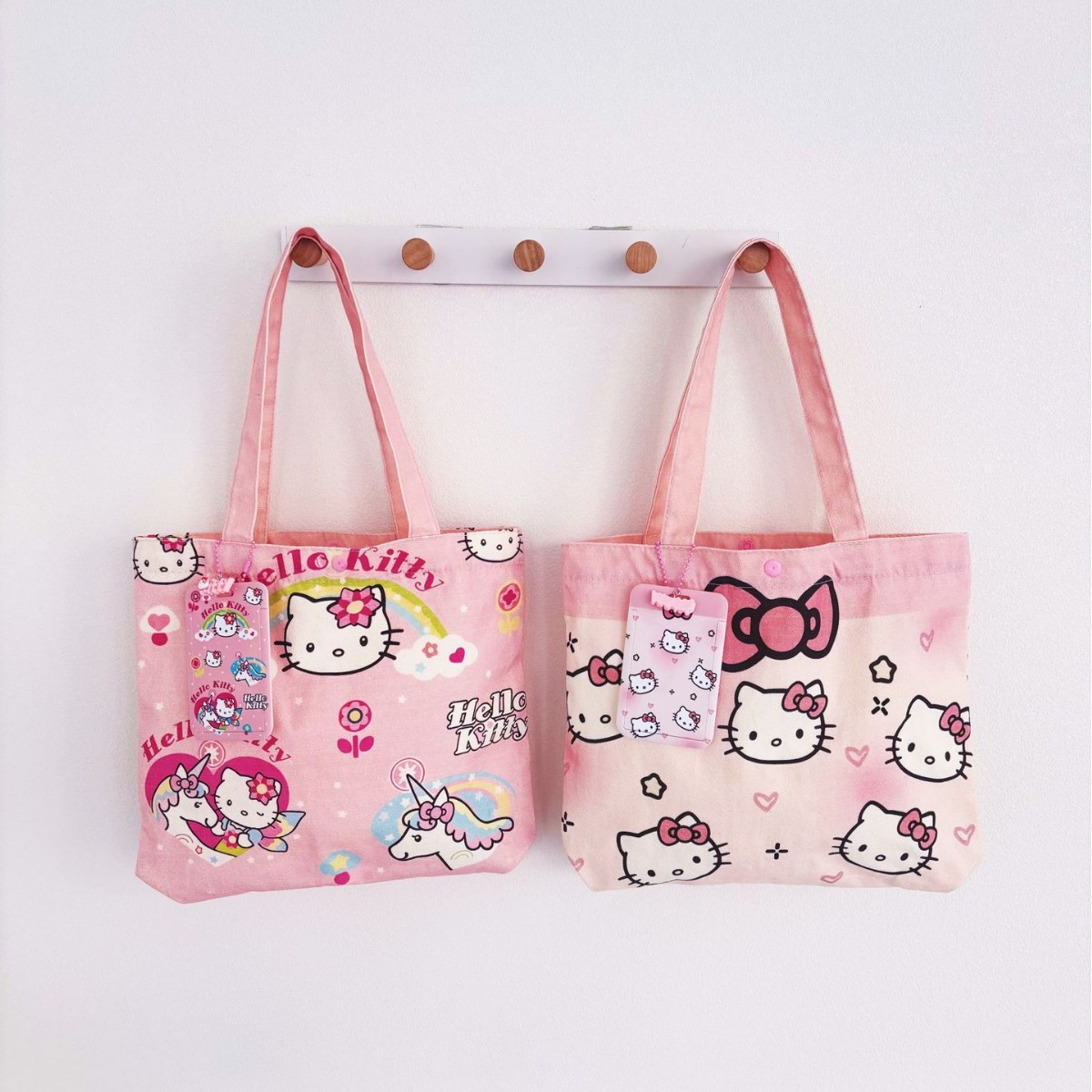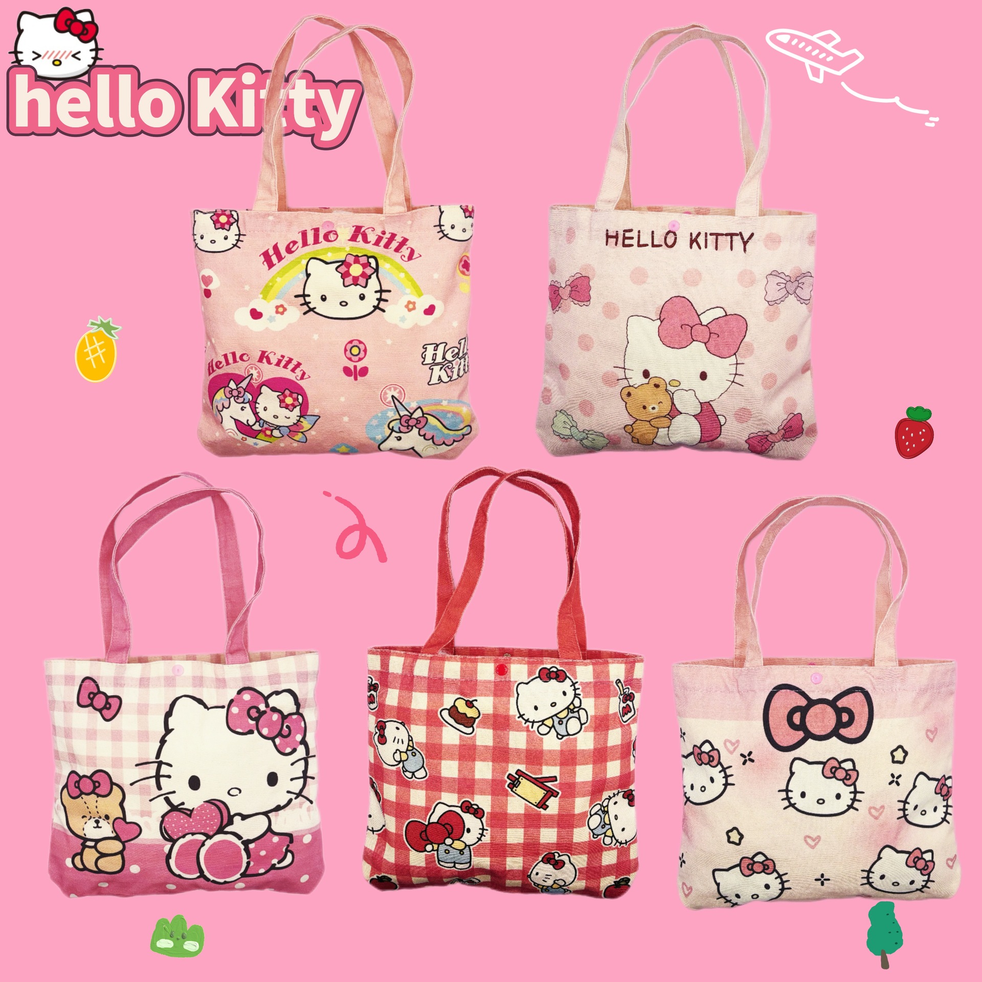 귀여운 헬로 키티 캔버스 가방 소녀 하트 대용량 학생 캔버스 가방 숄더백 휴대용 통근 핸드백