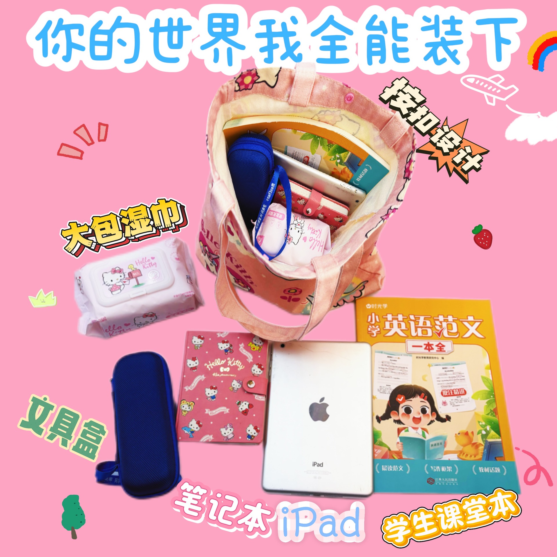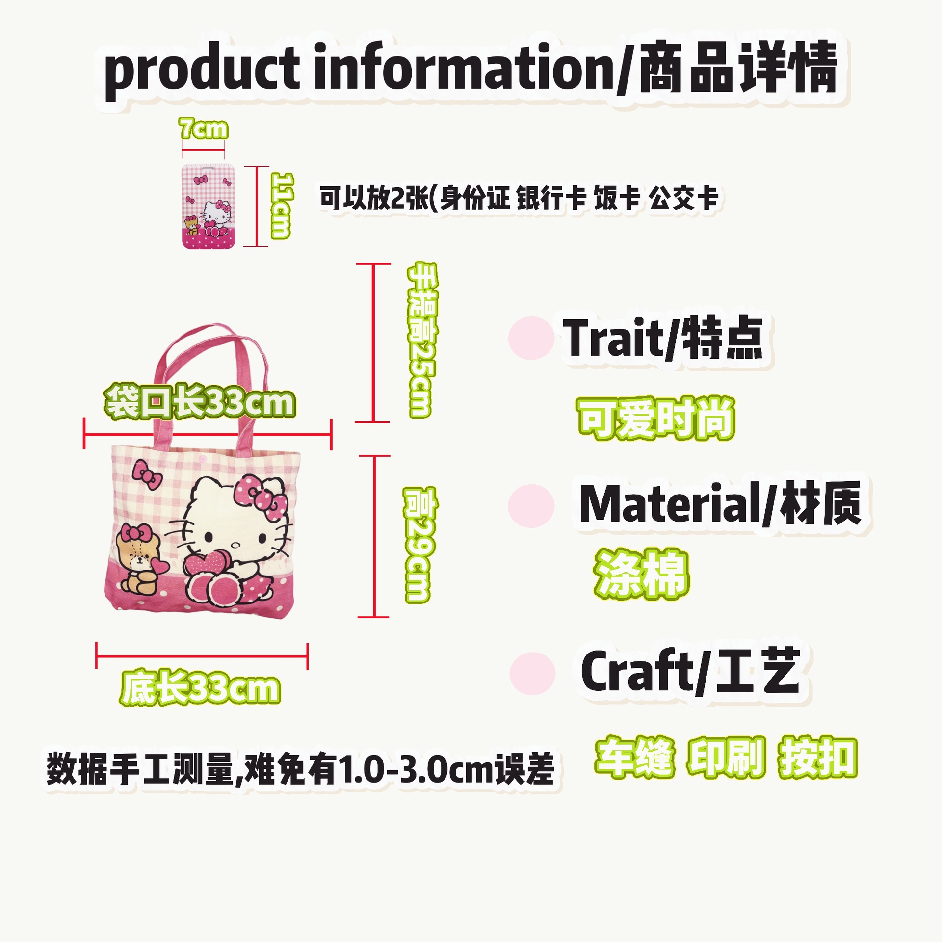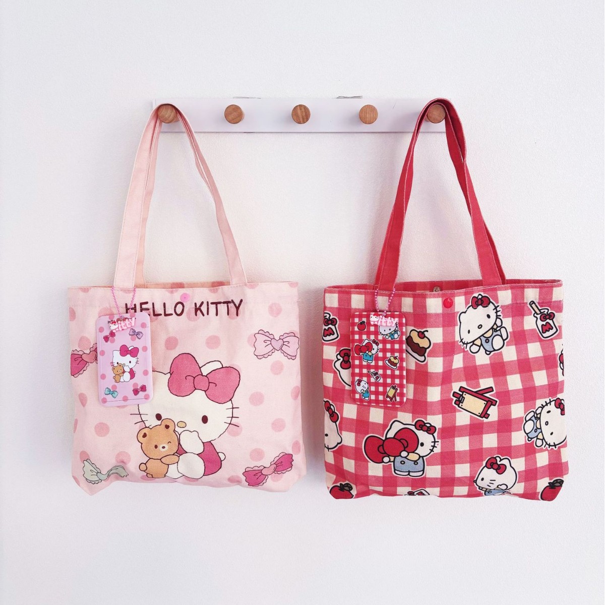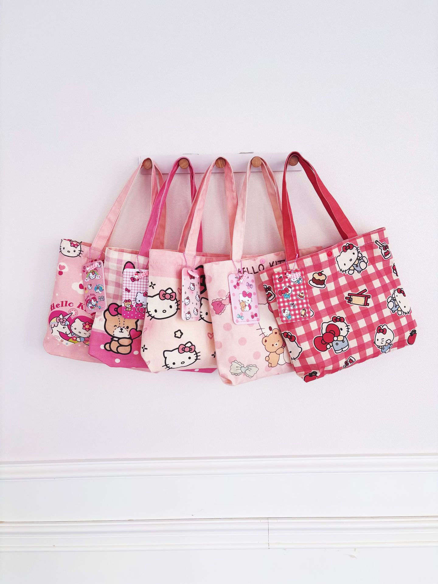 귀여운 헬로 키티 캔버스 가방 소녀 하트 대용량 학생 캔버스 가방 숄더백 휴대용 통근 핸드백