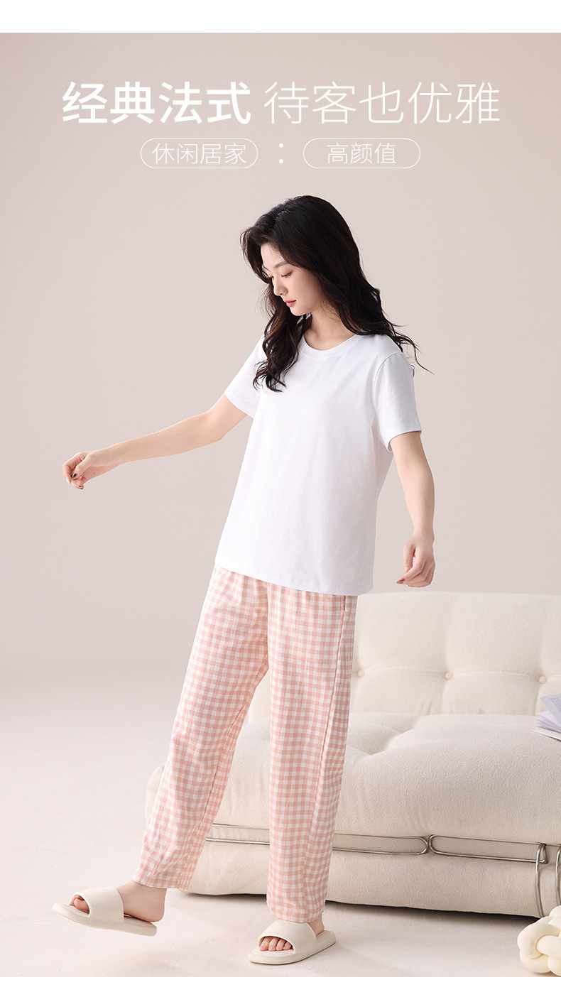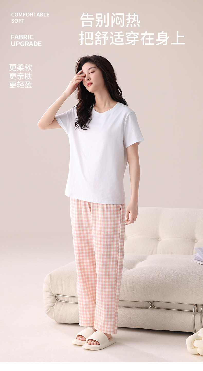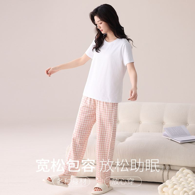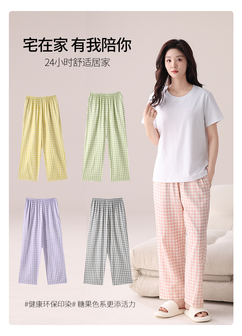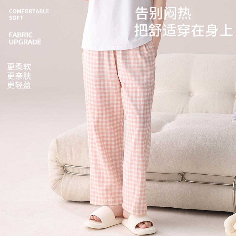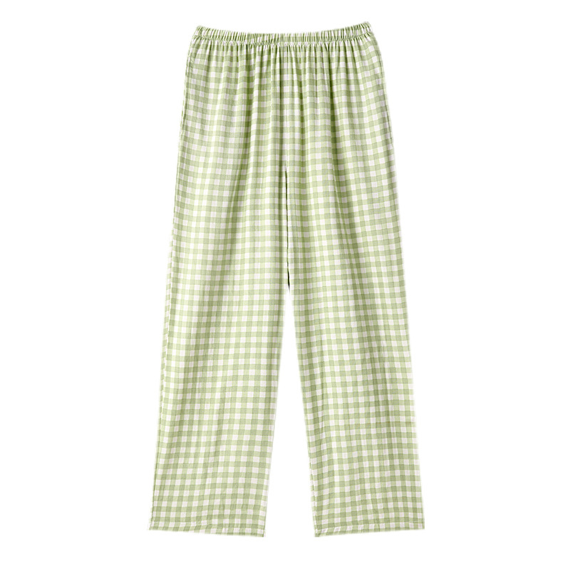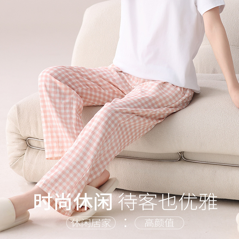여성용 체크무늬 잠옷 바지, 면 100% 긴바지, 여름 신상품, 순면, 일본식, 루즈핏, 캐주얼, 편안함, 외출복으로도 착용 가능한 홈웨어 바지
