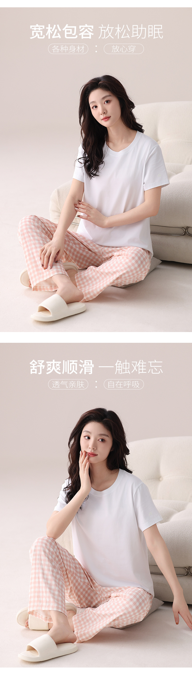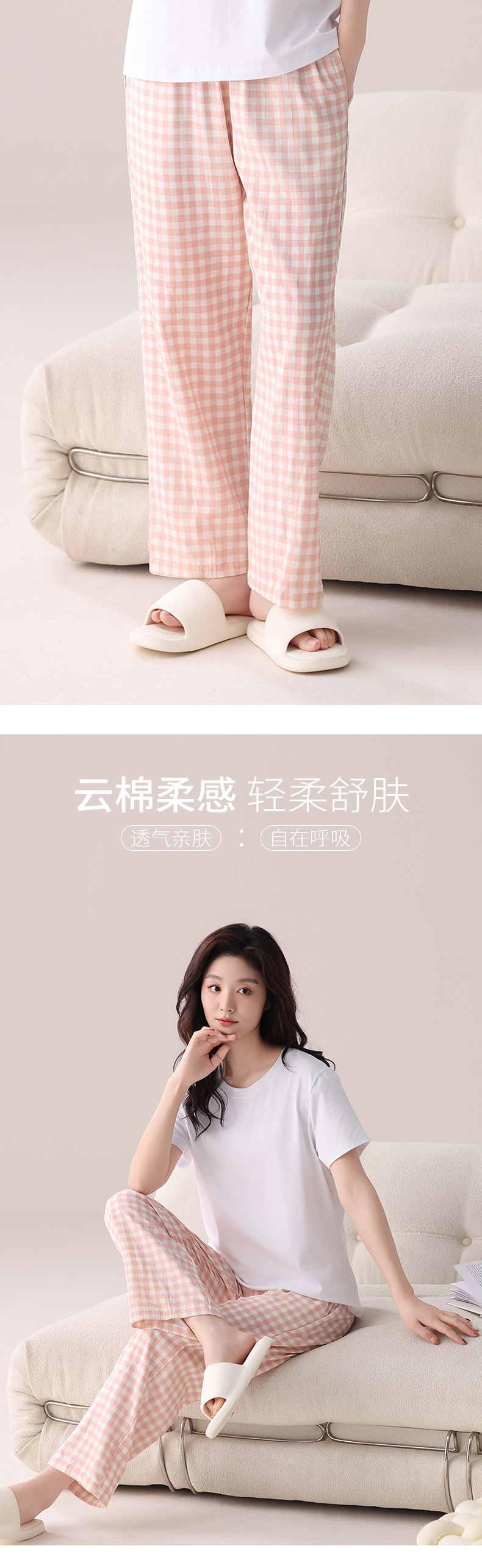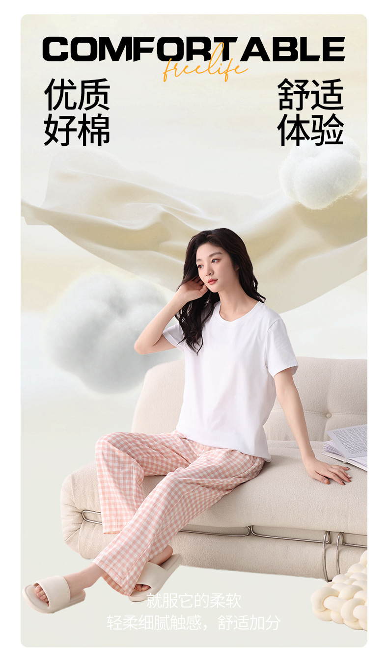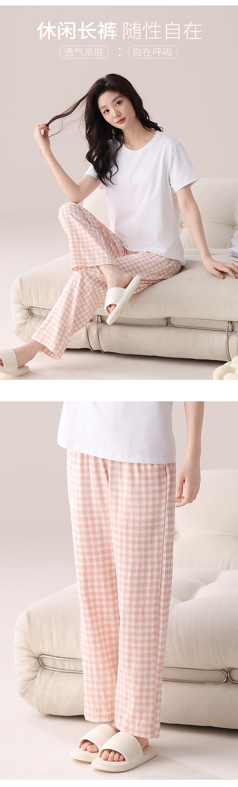 여성용 체크무늬 잠옷 바지, 면 100% 긴바지, 여름 신상품, 순면, 일본식, 루즈핏, 캐주얼, 편안함, 외출복으로도 착용 가능한 홈웨어 바지