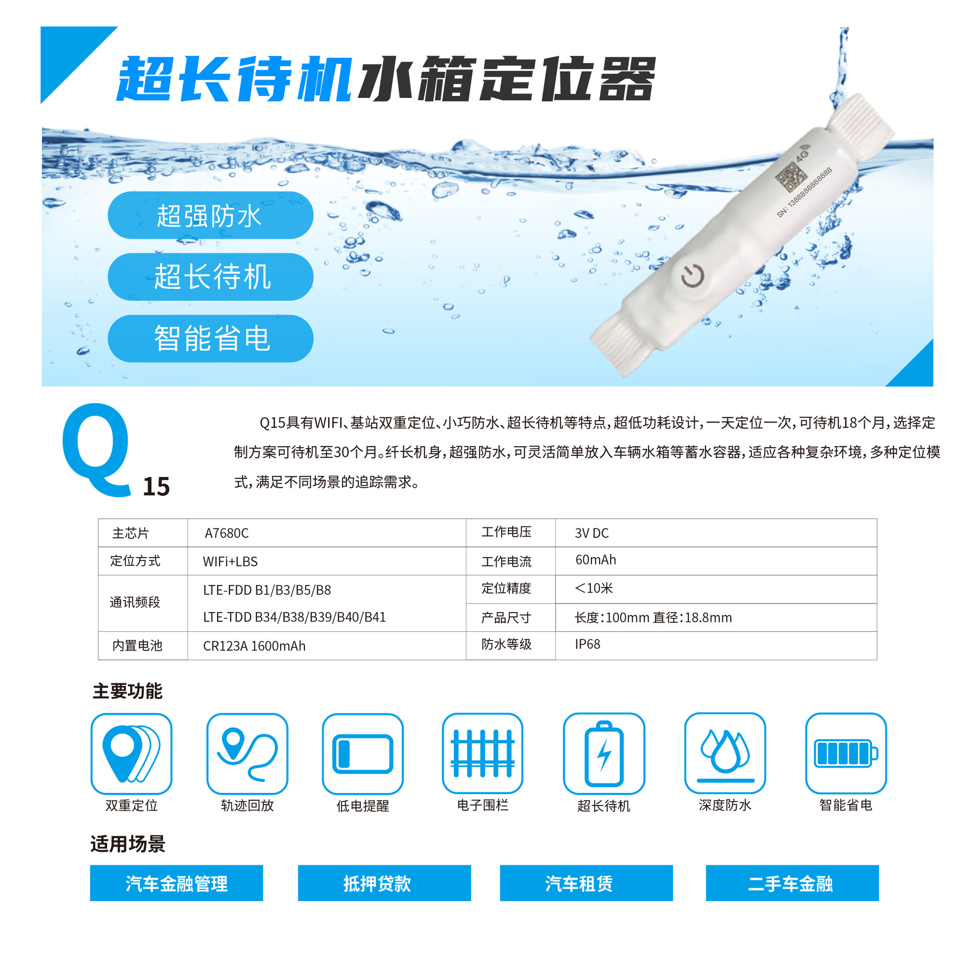 场景:国内用;放置在汽车玻璃水箱中