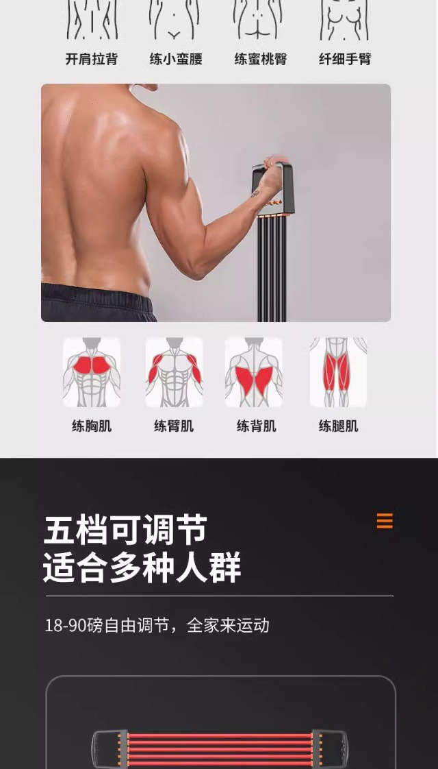 어깨를 열고 등과 팔을 날씬하게 만들 수 있는 조절 가능한 5단 장력 조절기, 홈 스포츠 요가 근육 강화 피트니스 장력 로프
