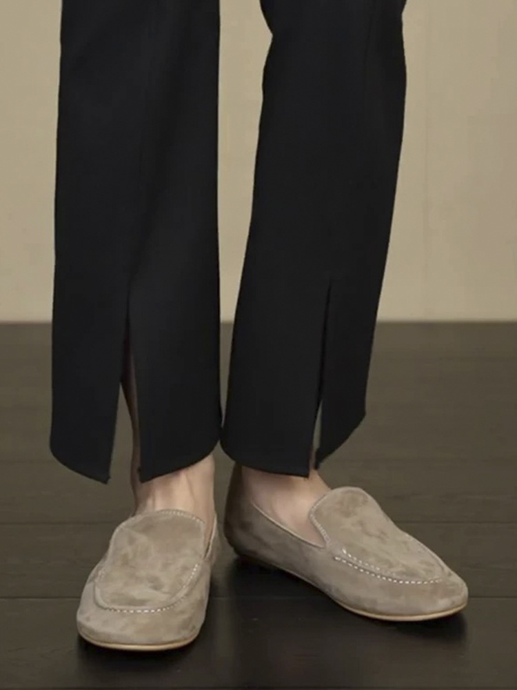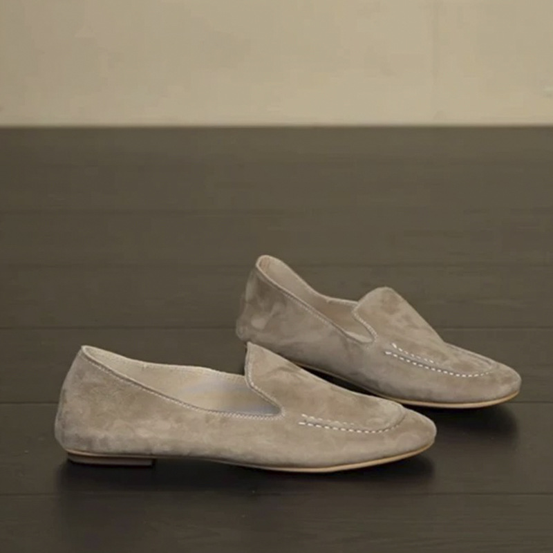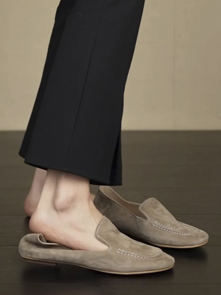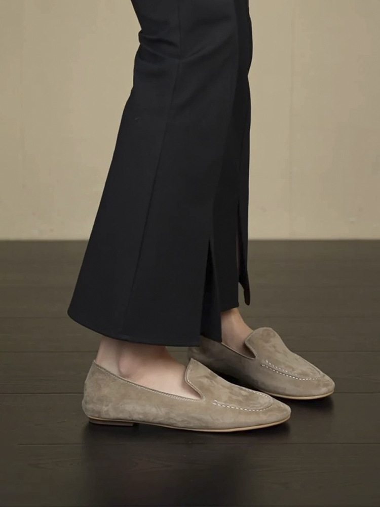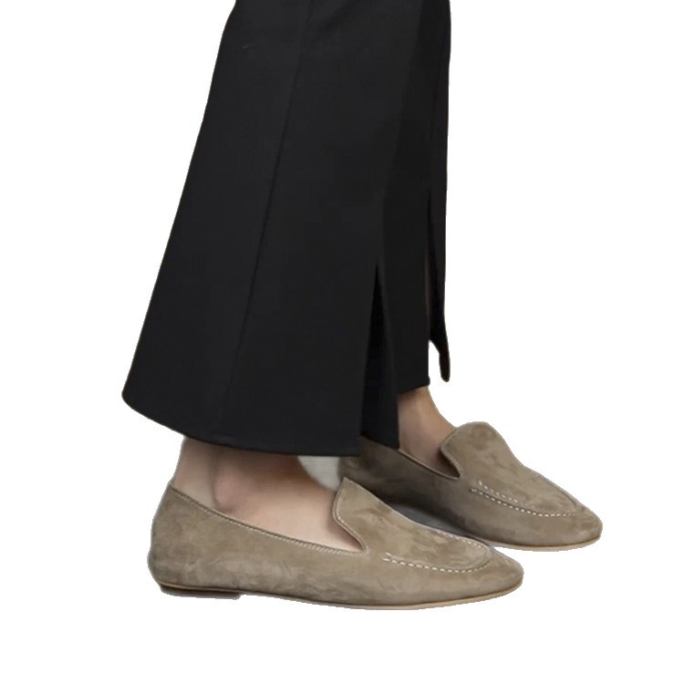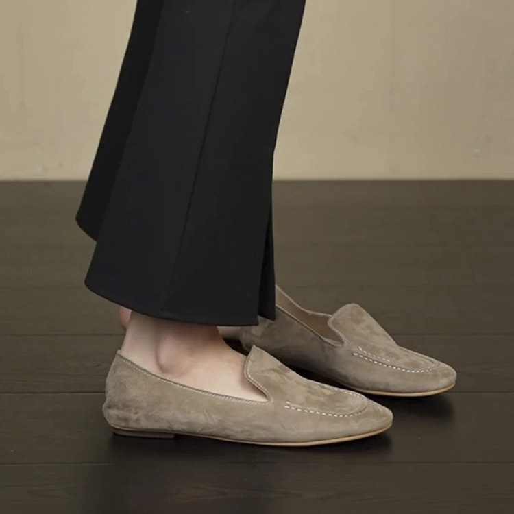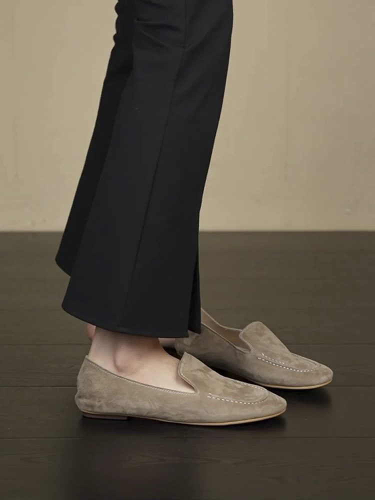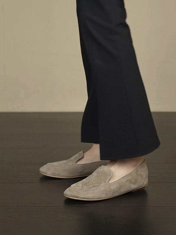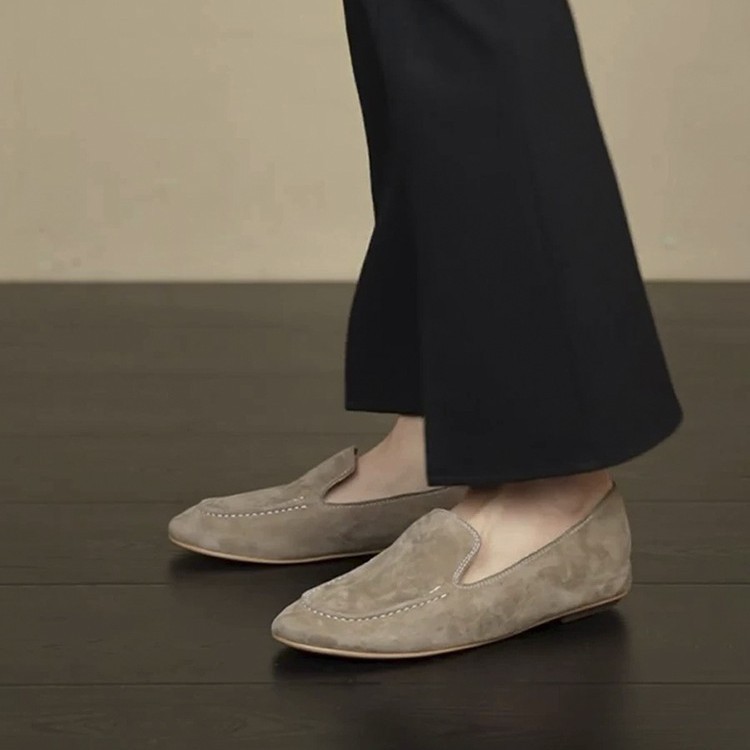 소가죽 버전~레트로 슬립온 미니멀리스트 라운드토 로퍼, 여성용 다용도 통근 플랫슈즈, 캐주얼 비니슈즈