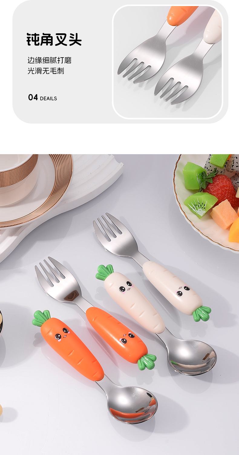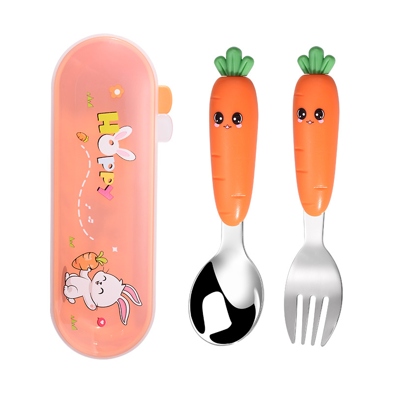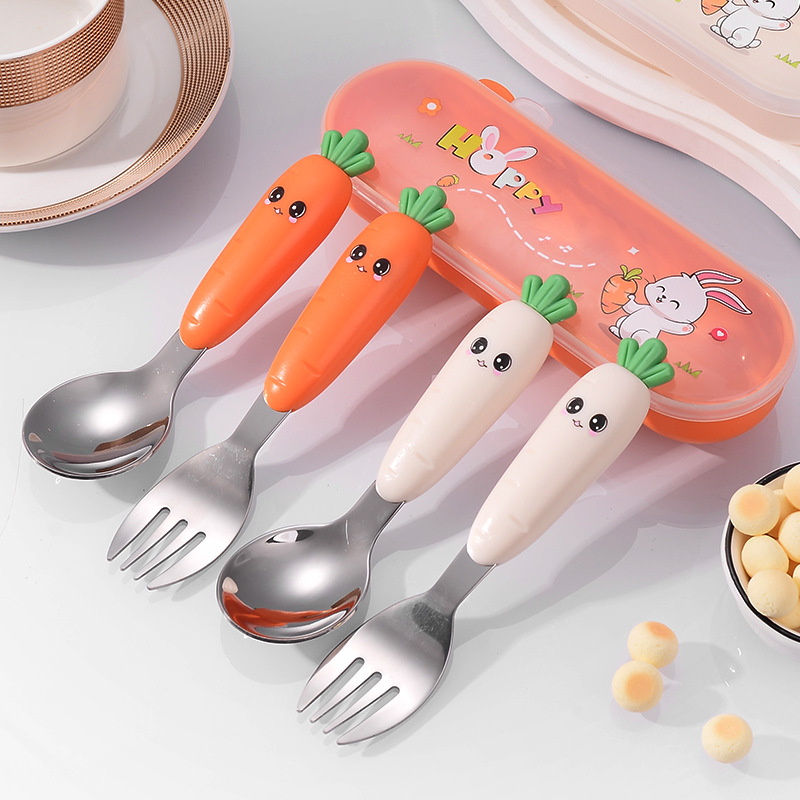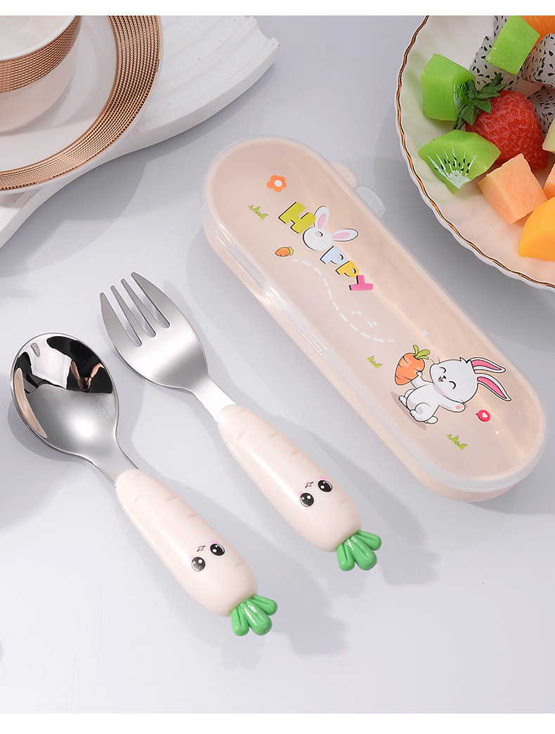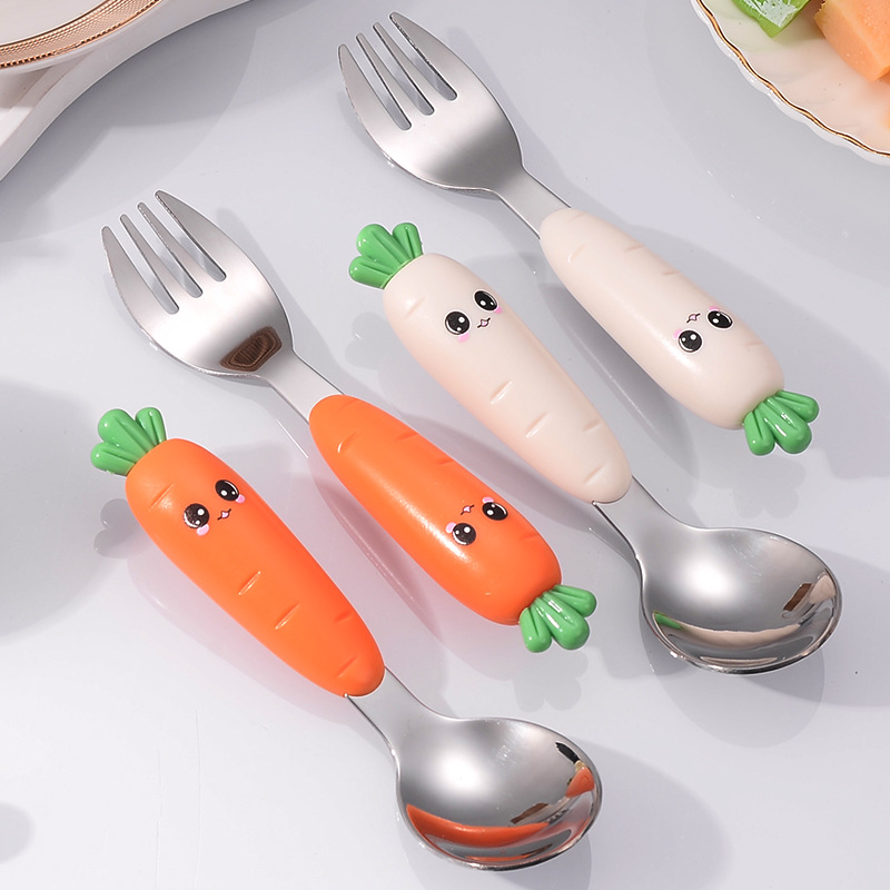 휴대용 식기 304 스테인레스 스틸 어린이 이유식 스푼 무 아기 먹이 훈련 스푼 포크