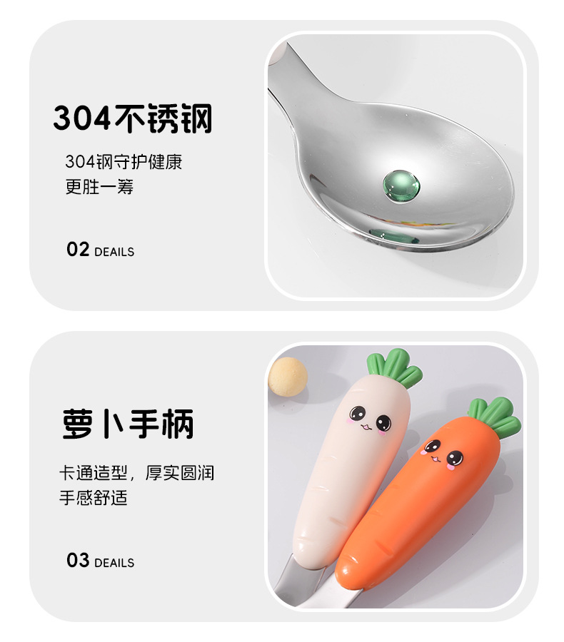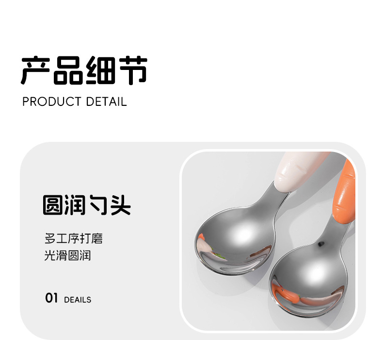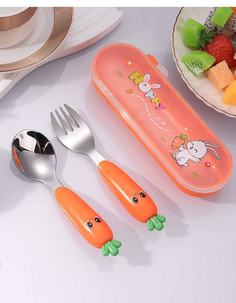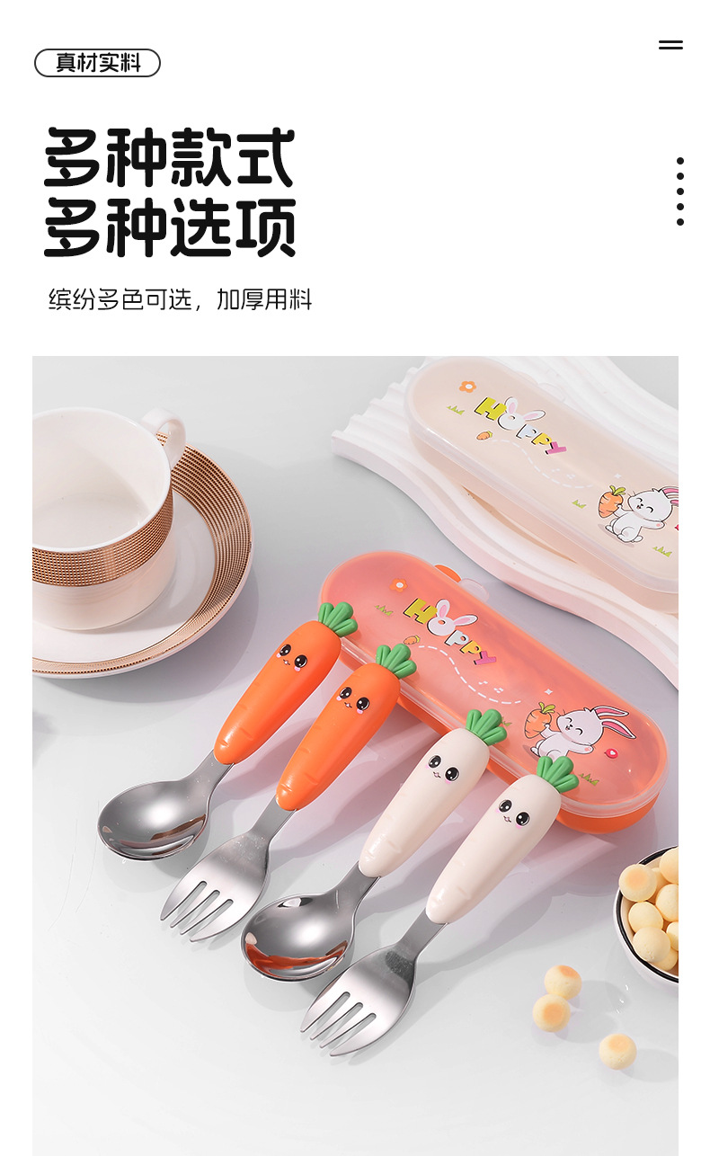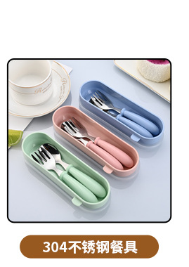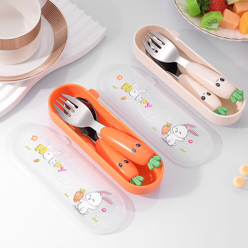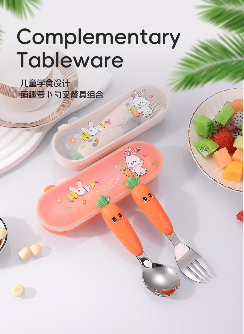 휴대용 식기 304 스테인레스 스틸 어린이 이유식 스푼 무 아기 먹이 훈련 스푼 포크