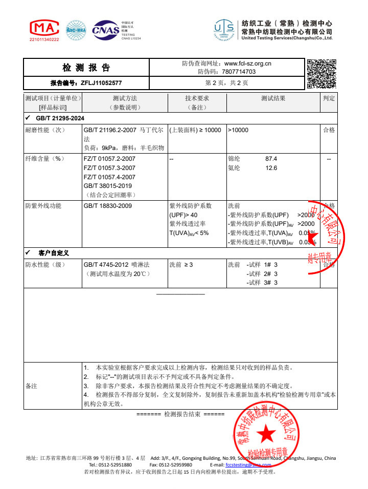 주요 원단 성분 함량