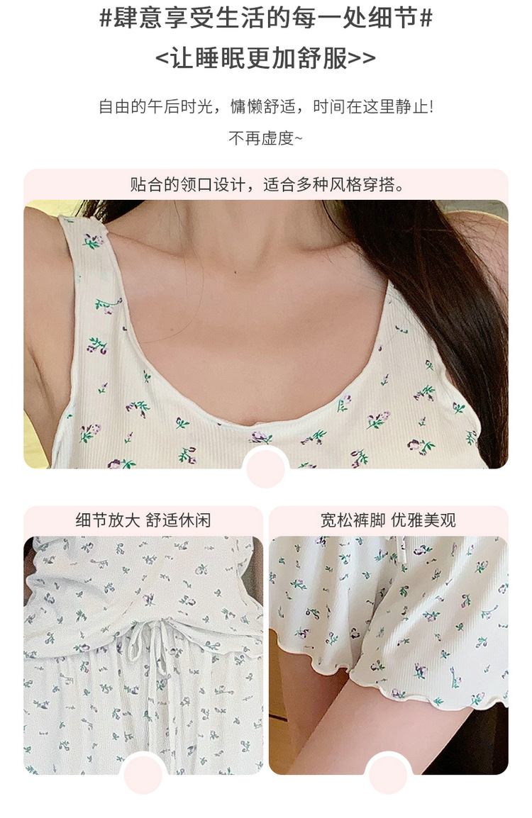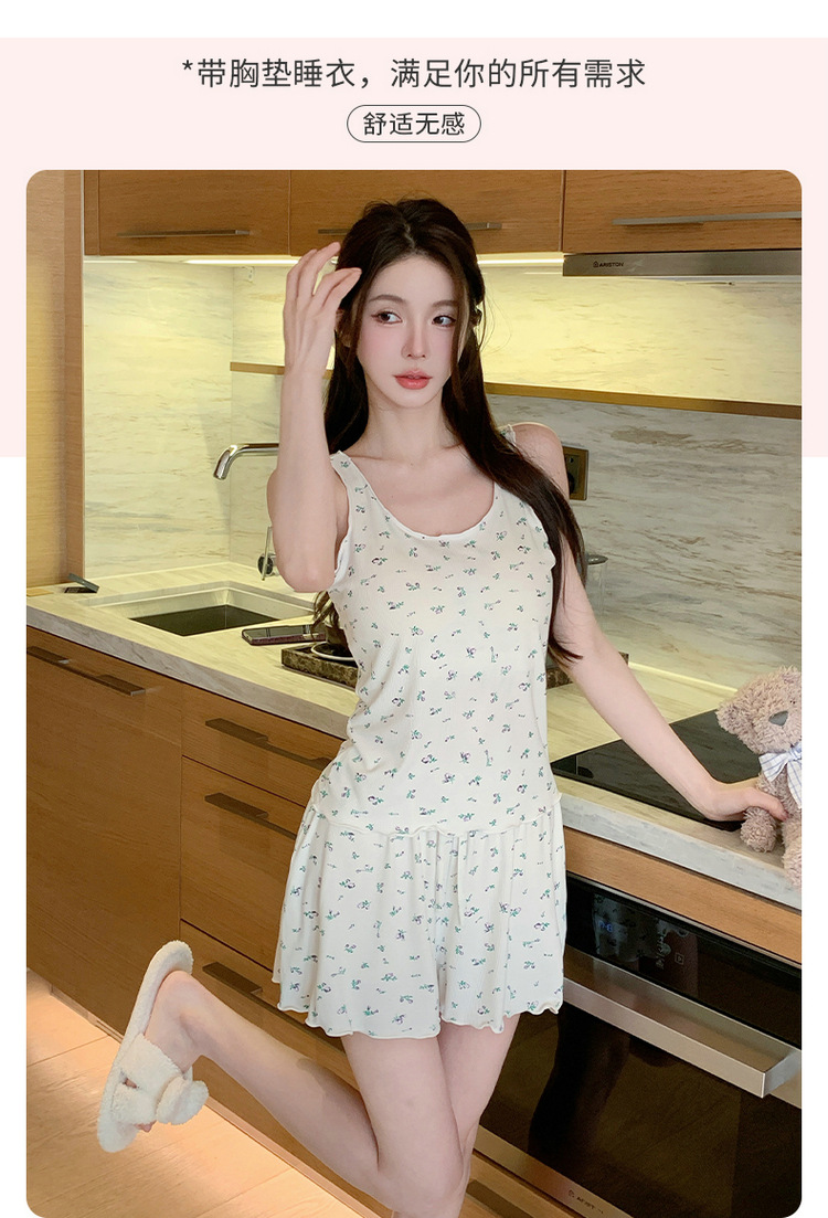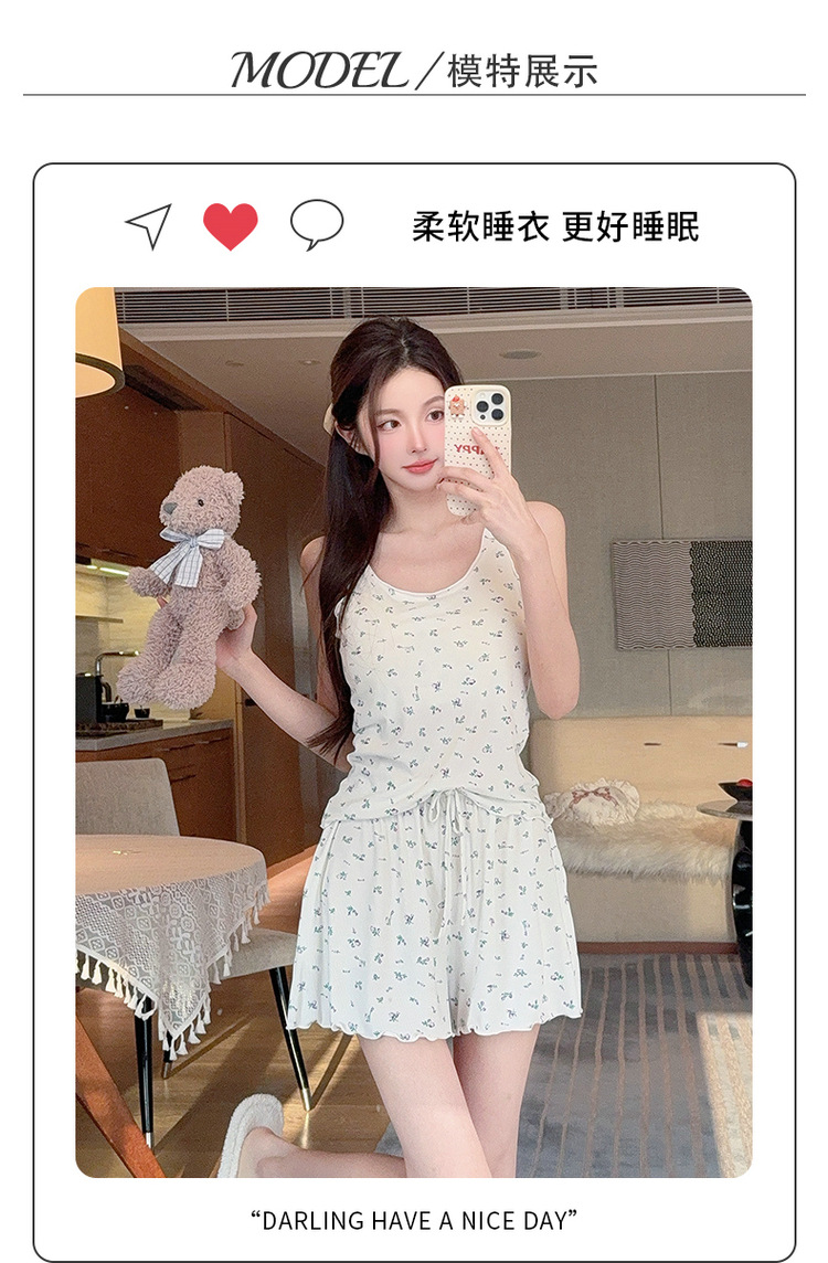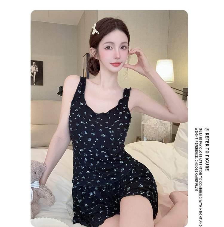 대외 무역 국경 여름 새로운 모달 조끼 반바지 정장 꽃 잠옷 가슴 패드가있는 여성 가정 의류