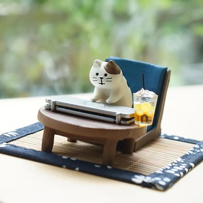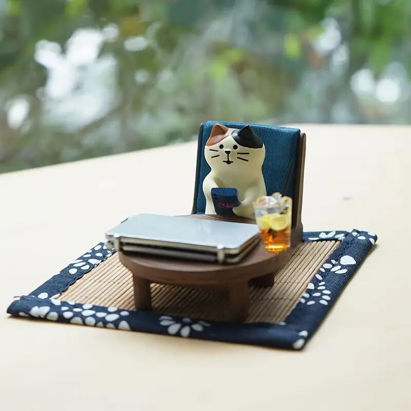 새로운 뜨거운 일본 식료품 고양이 개구리 사무실 장면 수지 촬영 사진 소품 홈 장식품 휴대용