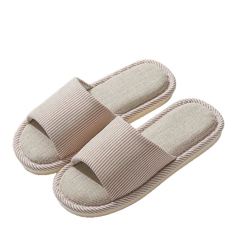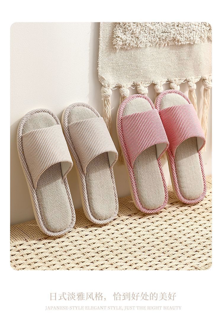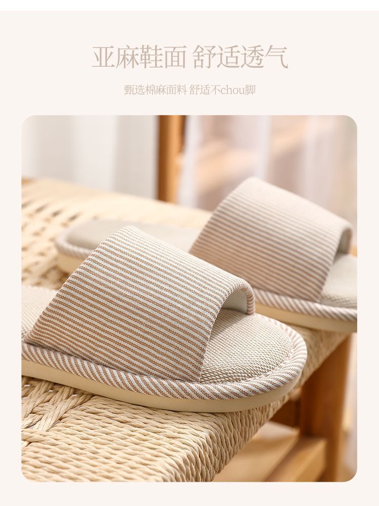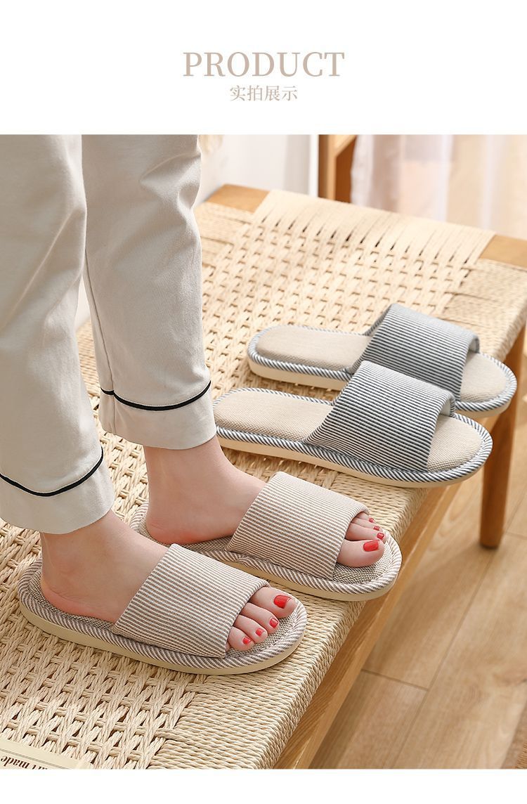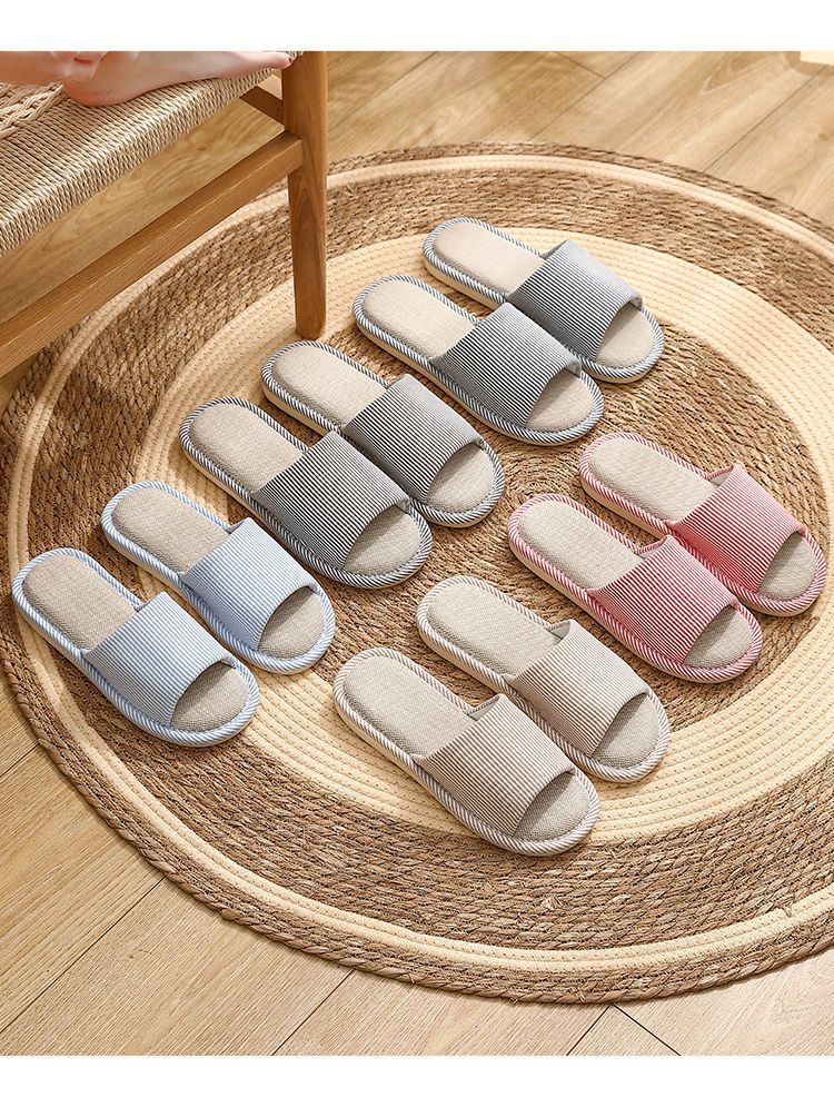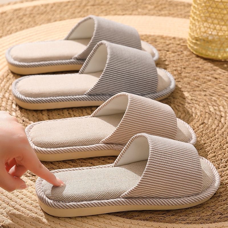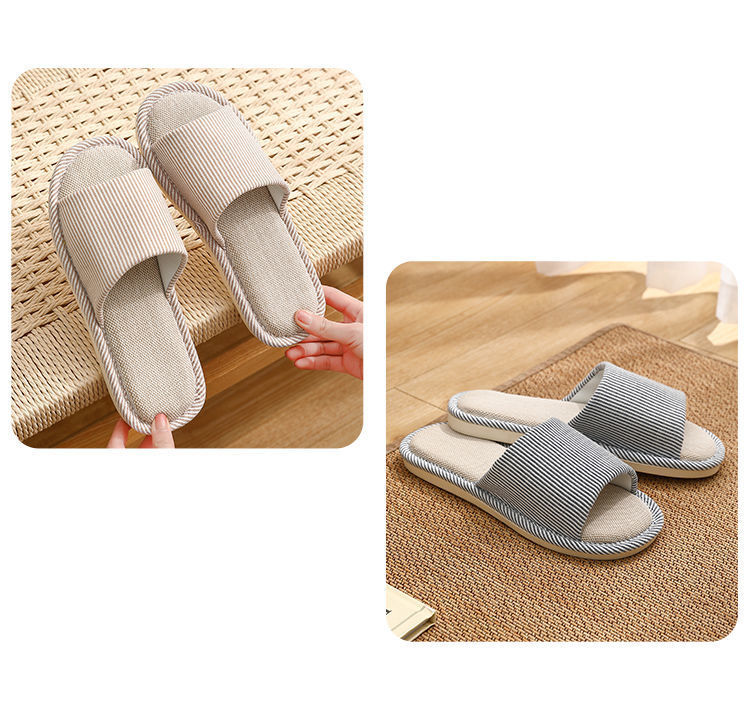 일본식 리넨 슬리퍼 봄과 가을 남자 줄무늬 통기성 실내 음소거 홈 미끄럼 방지 사계절 면 리넨 슬리퍼 남자 여름