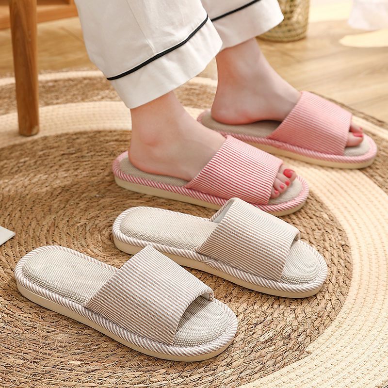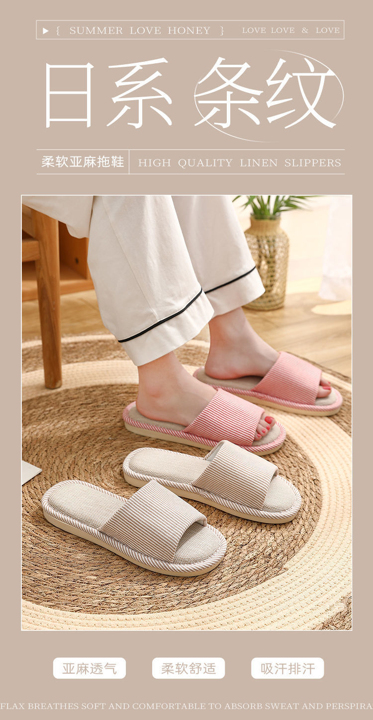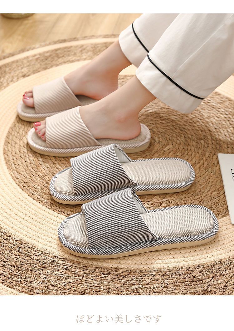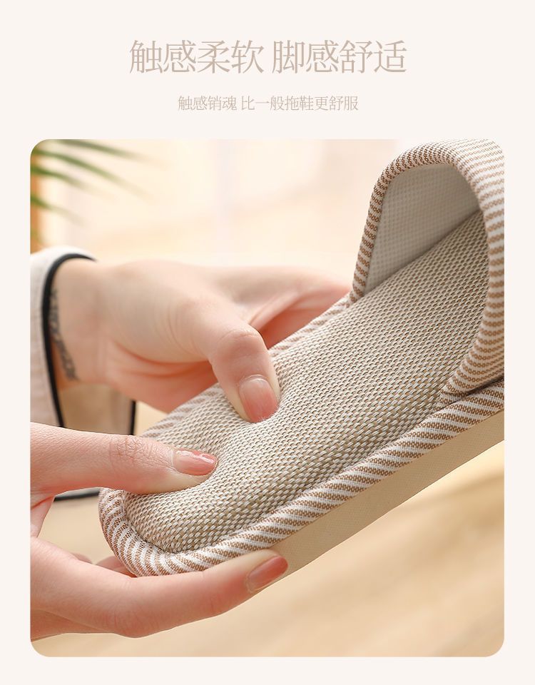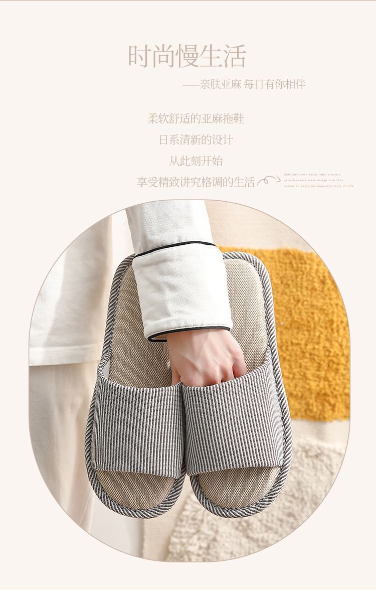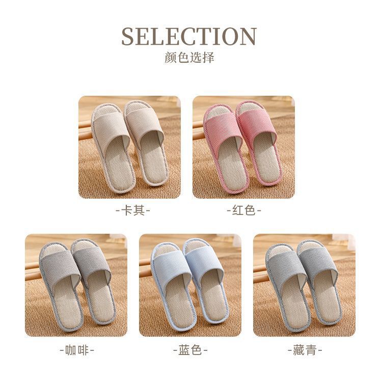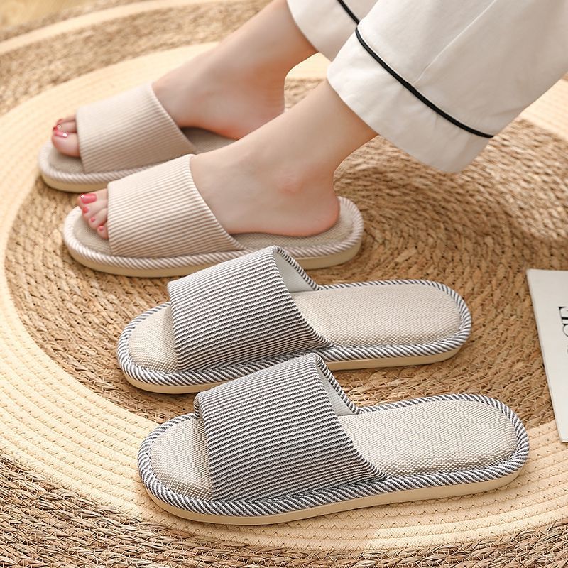일본식 리넨 슬리퍼 봄과 가을 남자 줄무늬 통기성 실내 음소거 홈 미끄럼 방지 사계절 면 리넨 슬리퍼 남자 여름