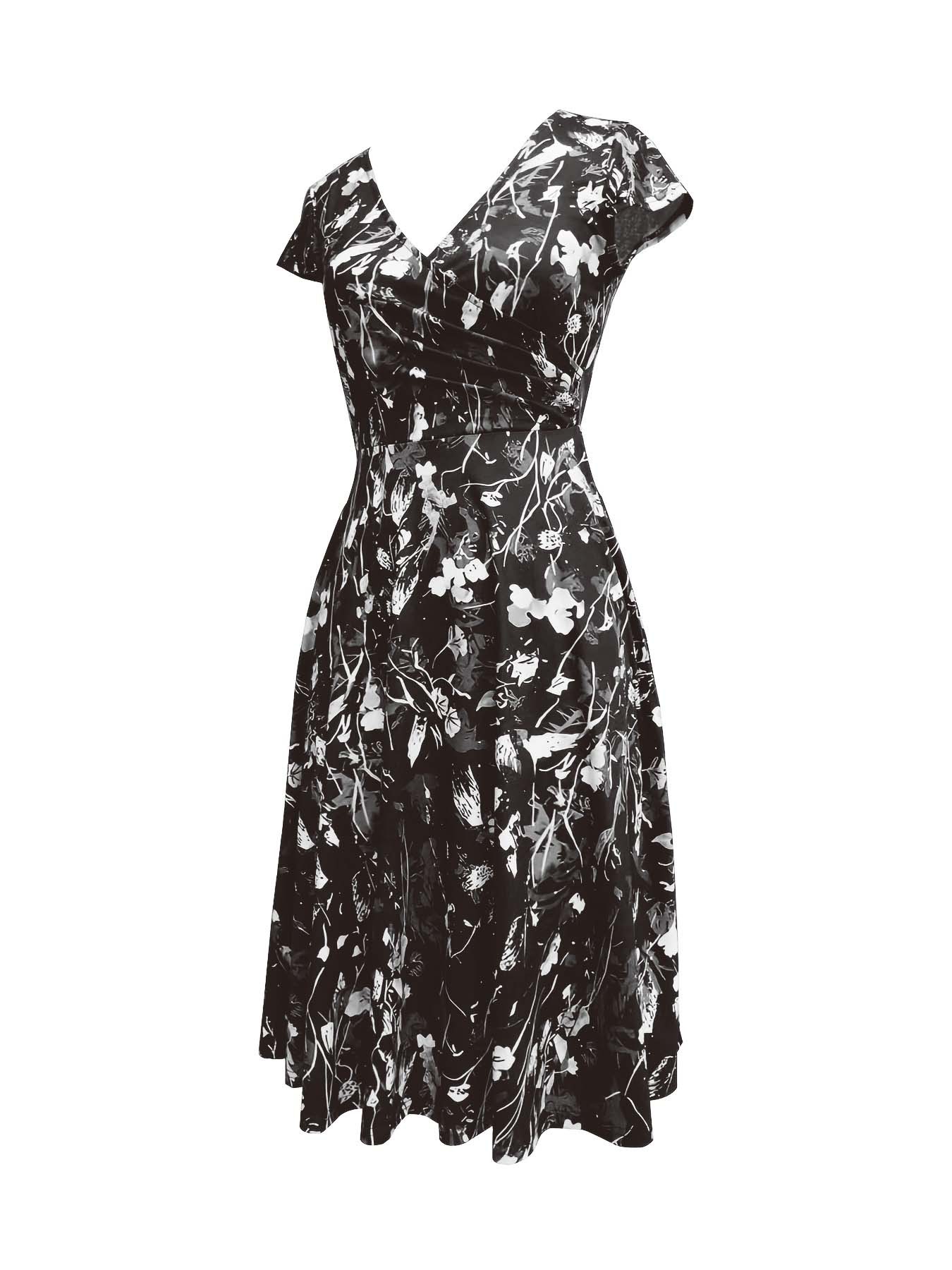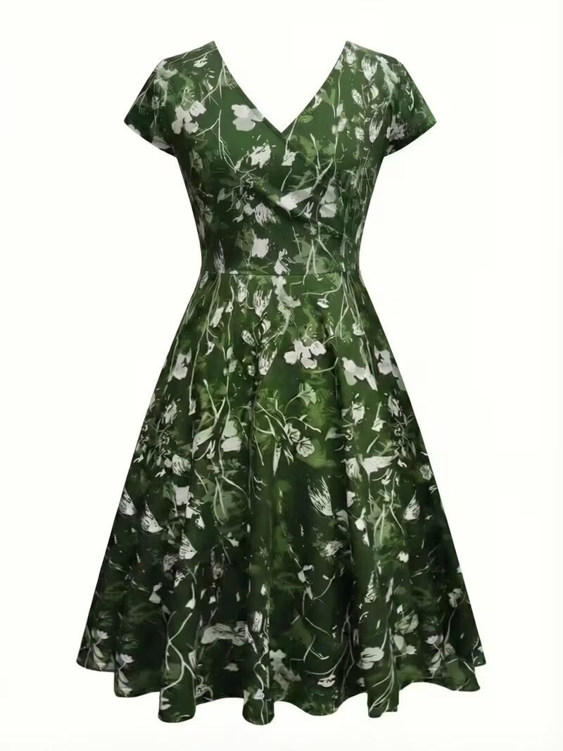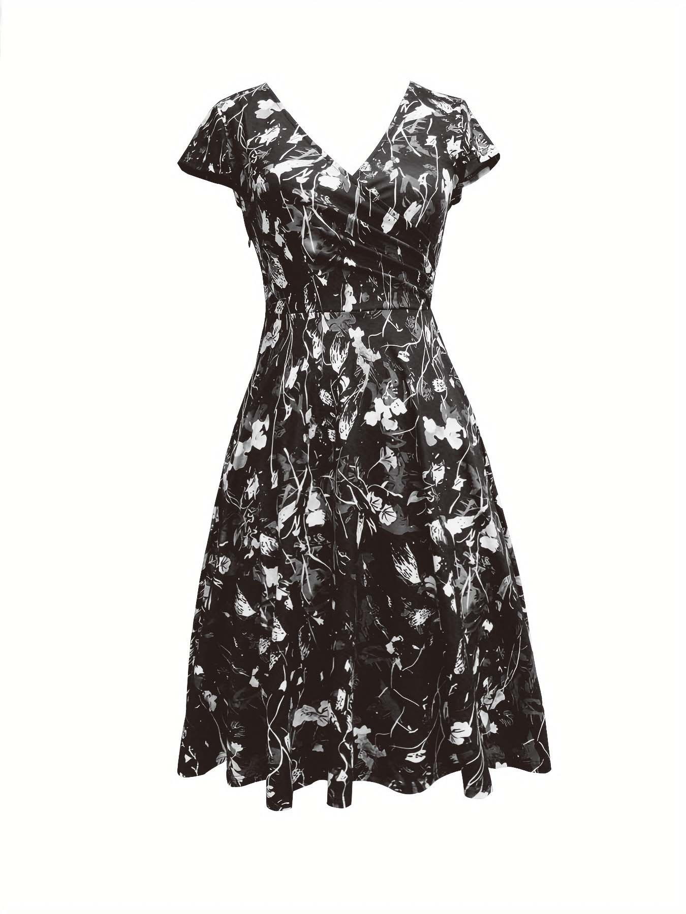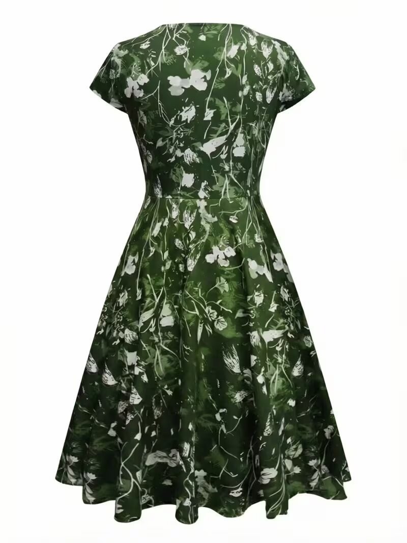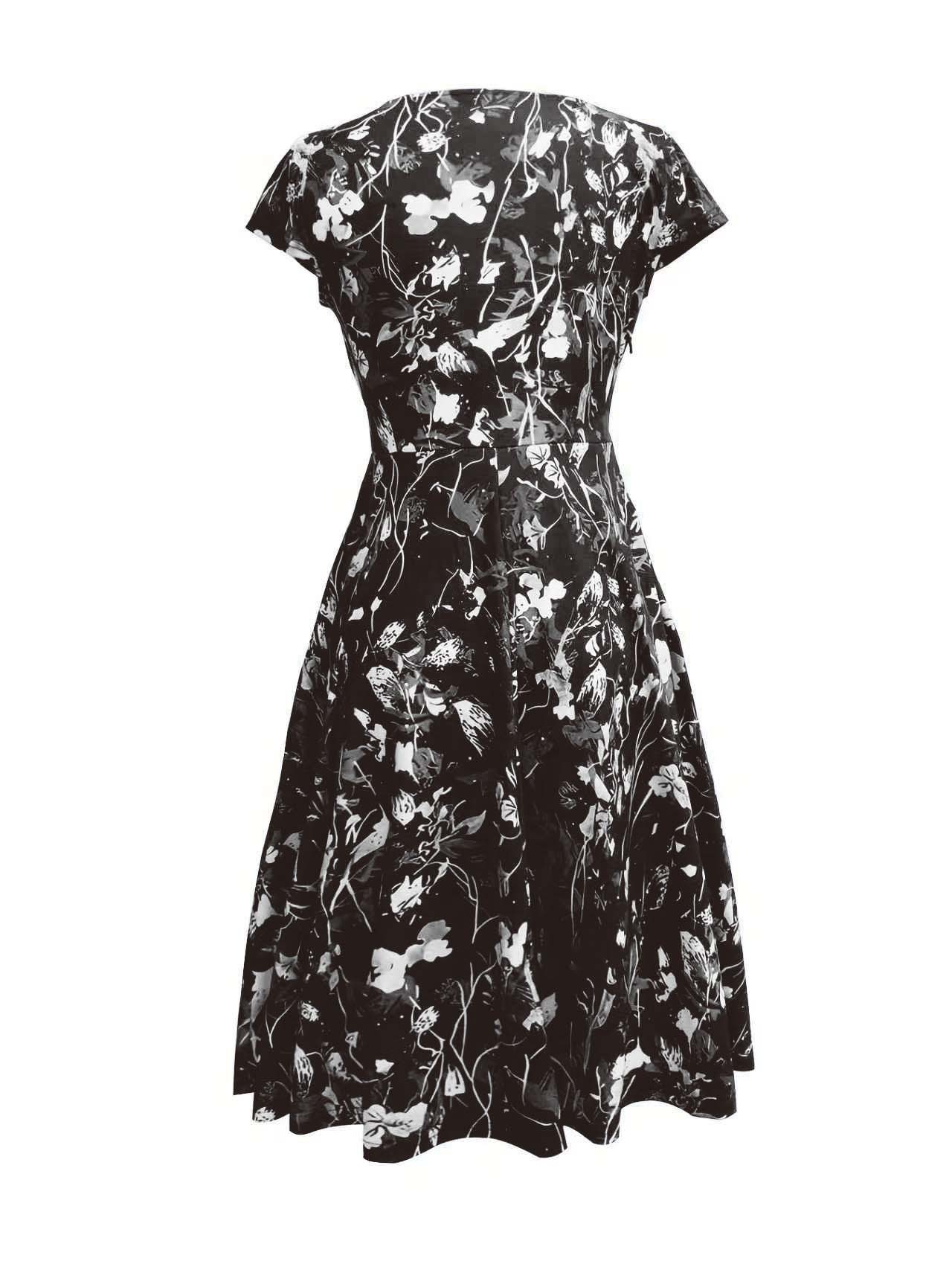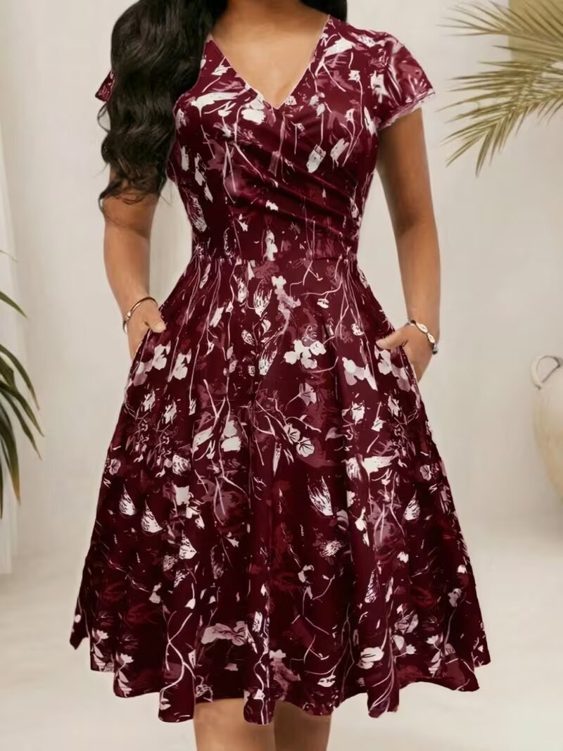 유럽과 미국의 아마존 새로운 여름 새로운 라운드 넥 포켓 짧은 소매 인기있는 인쇄 긴 원피스 우아한 원피스