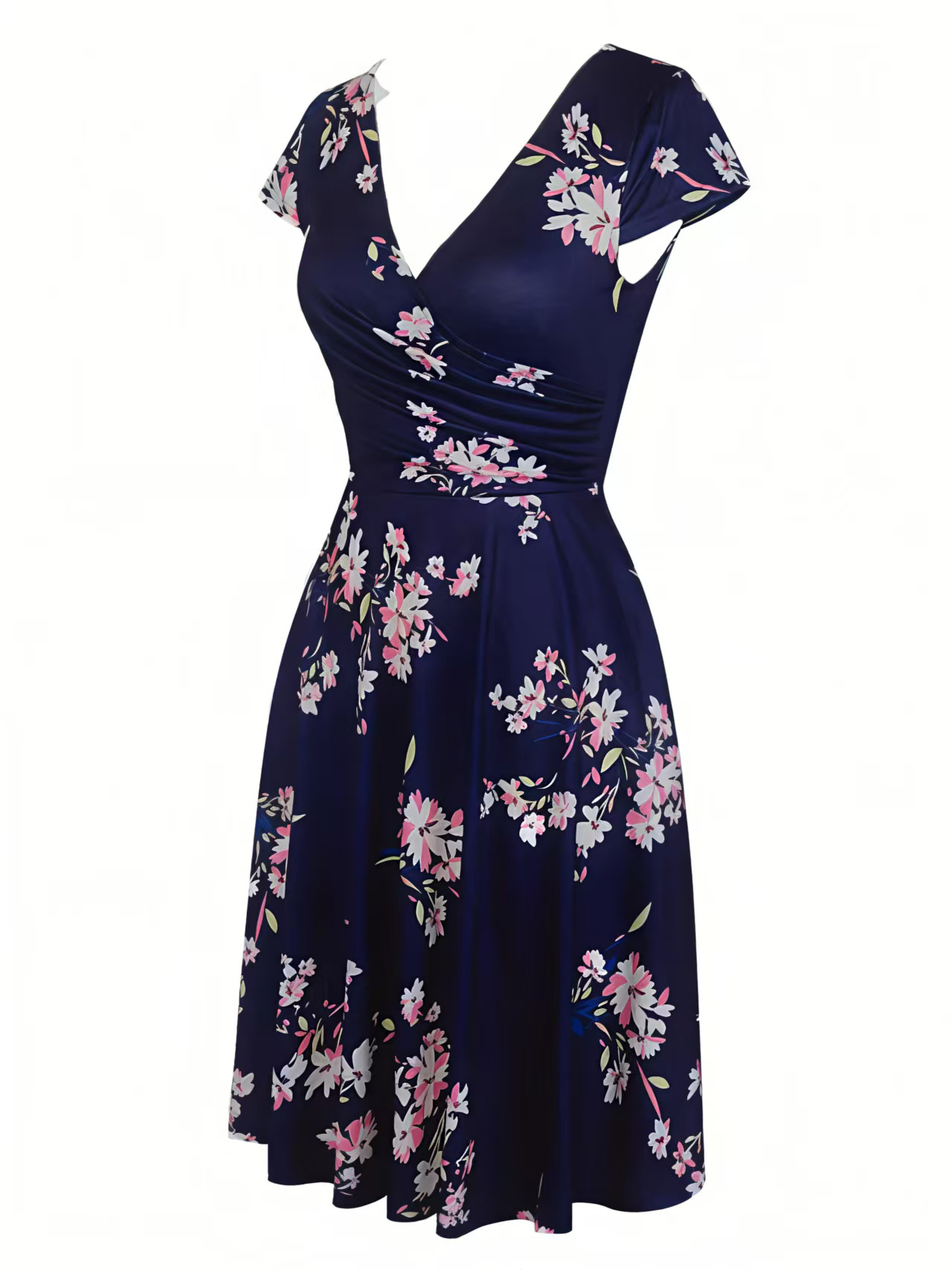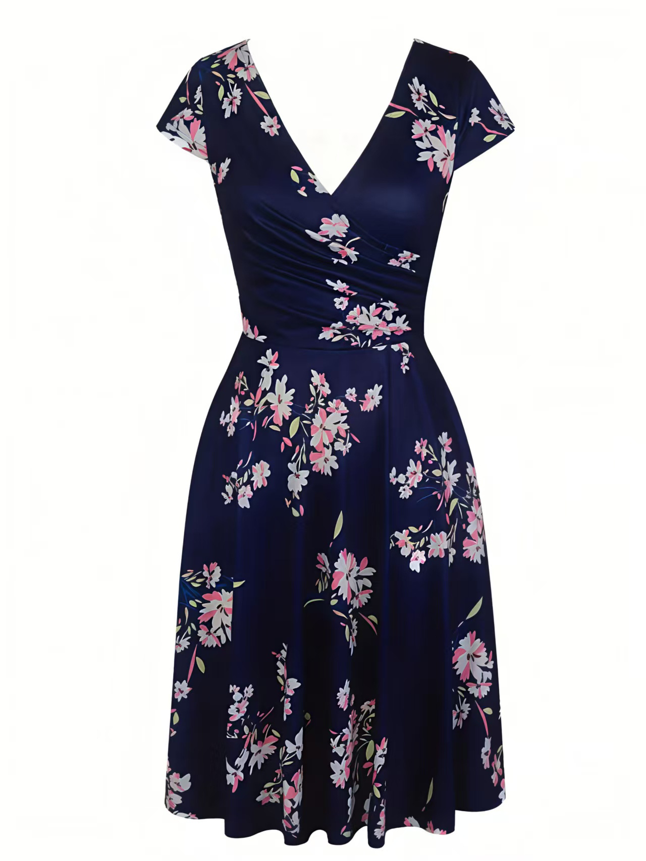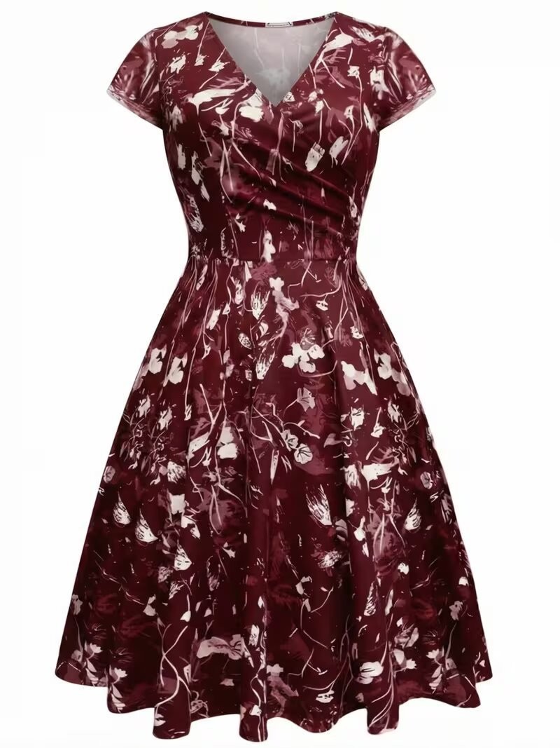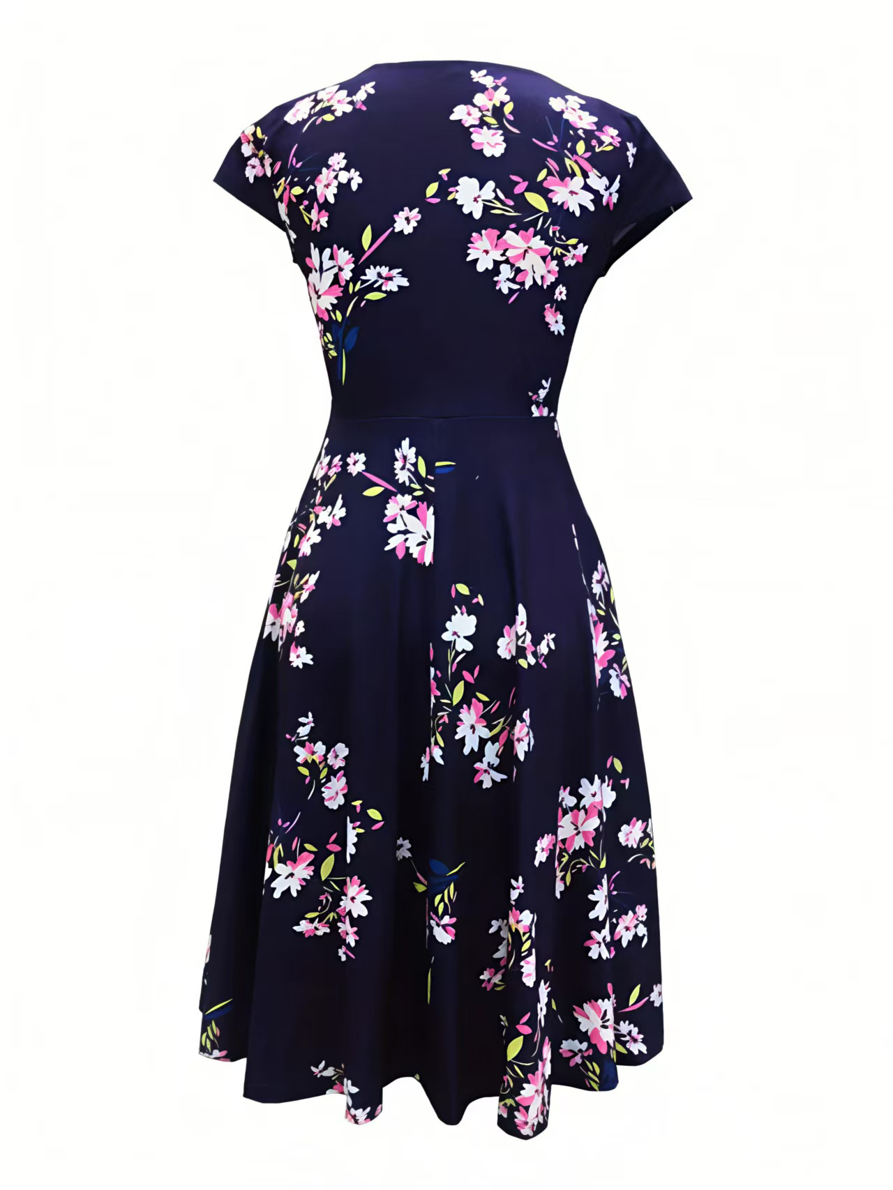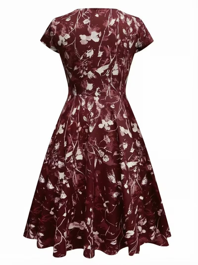 유럽과 미국의 아마존 새로운 여름 새로운 라운드 넥 포켓 짧은 소매 인기있는 인쇄 긴 원피스 우아한 원피스