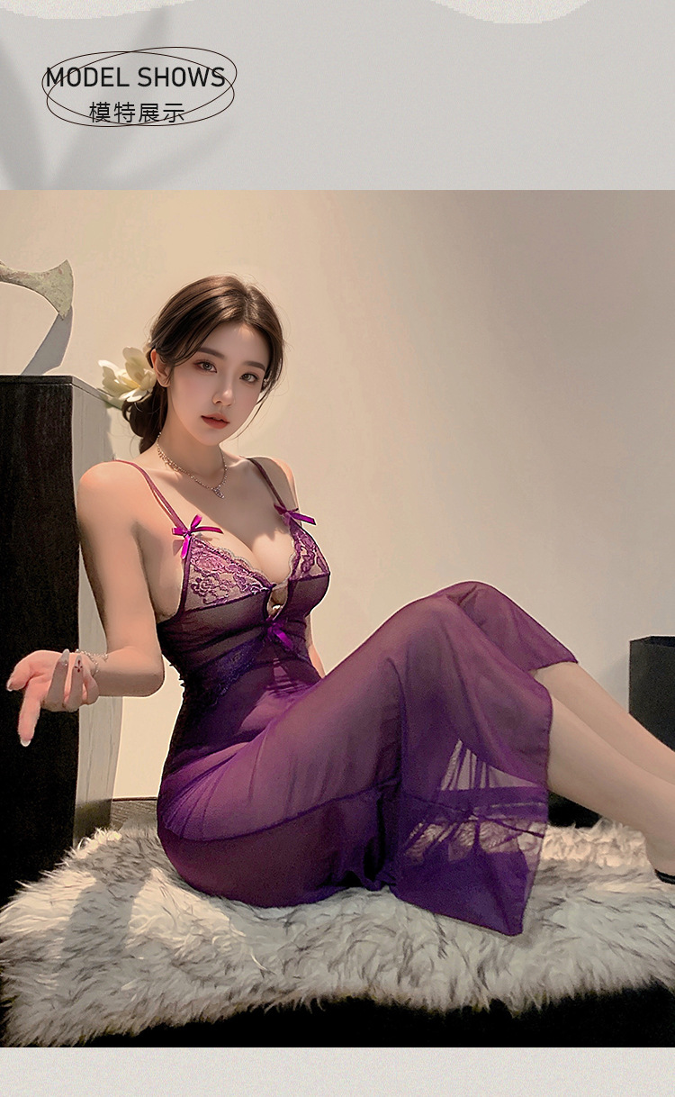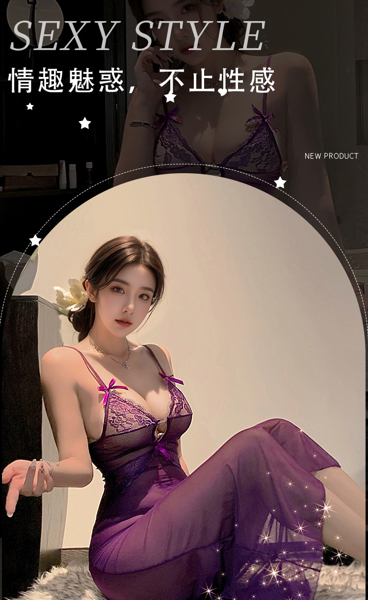 ◆향기로운 여성의 향기◆보라색 [잠옷+T바지+검은망사스타킹]
