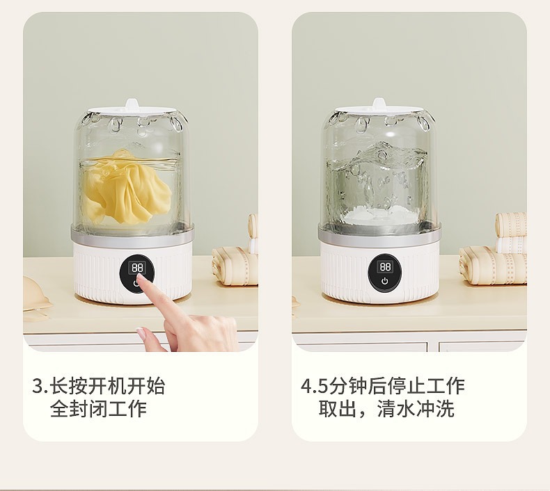 새로운 푸른 빛 살균 무선 휴대용 미니 세탁기 아기 속옷 양말 팬티 자동 세탁기