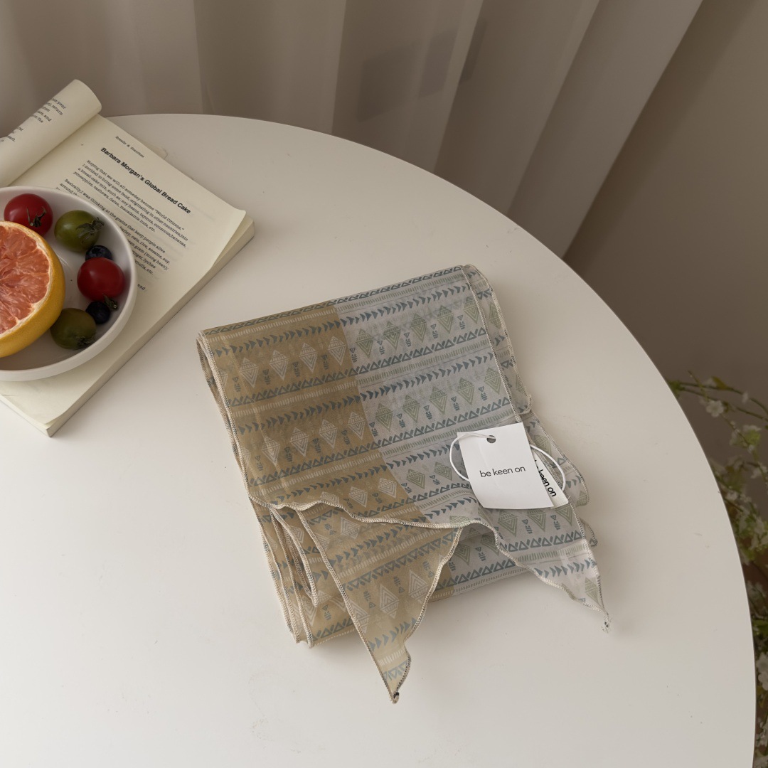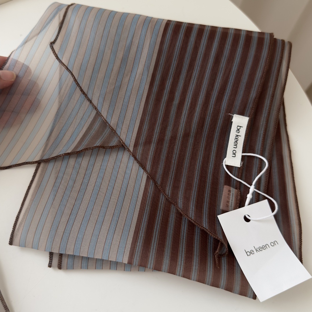 일본식 오간자 줄무늬 날씬한 스카프 여성의 2025 새로운 하이 엔드 센스 레트로 긴 스카프 목 착용
