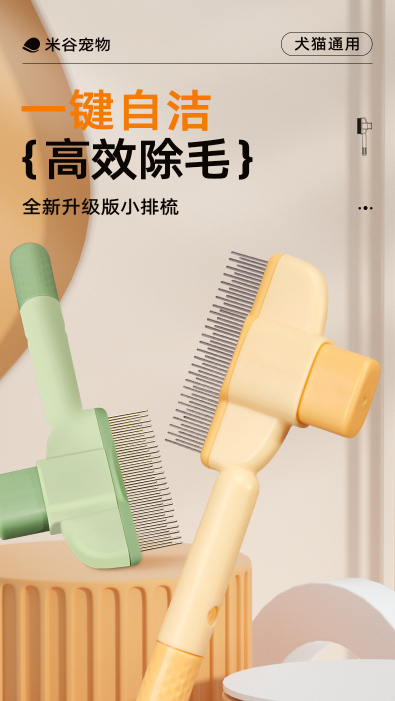 빗과 갈퀴 겸용 자가 청소 빗 [노란색]