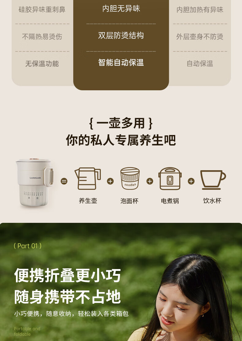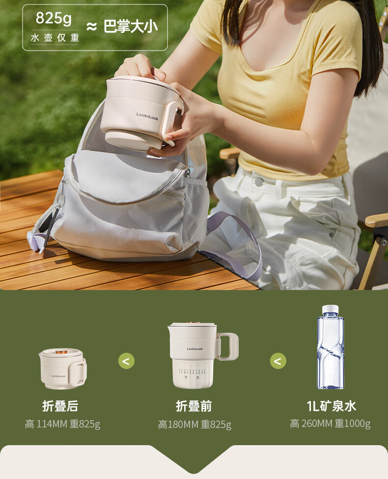 Le 버클 접이식 주전자 0.8L 휴대용 주전자 야외 전기 주전자 여행 불타는 물 컵 여행