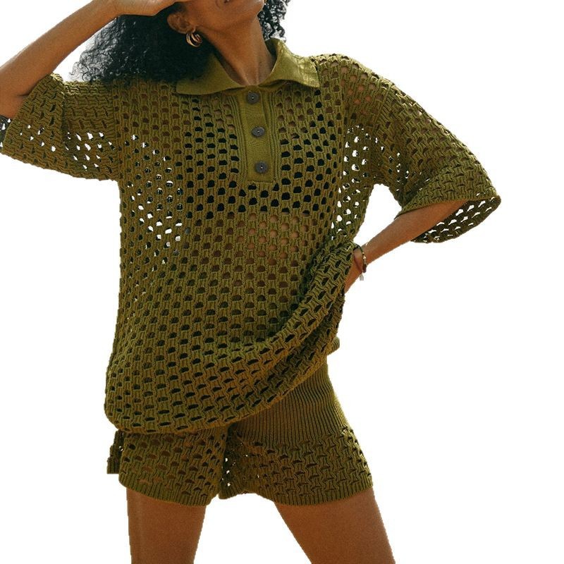유럽과 미국의 봄과 여름 여성 스포츠 레저 세트 아마존 핫 뉴 니트 셔츠 반바지 투피스 세트