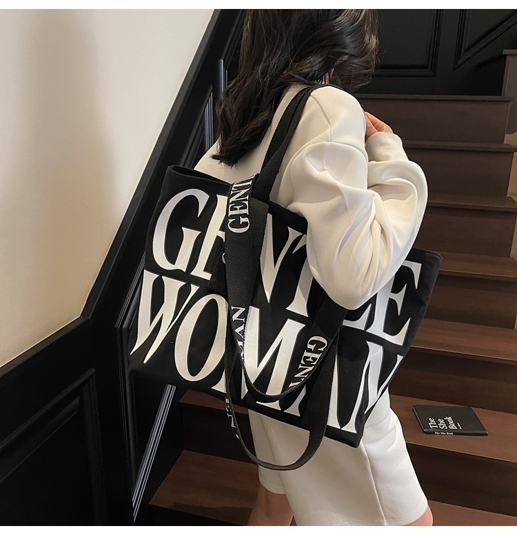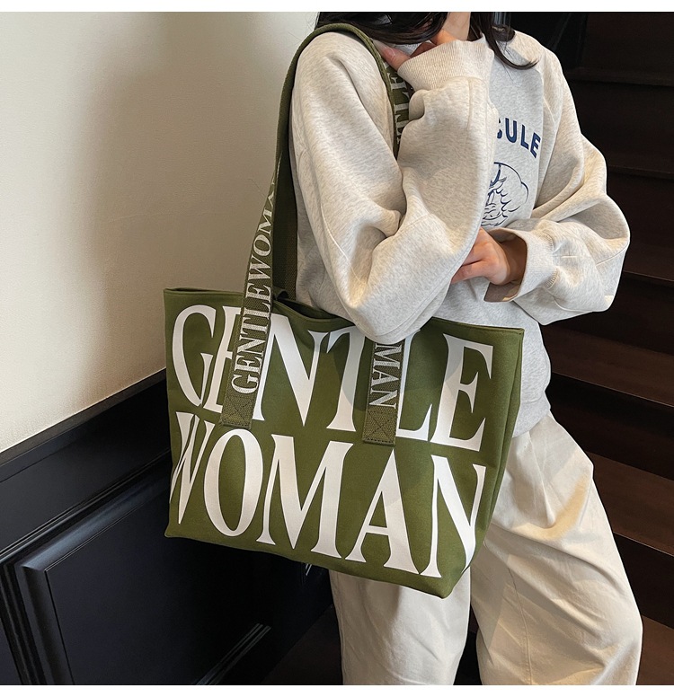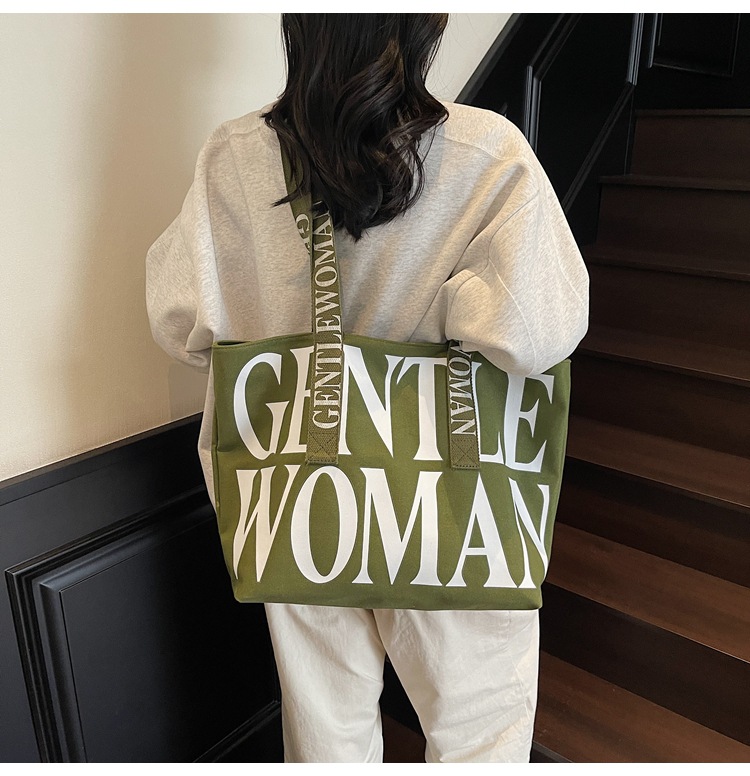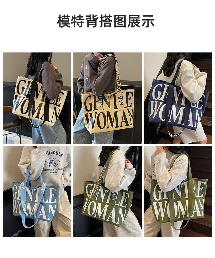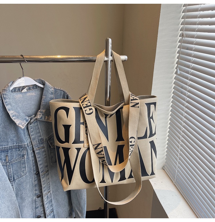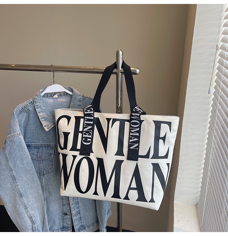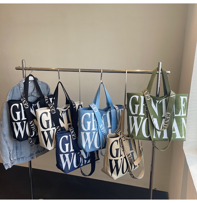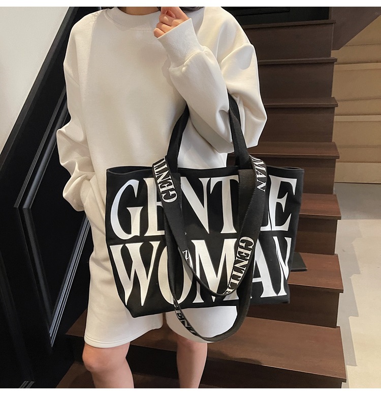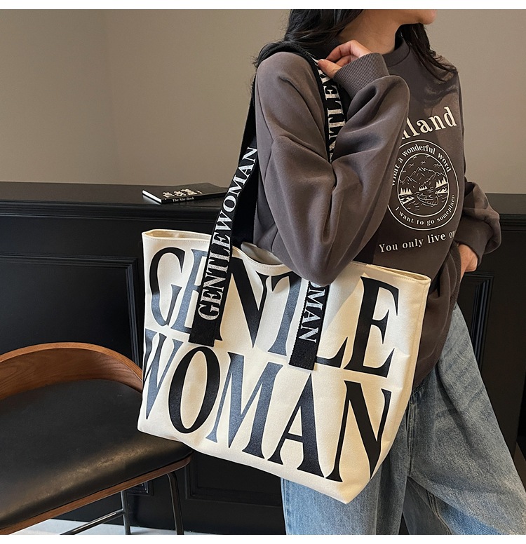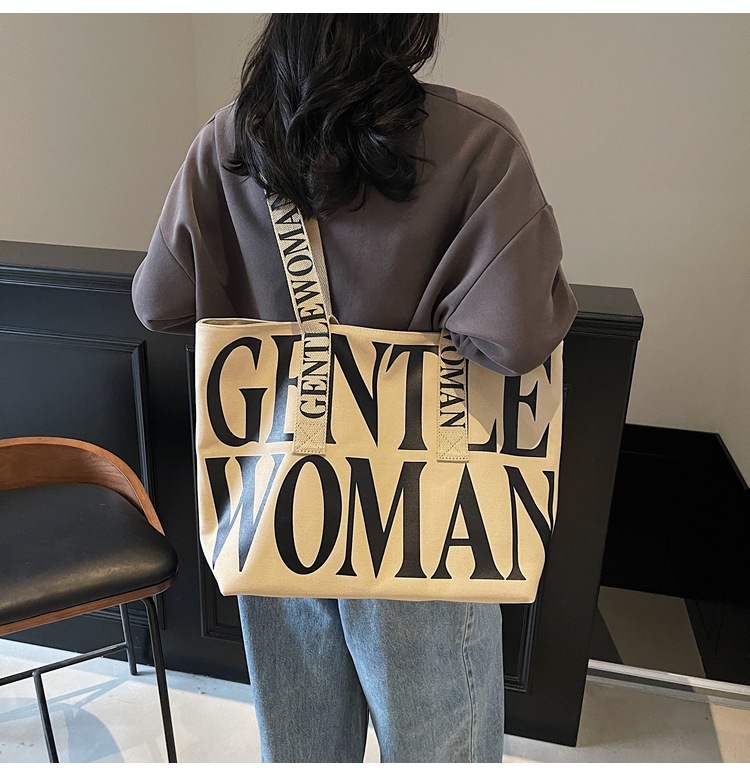 GentleWoman 더블 숄더 스트랩 대용량 클래식 편지 캔버스 가방 2025 여성을위한 새로운 패션 숄더 백