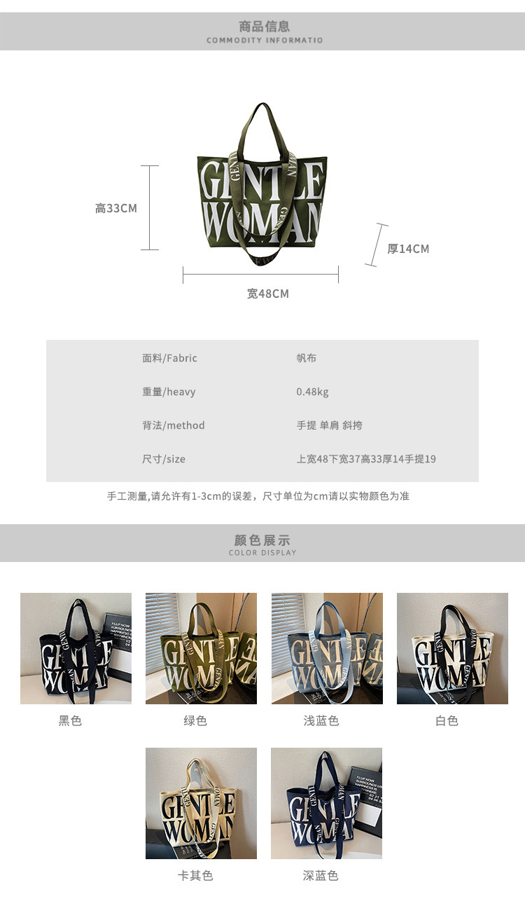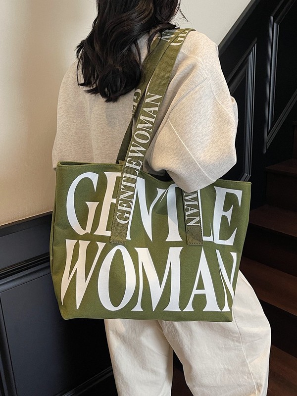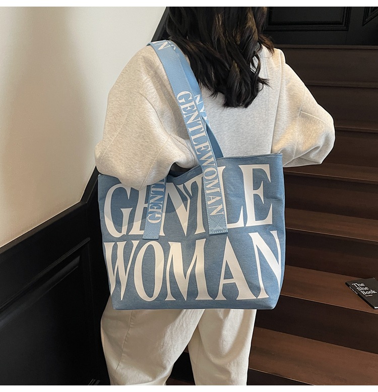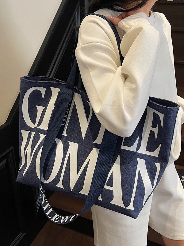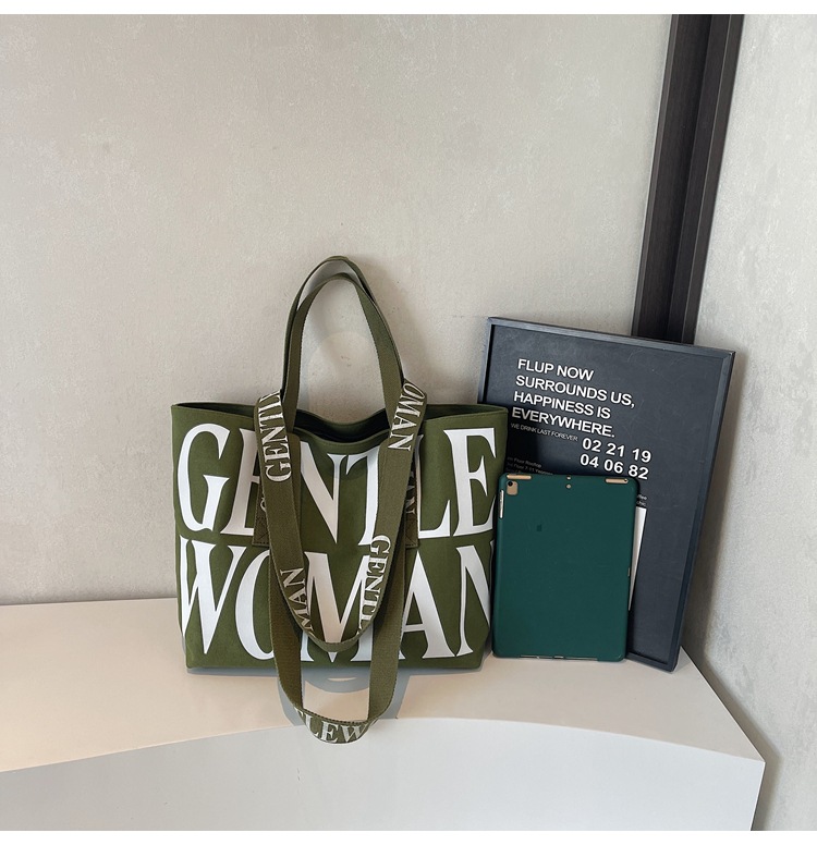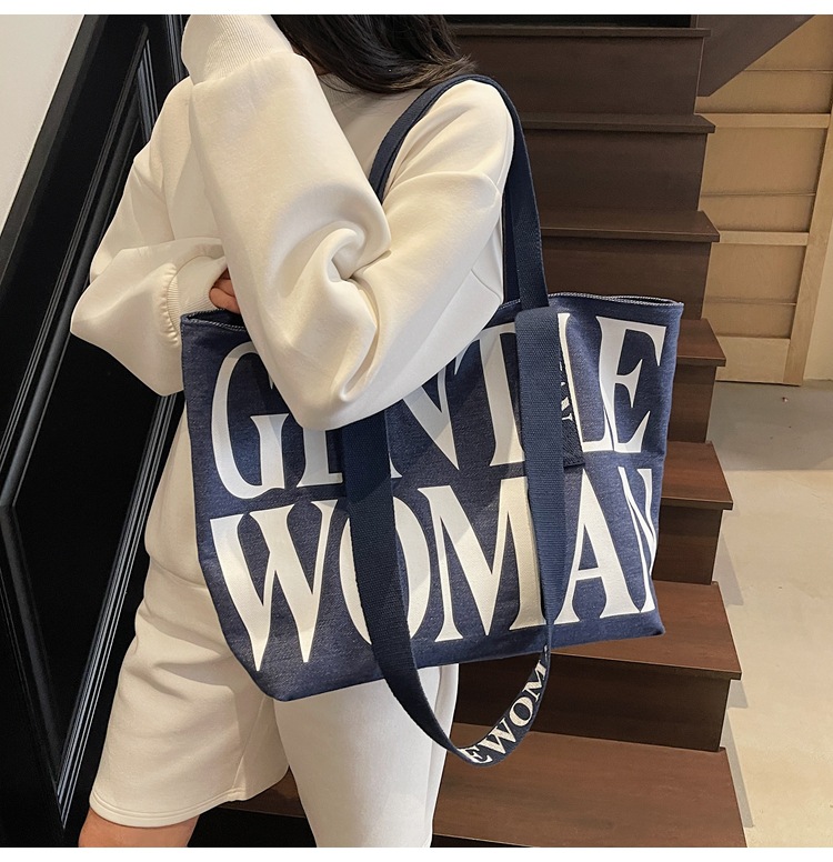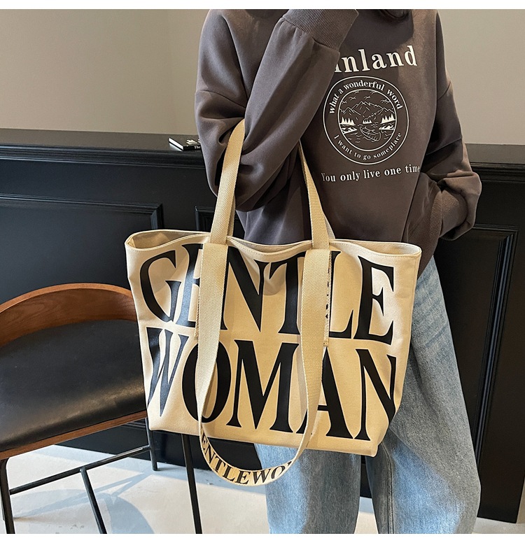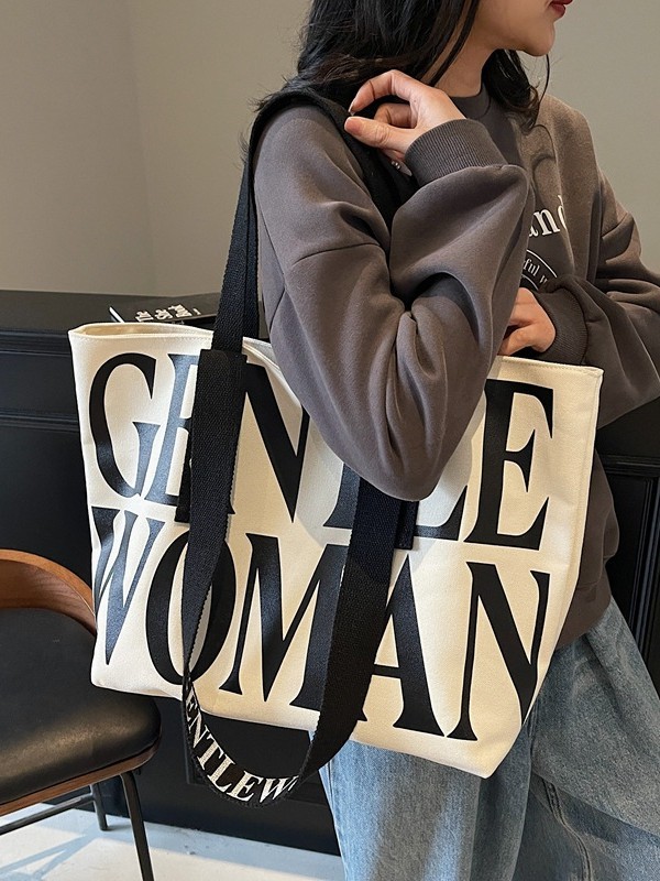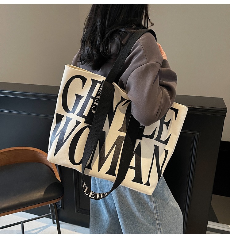 GentleWoman 더블 숄더 스트랩 대용량 클래식 편지 캔버스 가방 2025 여성을위한 새로운 패션 숄더 백