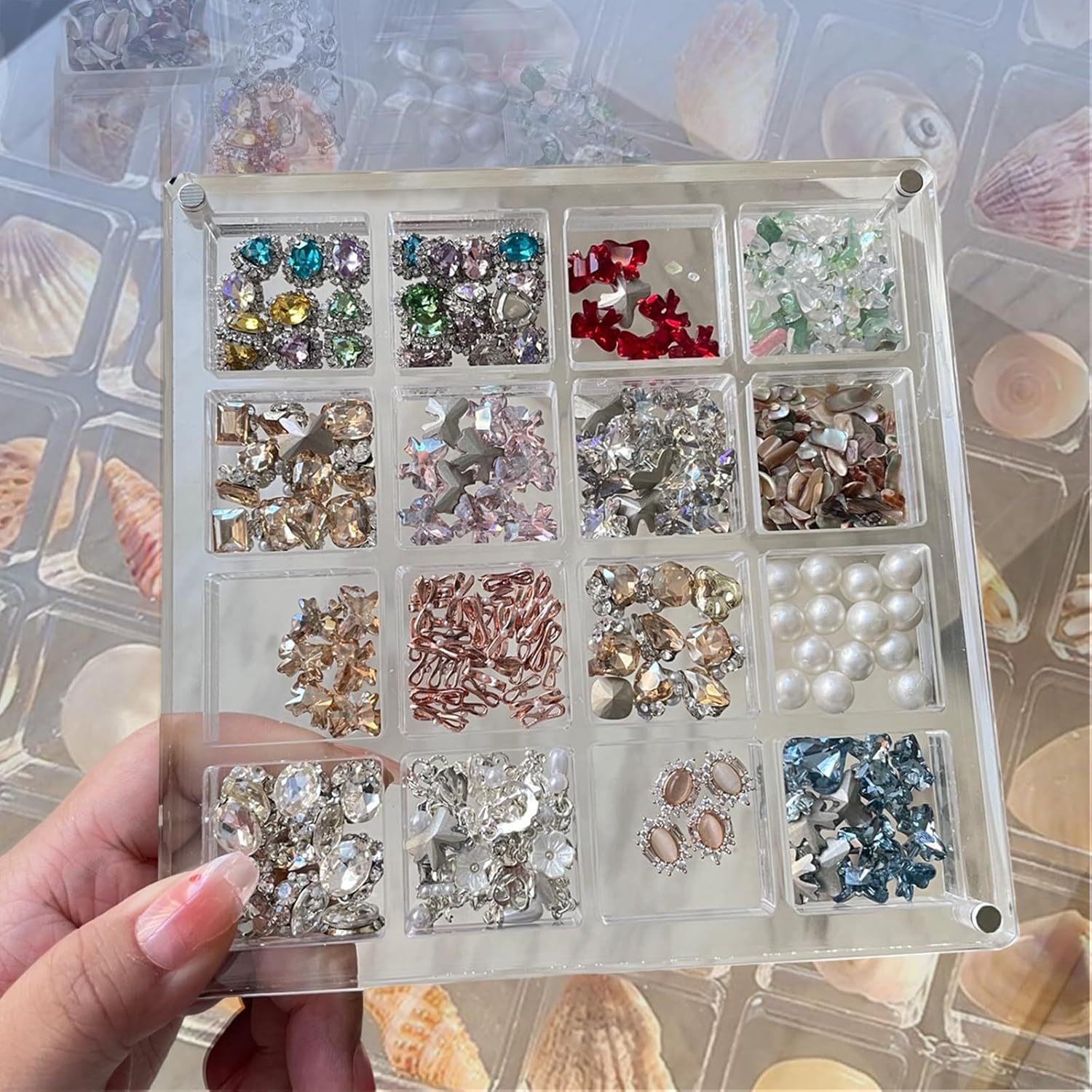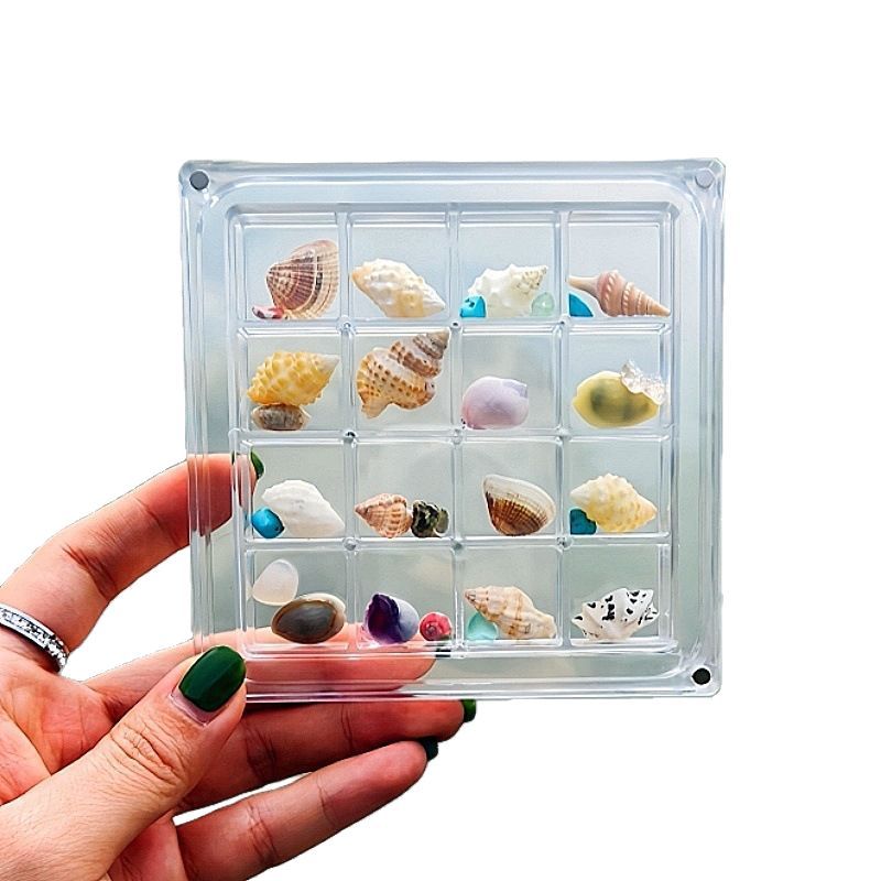 16칸 투명 조개 보관함 해변 돌 표본 수집 강력 자석 탁상용 보석 아크릴 디스플레이 박스