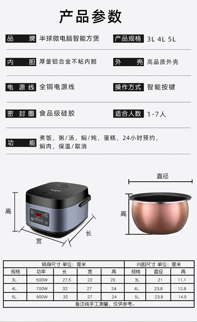 2~4인용 가정용 양반구형 밥솥 미니 스마트 소형 3L 다기능 5리터 밥솥 기숙사