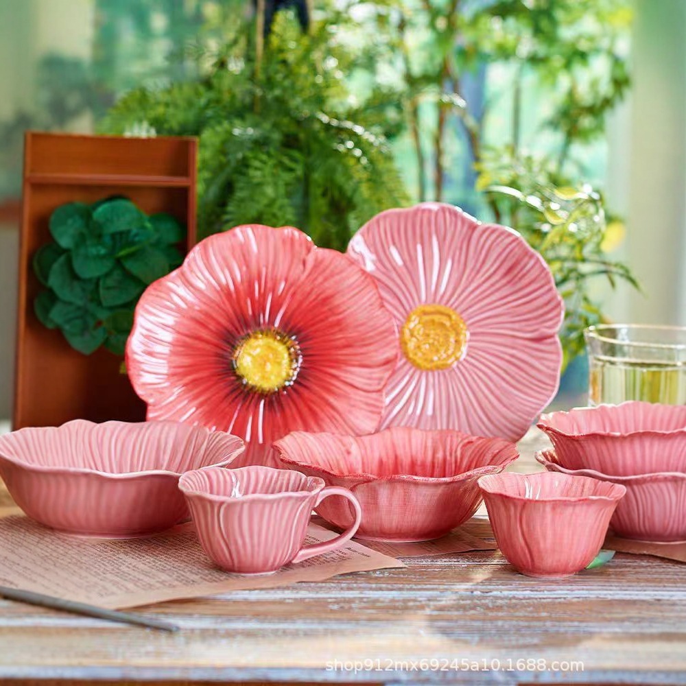가벼운 고급 유약 컬러 손으로 그린 세라믹 식기 스테이크 플레이트 인스턴트 국수 그릇 깊은 수프 플레이트 다이어트 쌀 그릇 야채 플레이트