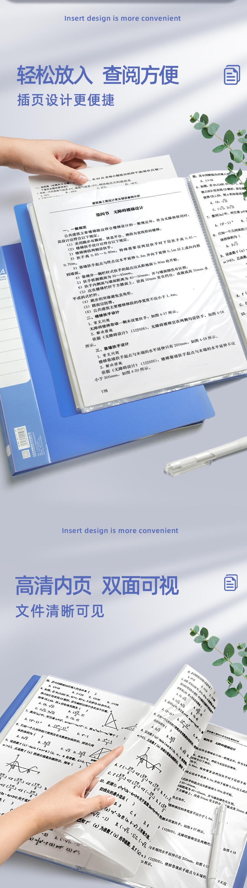 안내서 페이지네이션 오피스 블루 폴더 삽입 시트 투명 A4 인증서 산전 검진 정보 보관 도서 루스리프 폴더
