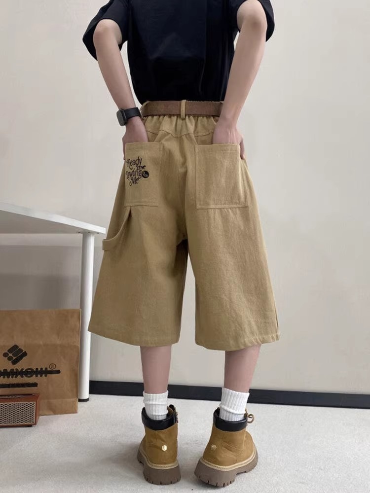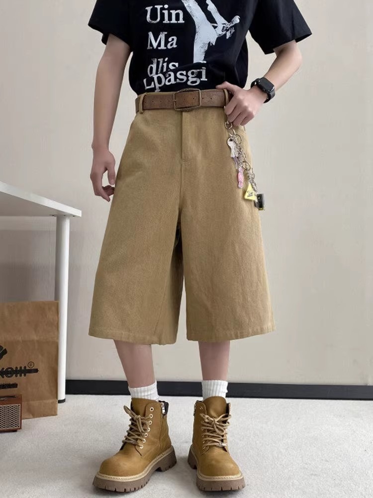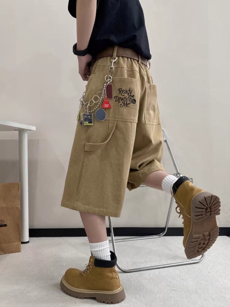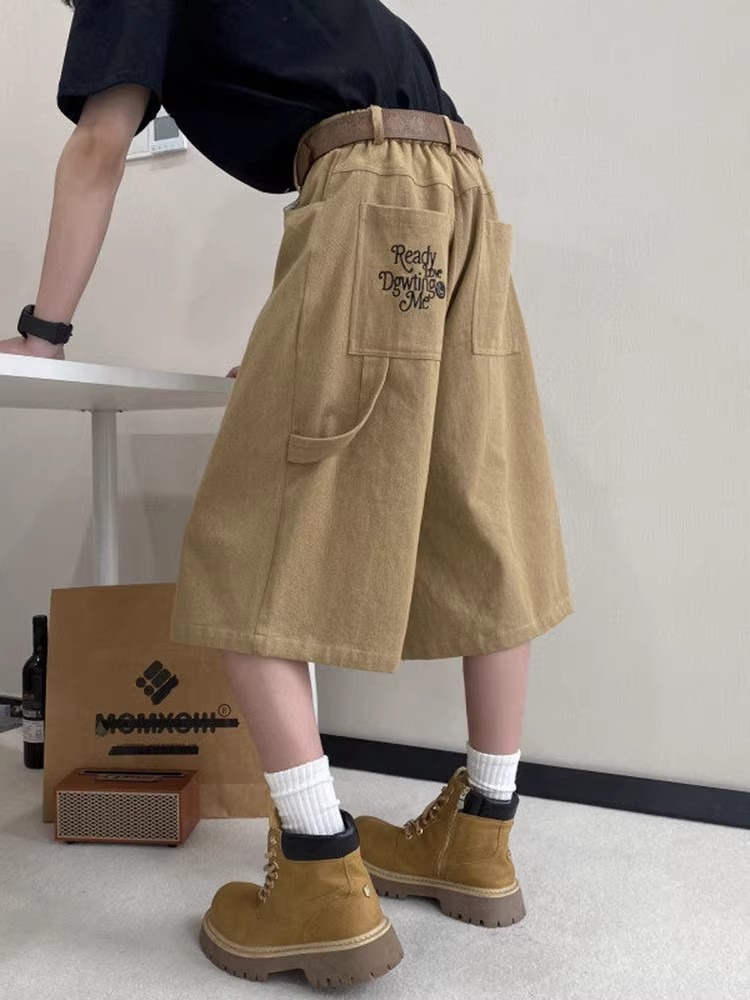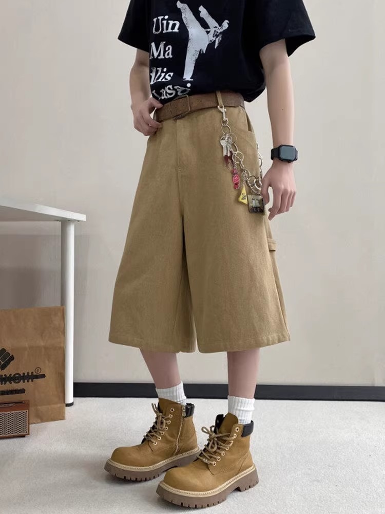 카키 툴링 자른 바지 남자 여름 아메리칸 스타일 하이 스트리트 스트레이트 반바지 트렌디 브랜드 십대 와이드 레그 오버 더 무릎 바지