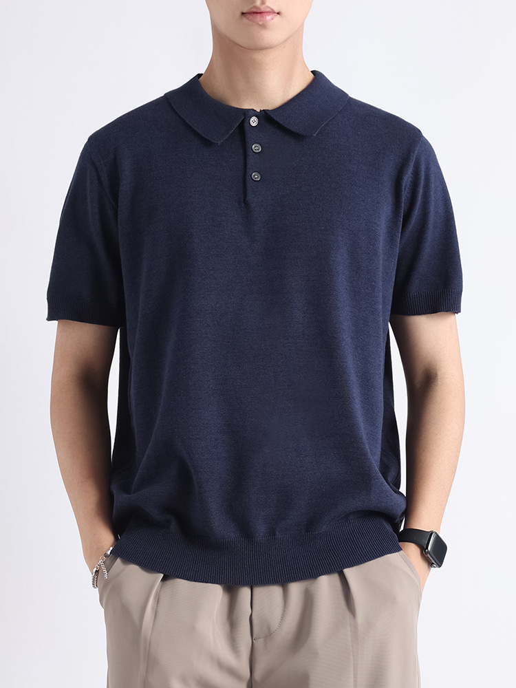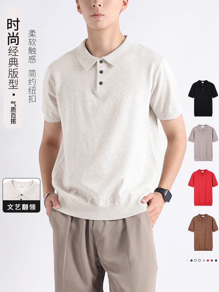 올드 머니 스타일 남성복 라이트 럭셔리 고급 반팔 폴로 셔츠 남성용 비즈니스 캐주얼 폴로 니트 스웨터