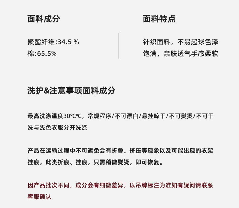 면 66.5%, 폴리에스터 33.5%