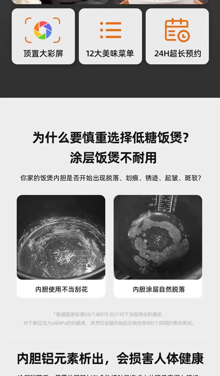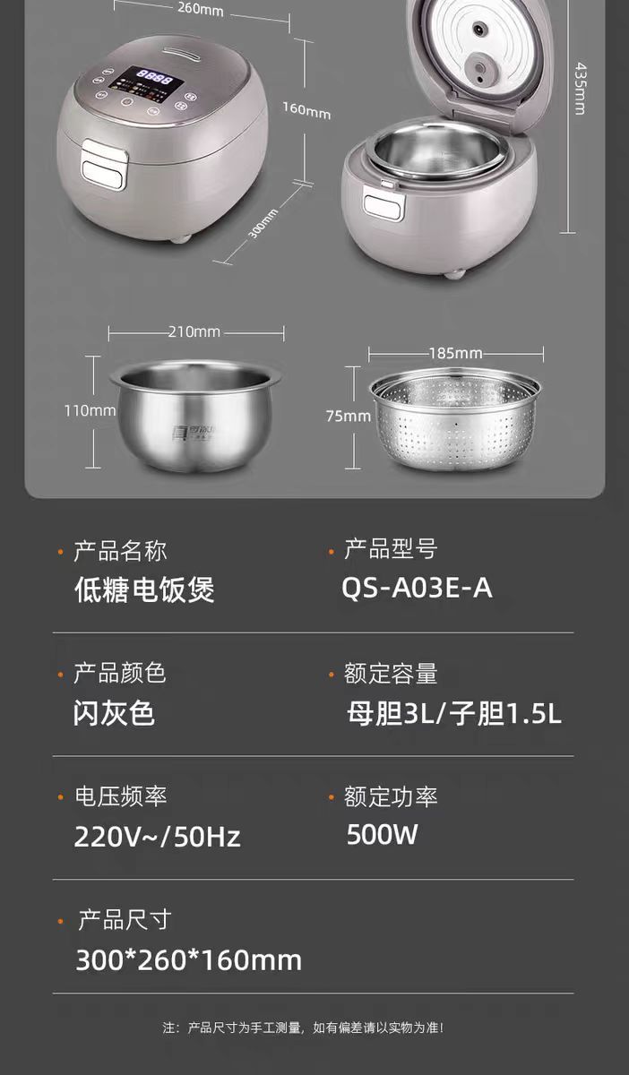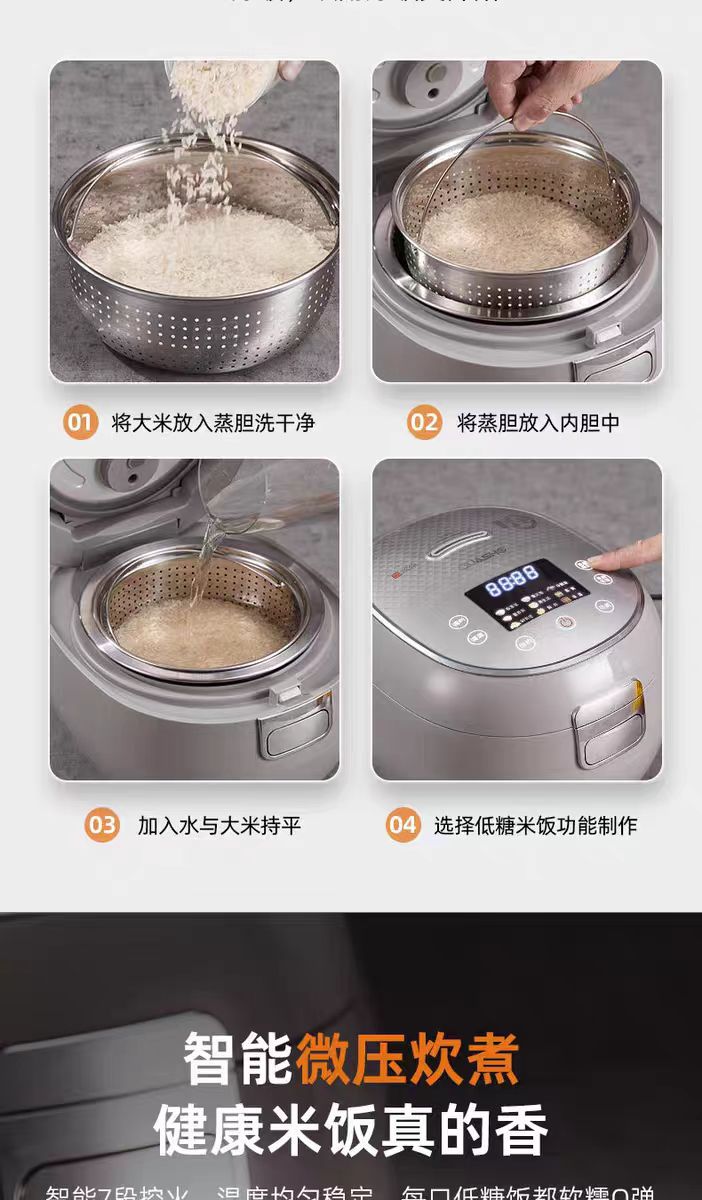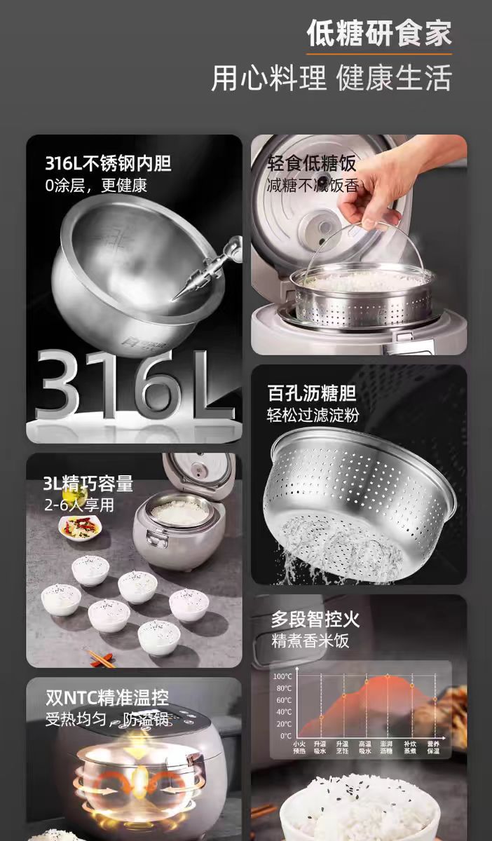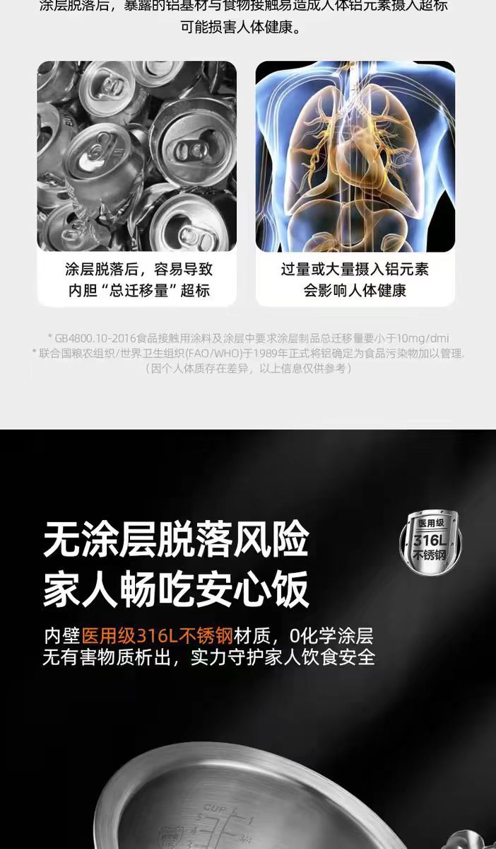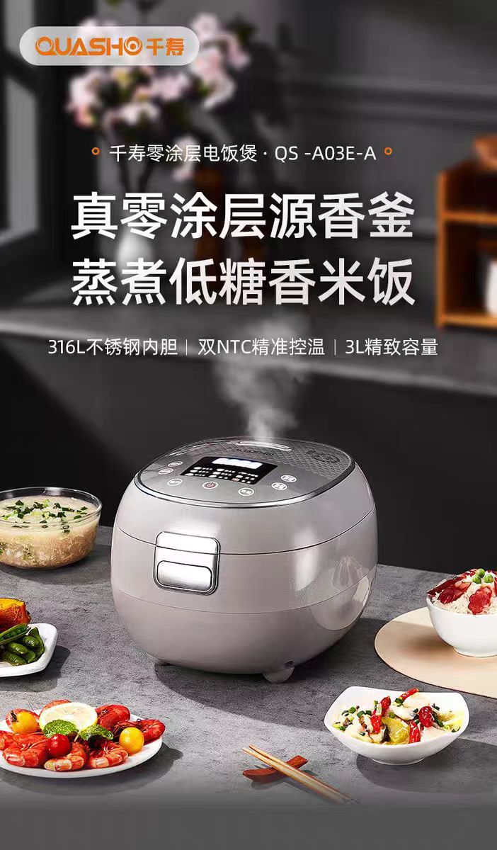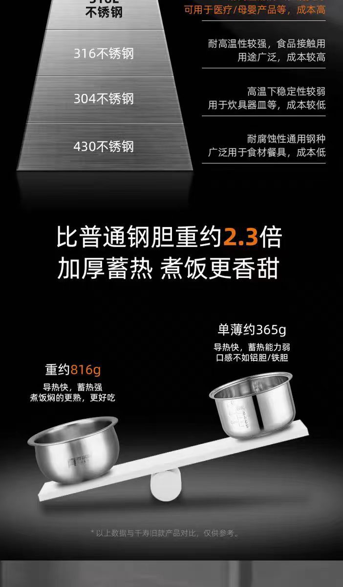 천수 전기밥솥 무코팅 316 스테인리스 다기능 3L 전기밥솥 가정용 분리형 스팀