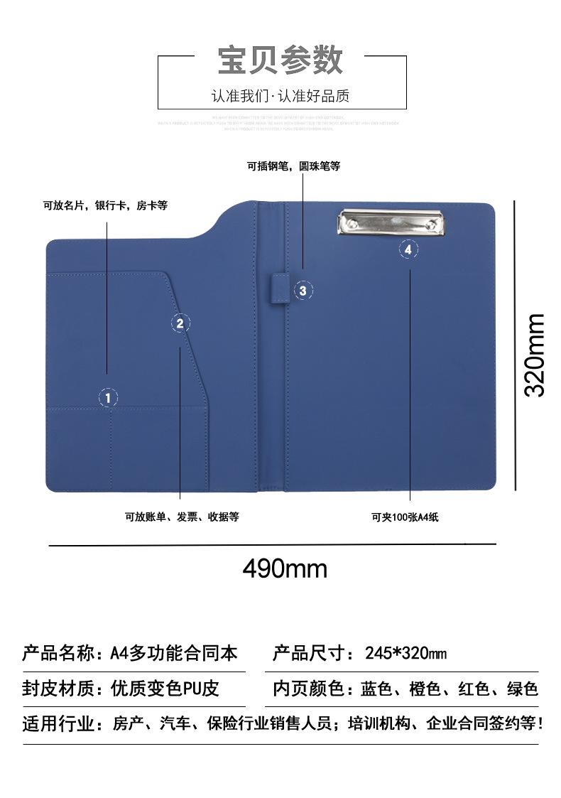 A4 다기능 데이터 비서 폴더 연구소 테스트 종이 폴더 사무용품 계약 폴더