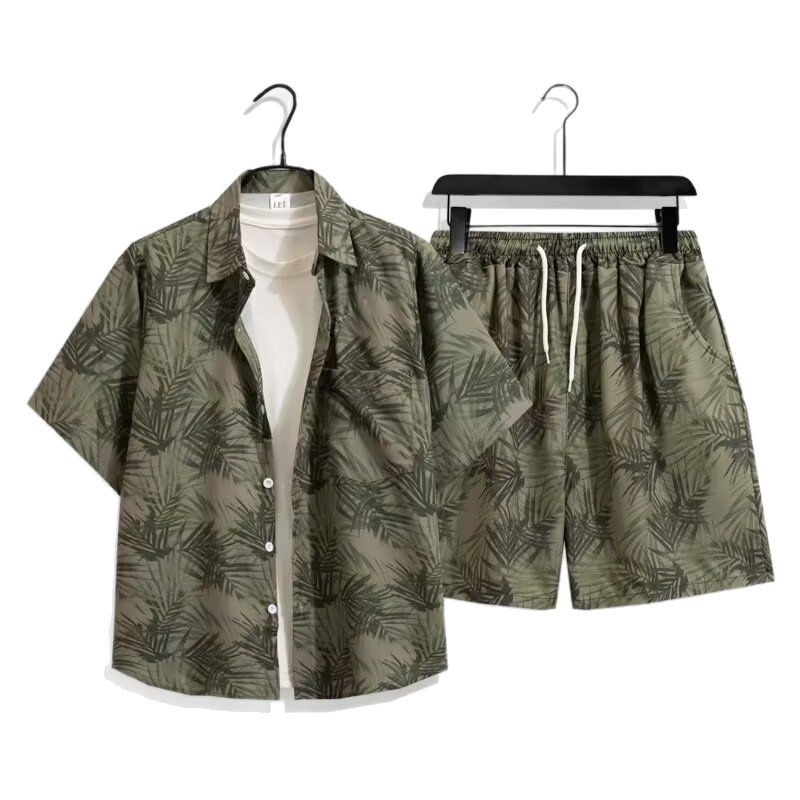 태국 꽃 셔츠 반바지 정장 남자 하와이 해변 반팔 셔츠 커플 착용 2025 새로운 여름 재킷