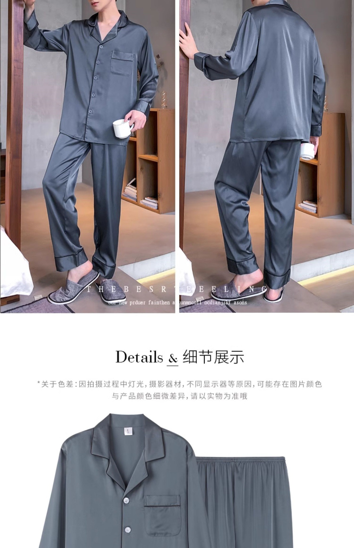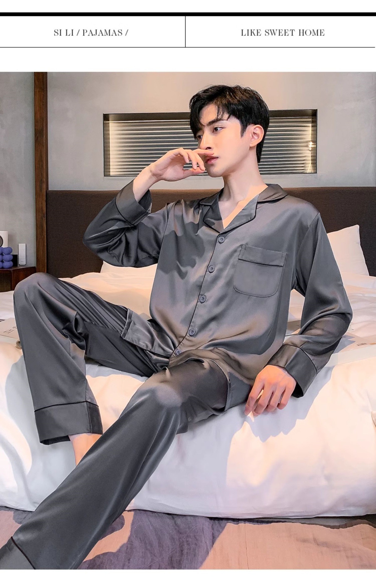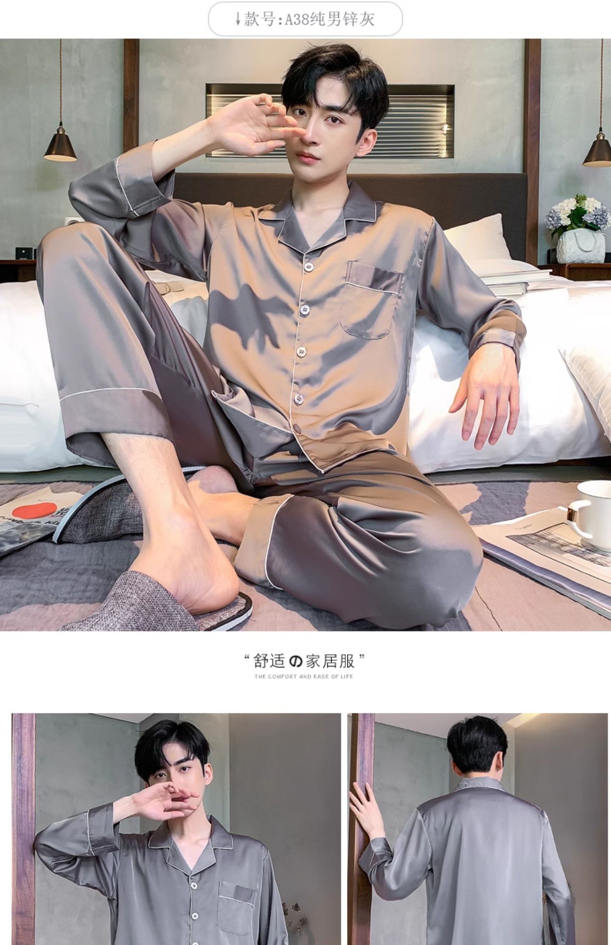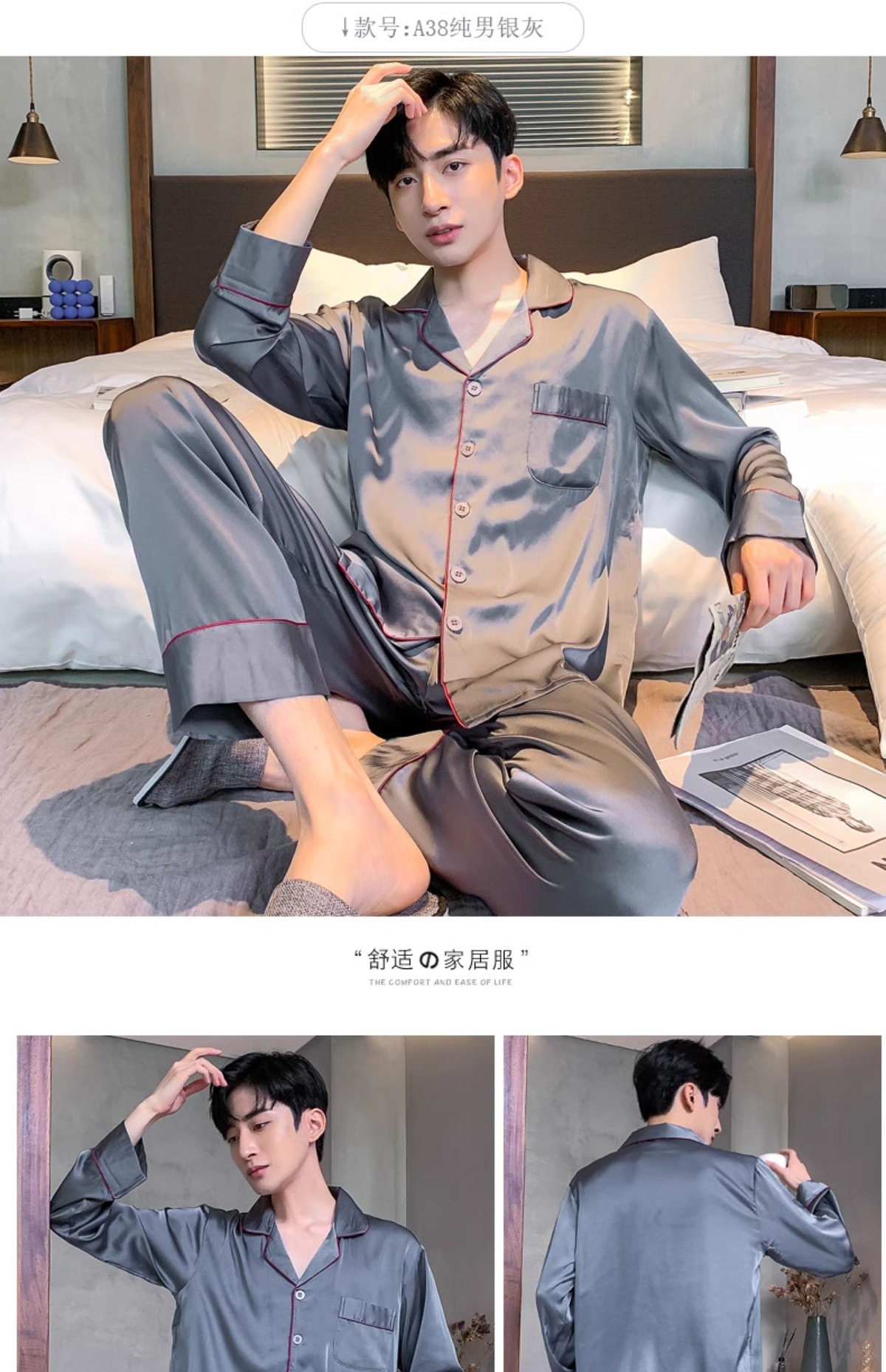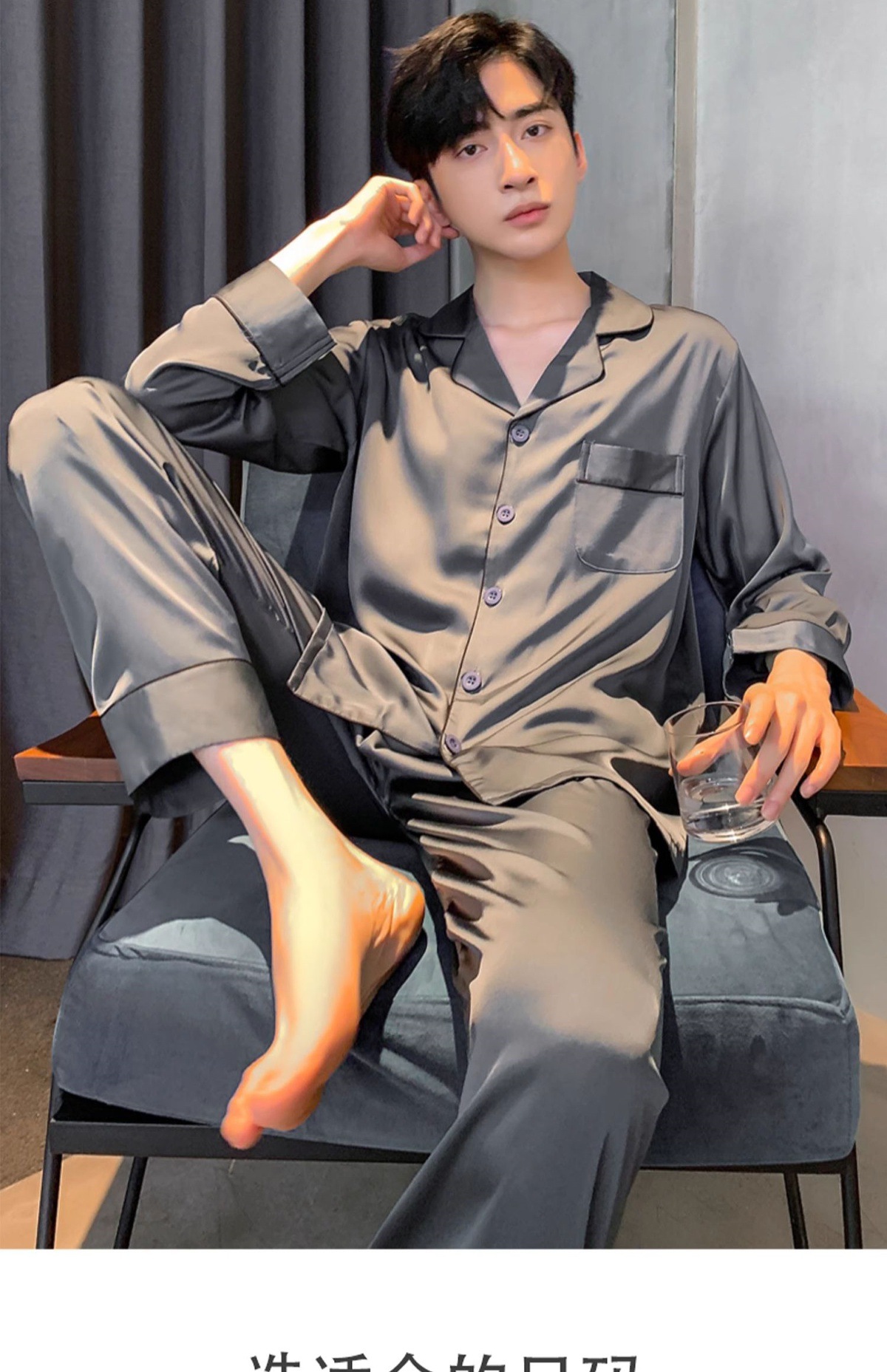 남성용 잠옷 봄 여름 긴팔 실크 아이스 실크 홈웨어 봄 가을 얇은 모조 실크 새틴 슈트