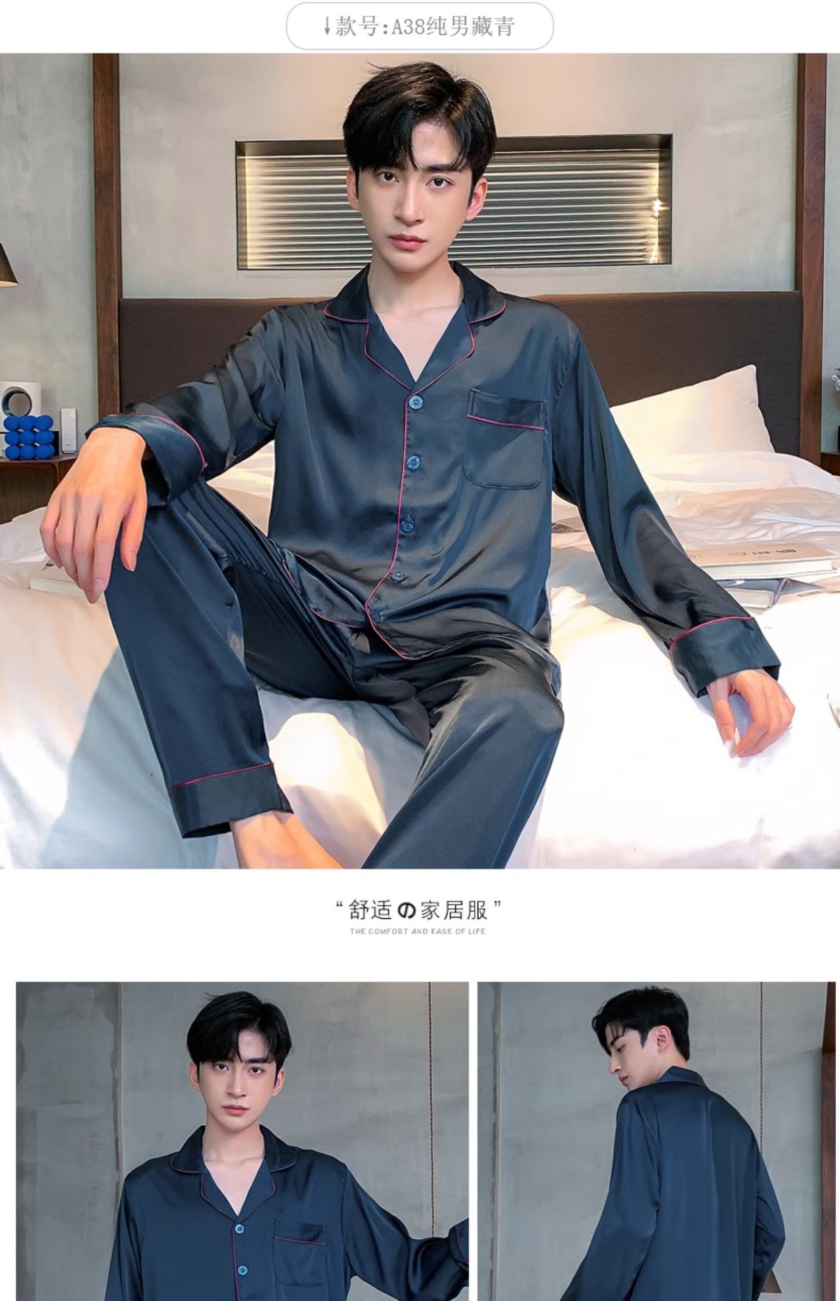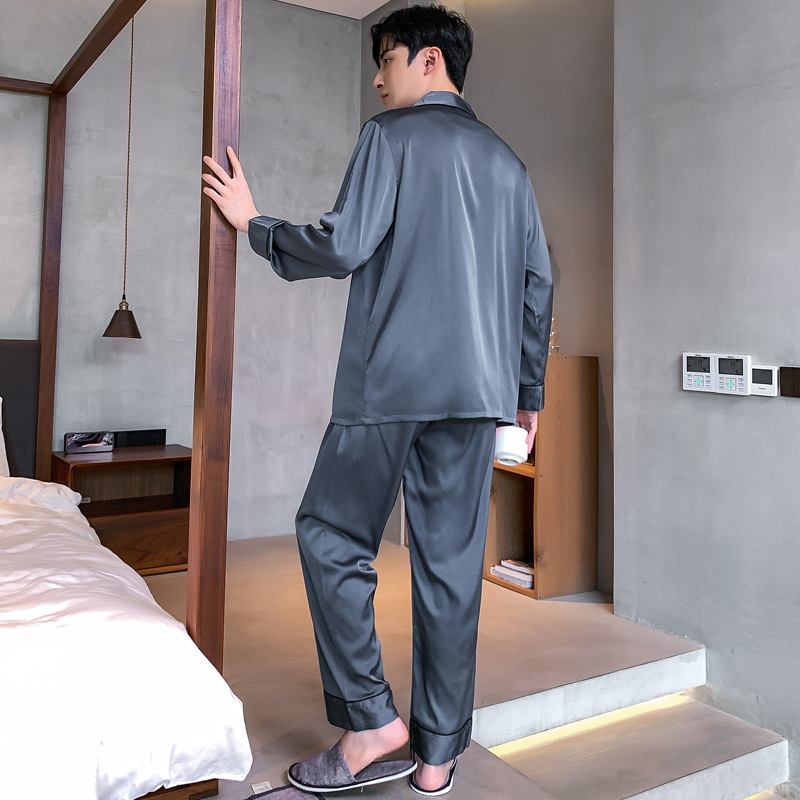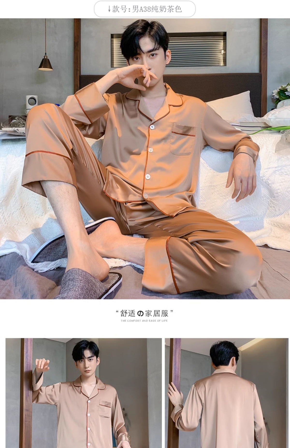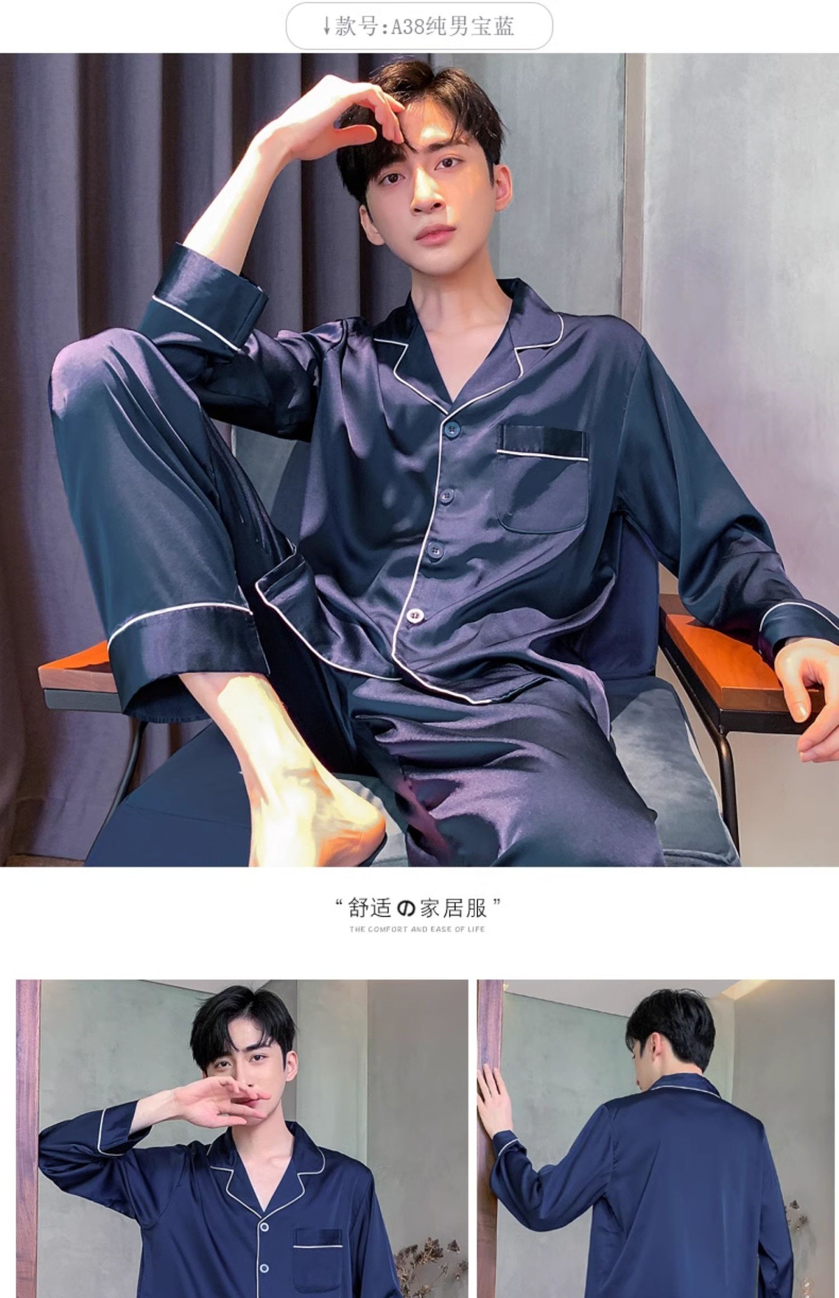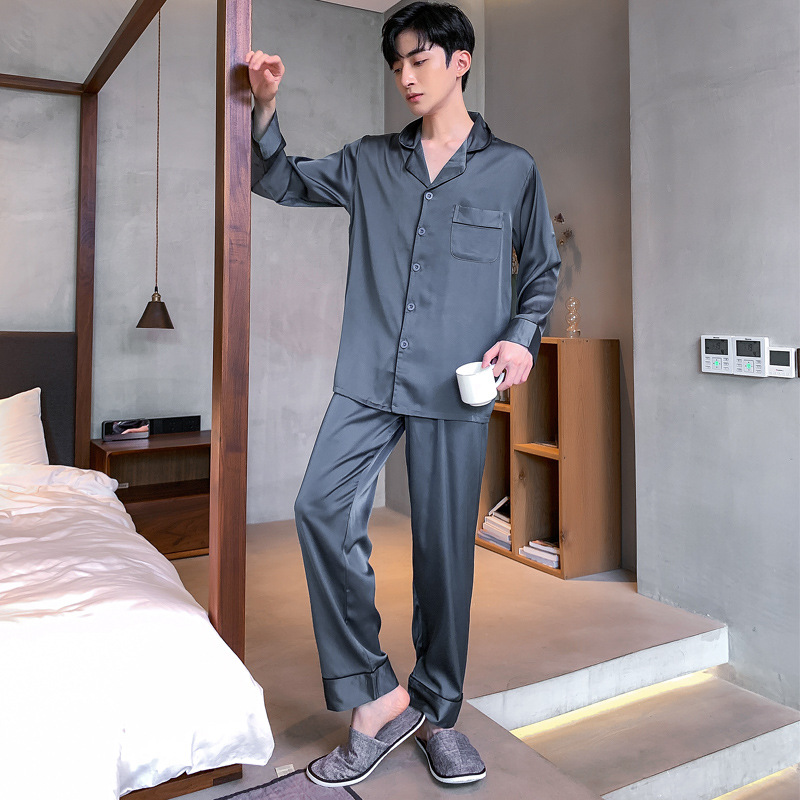 남성용 잠옷 봄 여름 긴팔 실크 아이스 실크 홈웨어 봄 가을 얇은 모조 실크 새틴 슈트