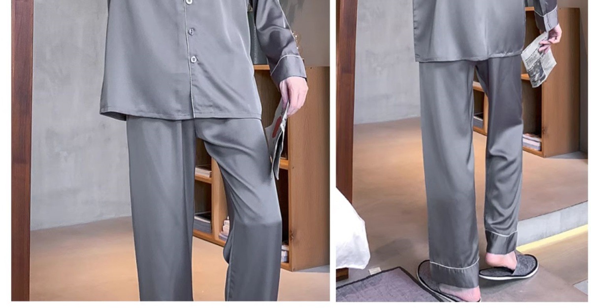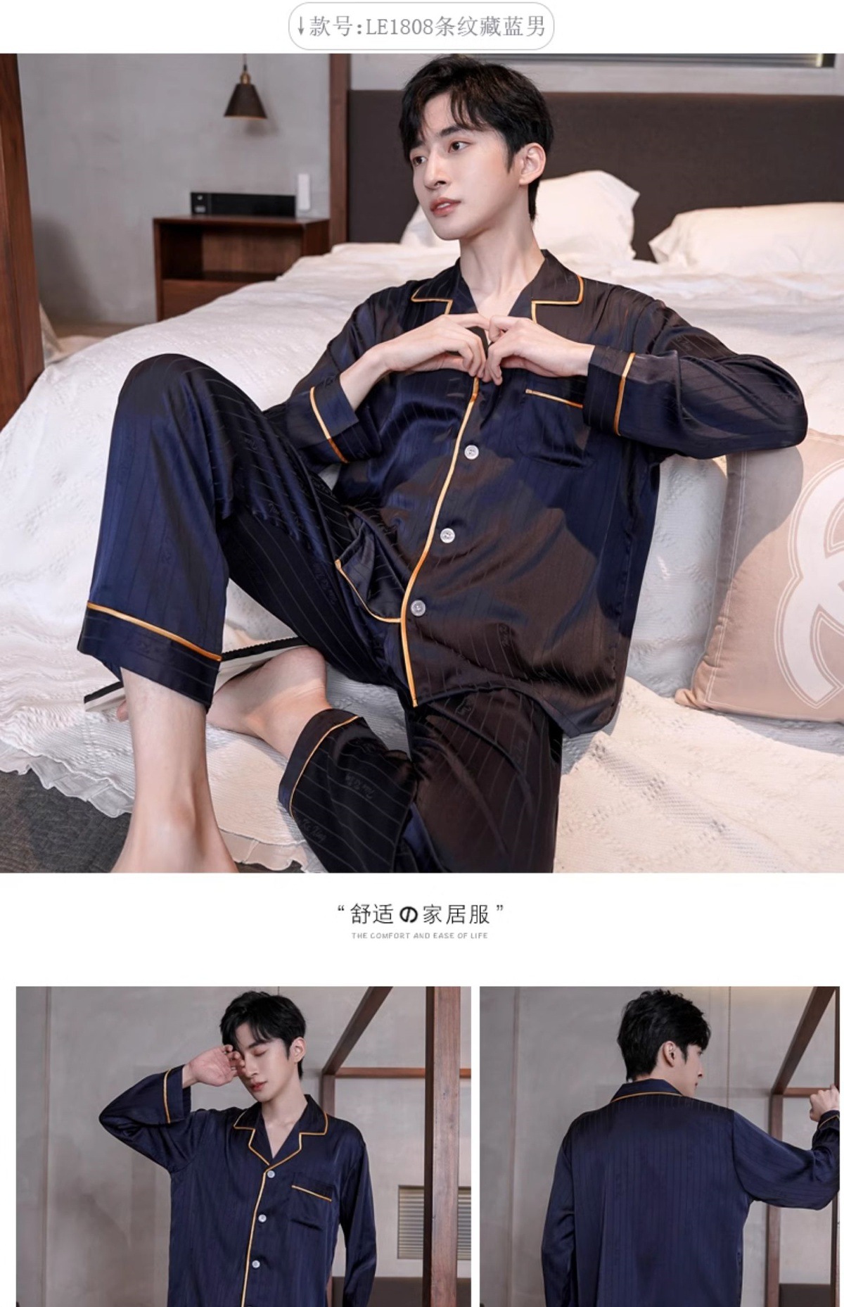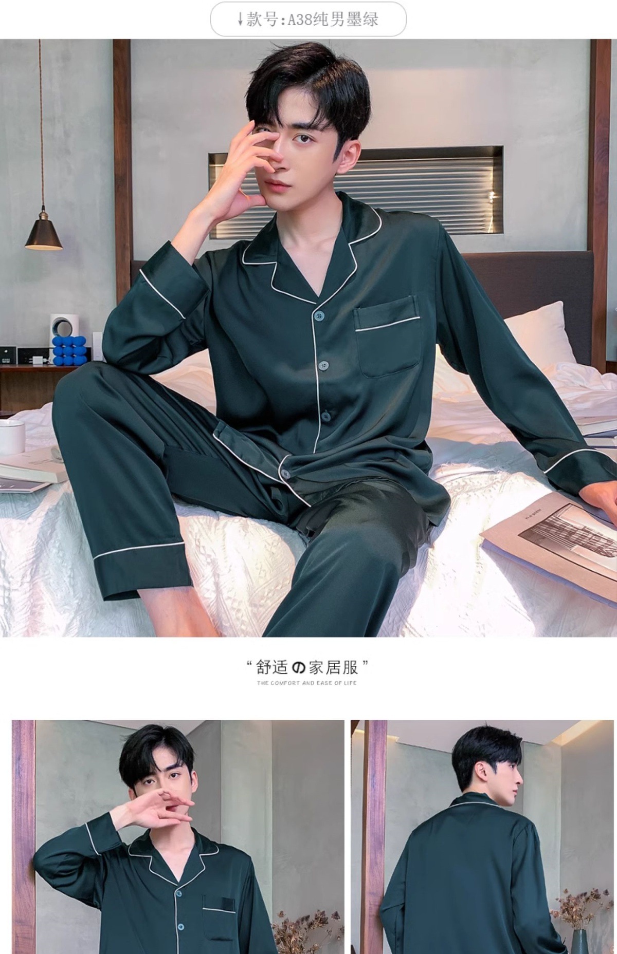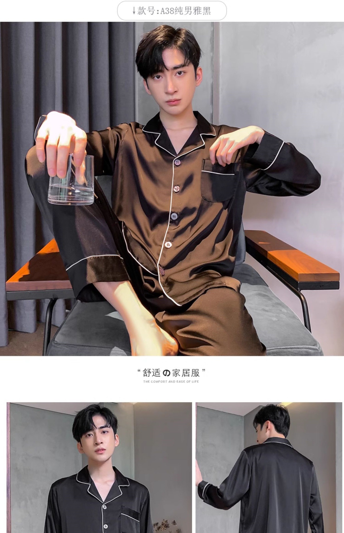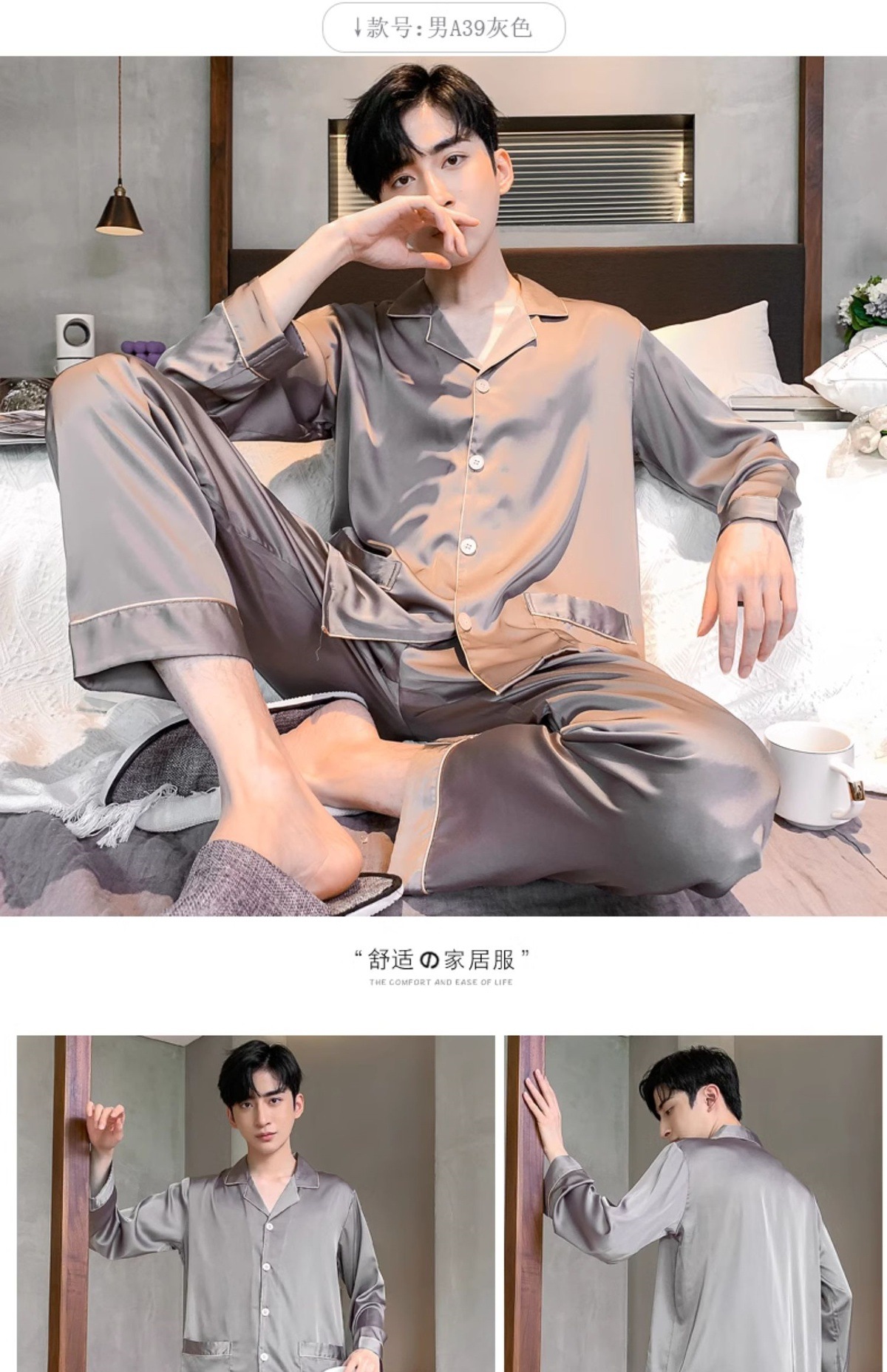 남성용 잠옷 봄 여름 긴팔 실크 아이스 실크 홈웨어 봄 가을 얇은 모조 실크 새틴 슈트