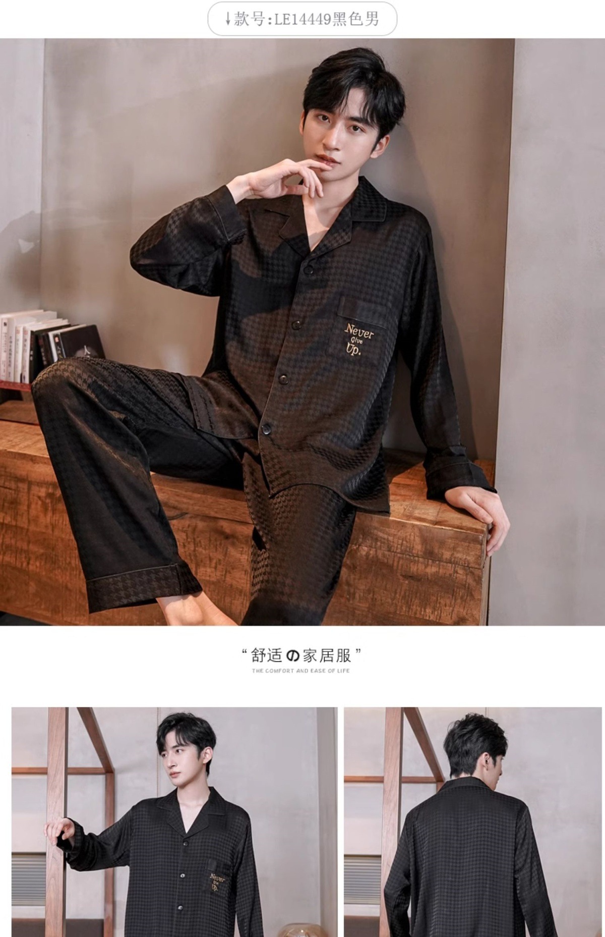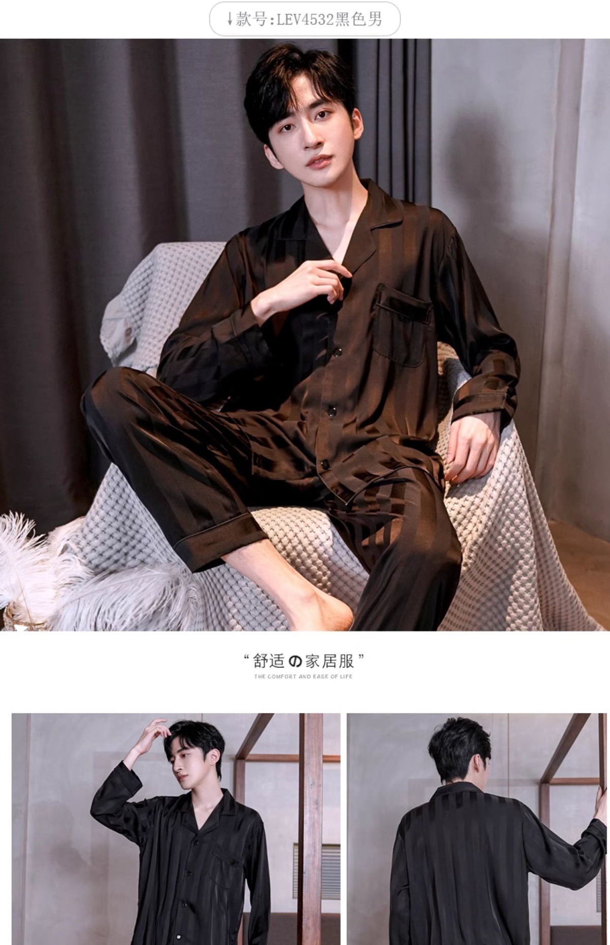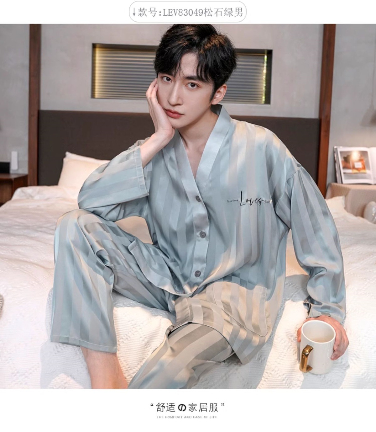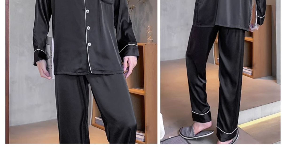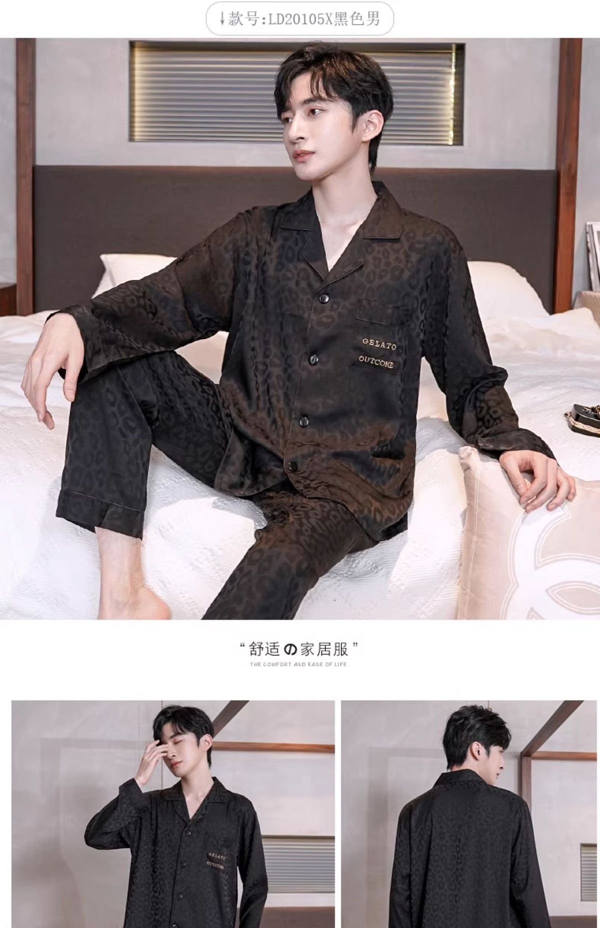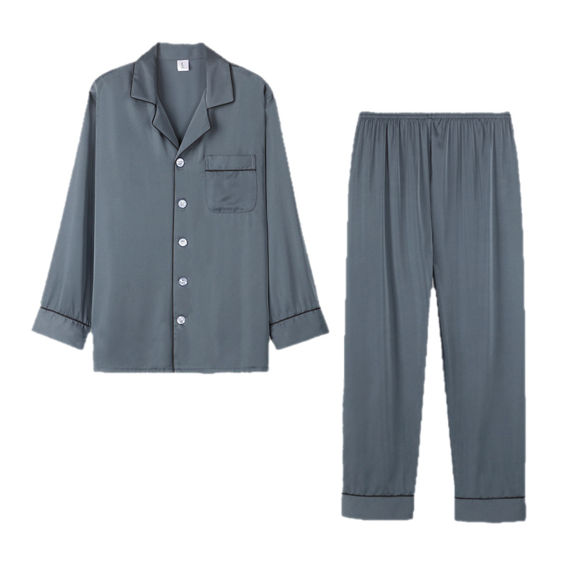 남성용 잠옷 봄 여름 긴팔 실크 아이스 실크 홈웨어 봄 가을 얇은 모조 실크 새틴 슈트